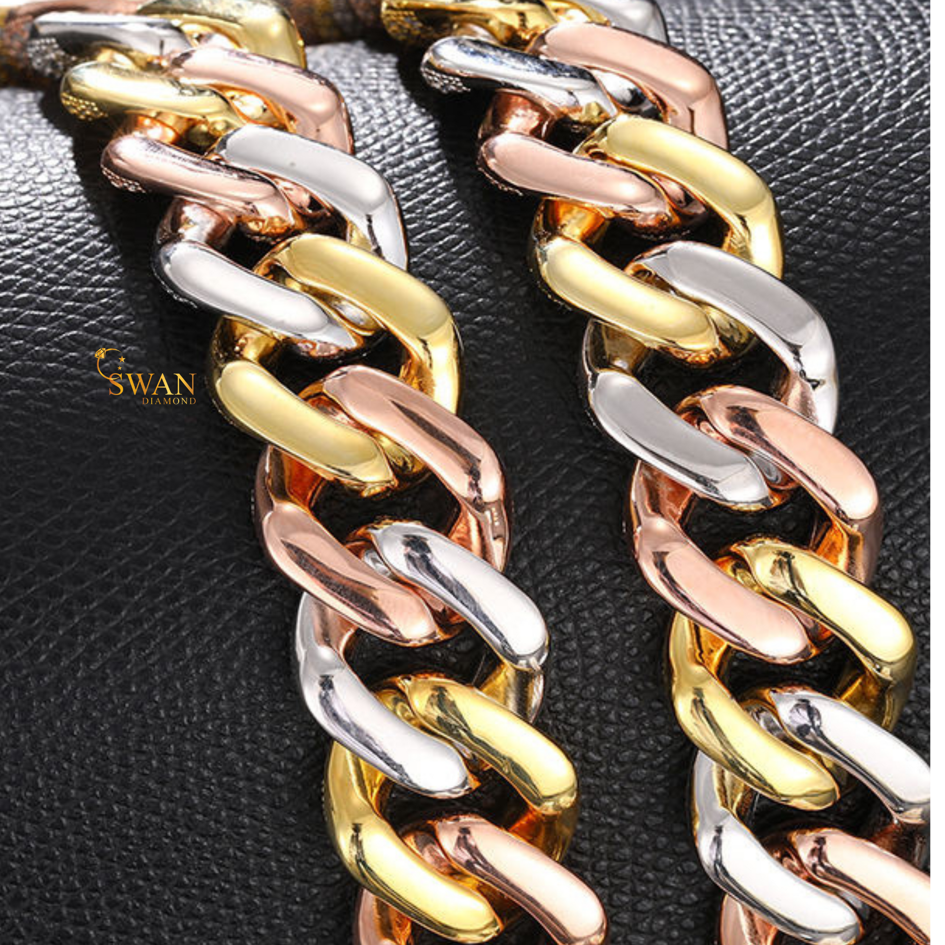 Cuban Link Bracelet in Natural White Gold Yellow Gold and Rose Gold | Tricolor Iced Out Luxury Statement Jewelry swandiamond