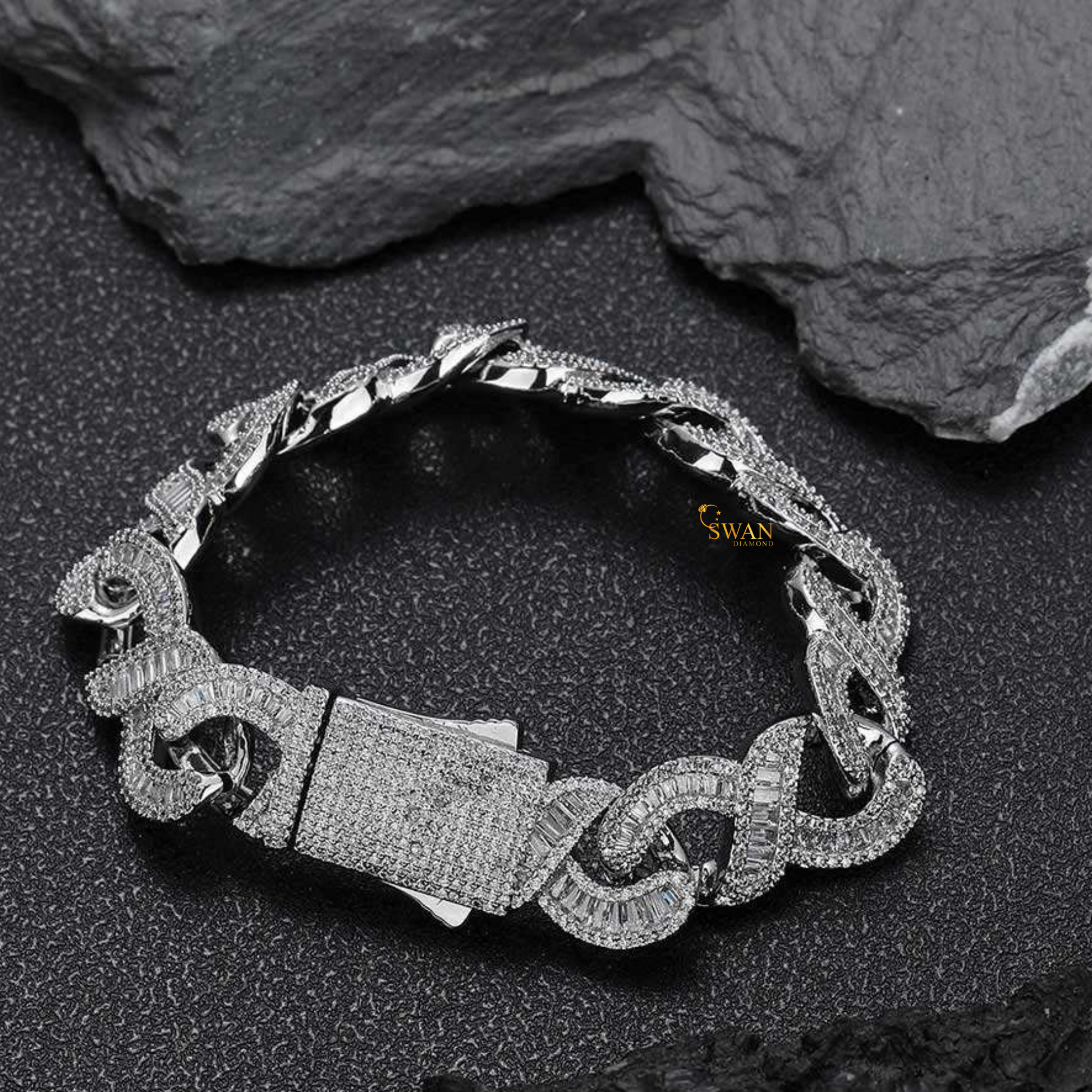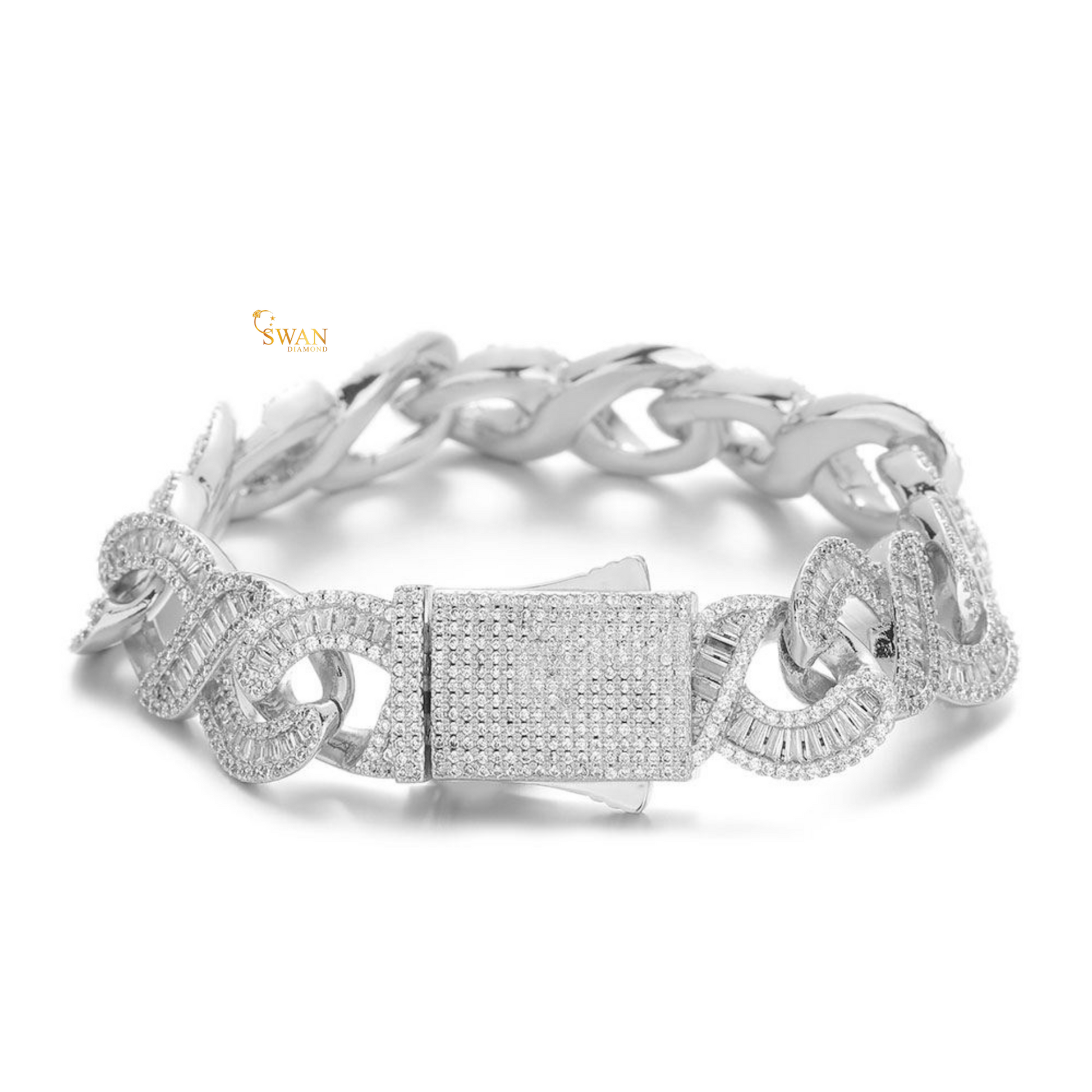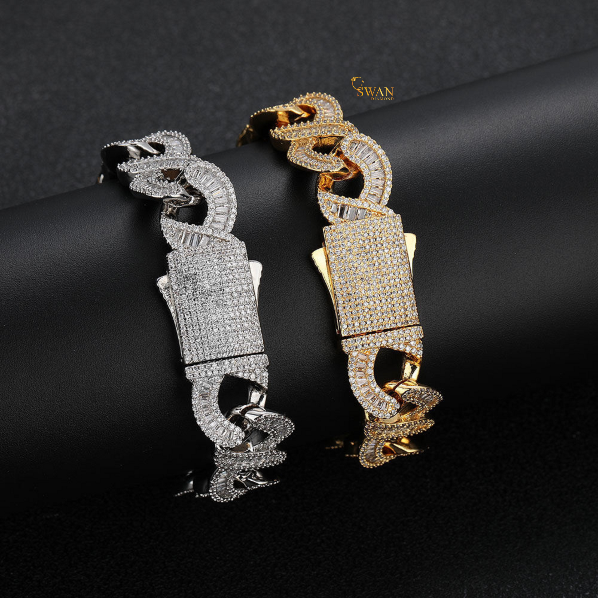 Cuban Link Diamond Bracelet Gold Plated with High Shine Baguette and Round Stones Fully Pave Set Luxury Statement Jewelry