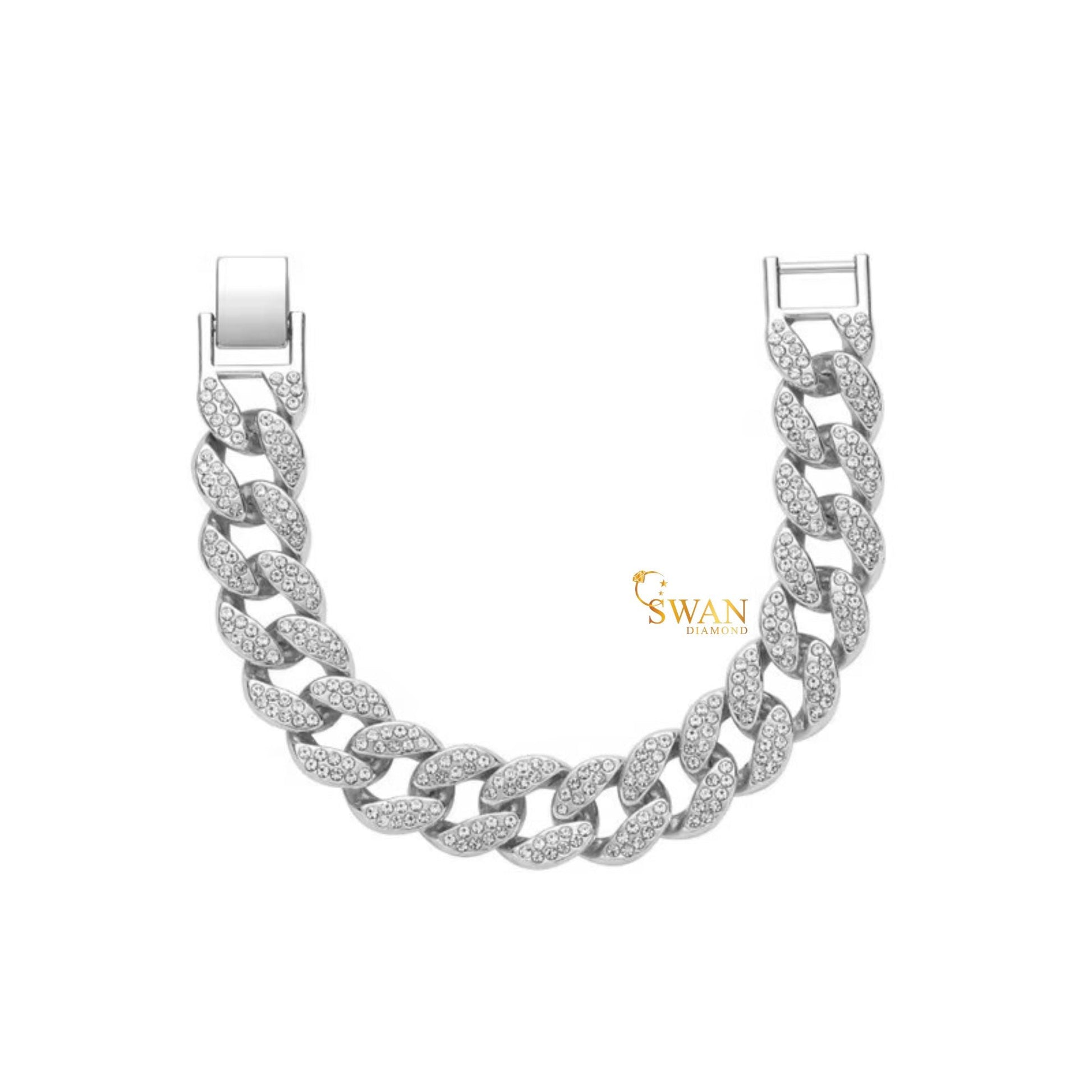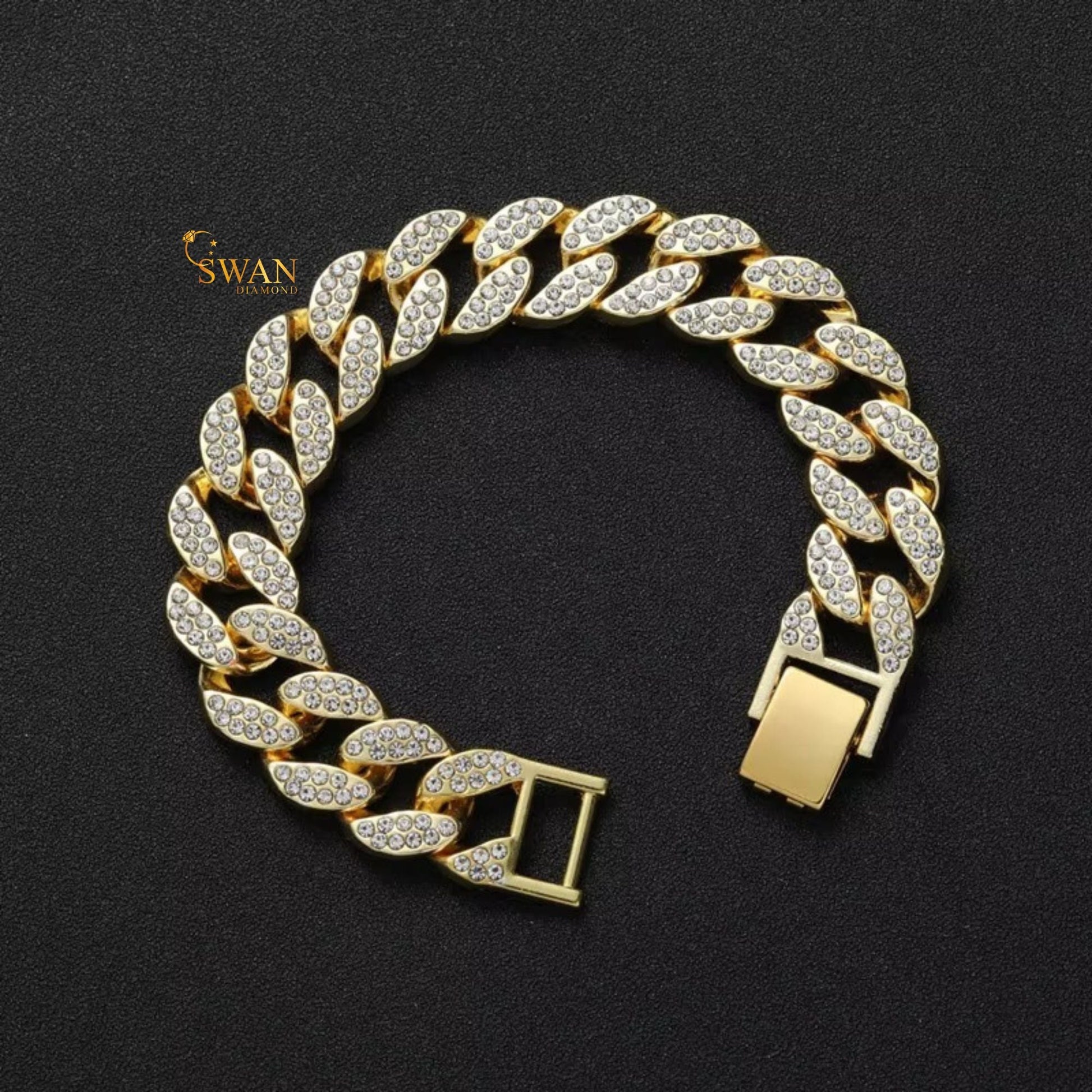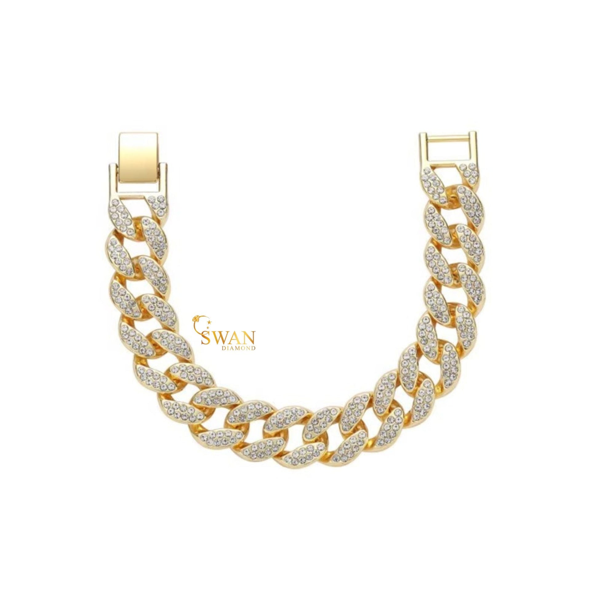 Gold Cuban Link Diamond Bracelet Full Iced Out Luxury Hip Hop Jewelry Sparkling Pave Statement Piece for Men and Women swandiamond