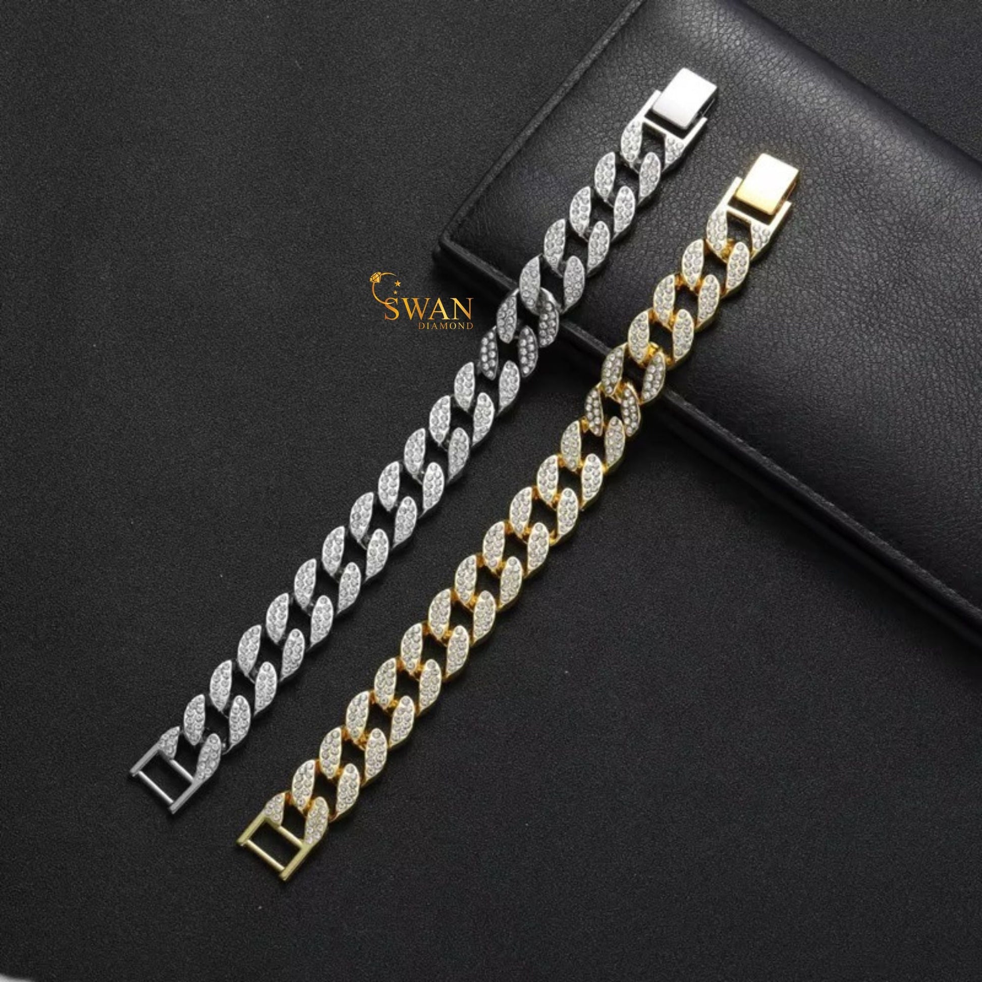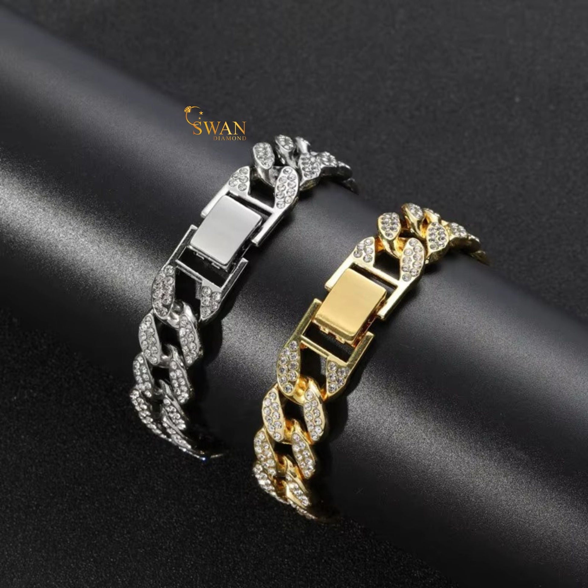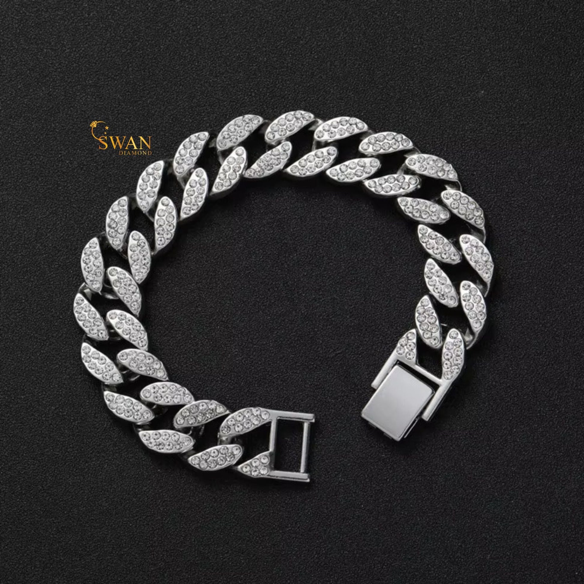 Gold Cuban Link Diamond Bracelet Full Iced Out Luxury Hip Hop Jewelry Sparkling Pave Statement Piece for Men and Women swandiamond
