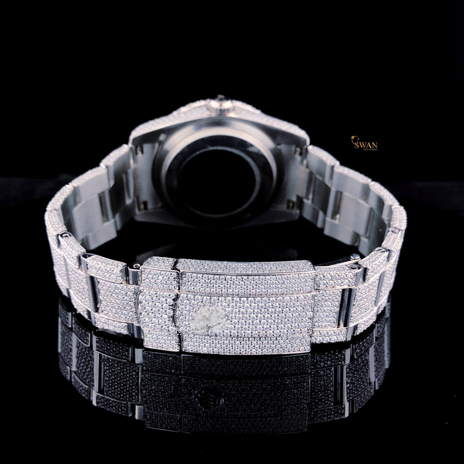 Luxury Diamond Rolex Sky Dweller Style Watch Fully Iced Out with Silver Dial and Pave Bracelet SwanDiamond Exclusive