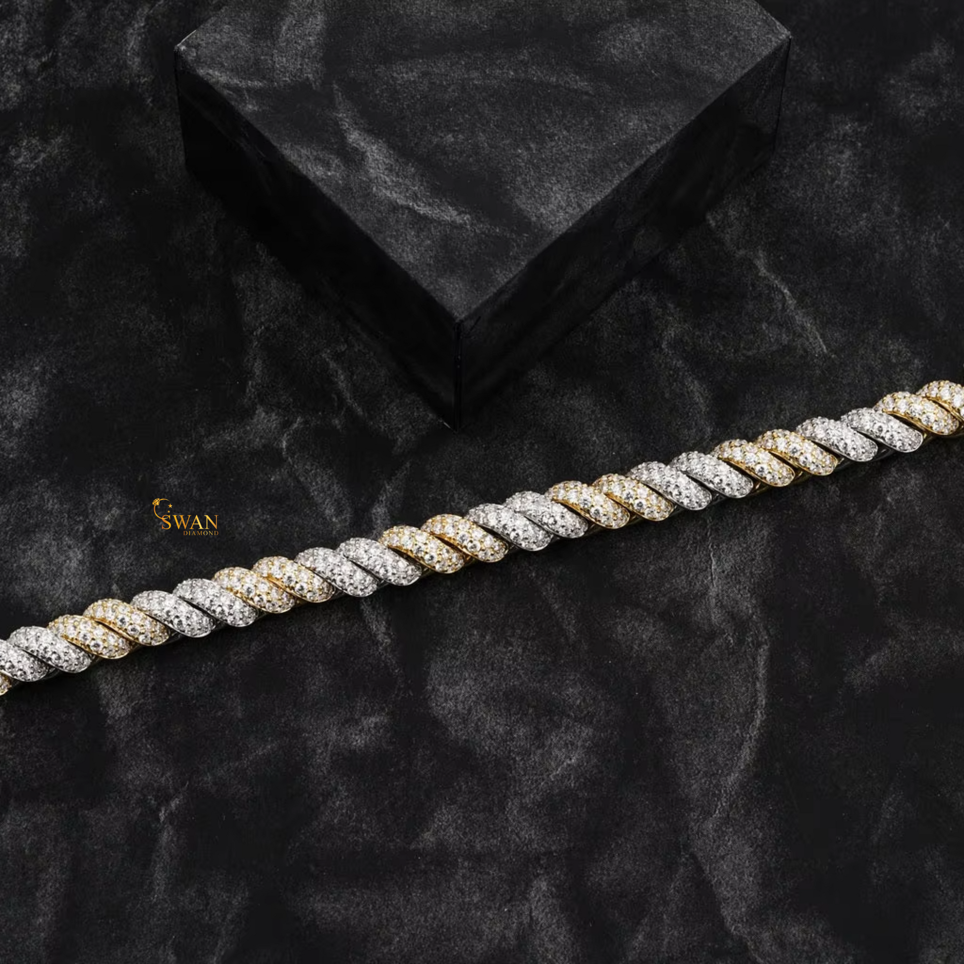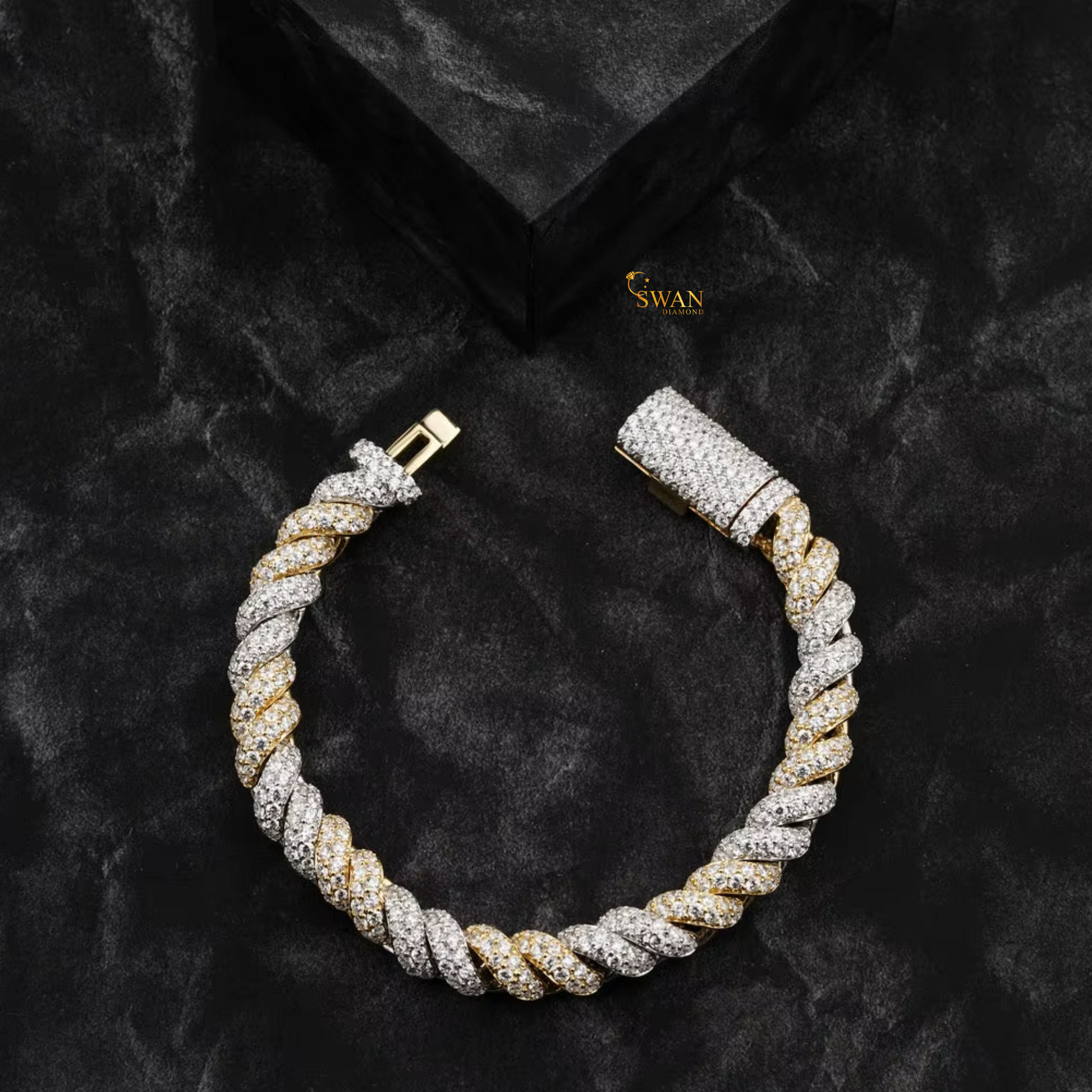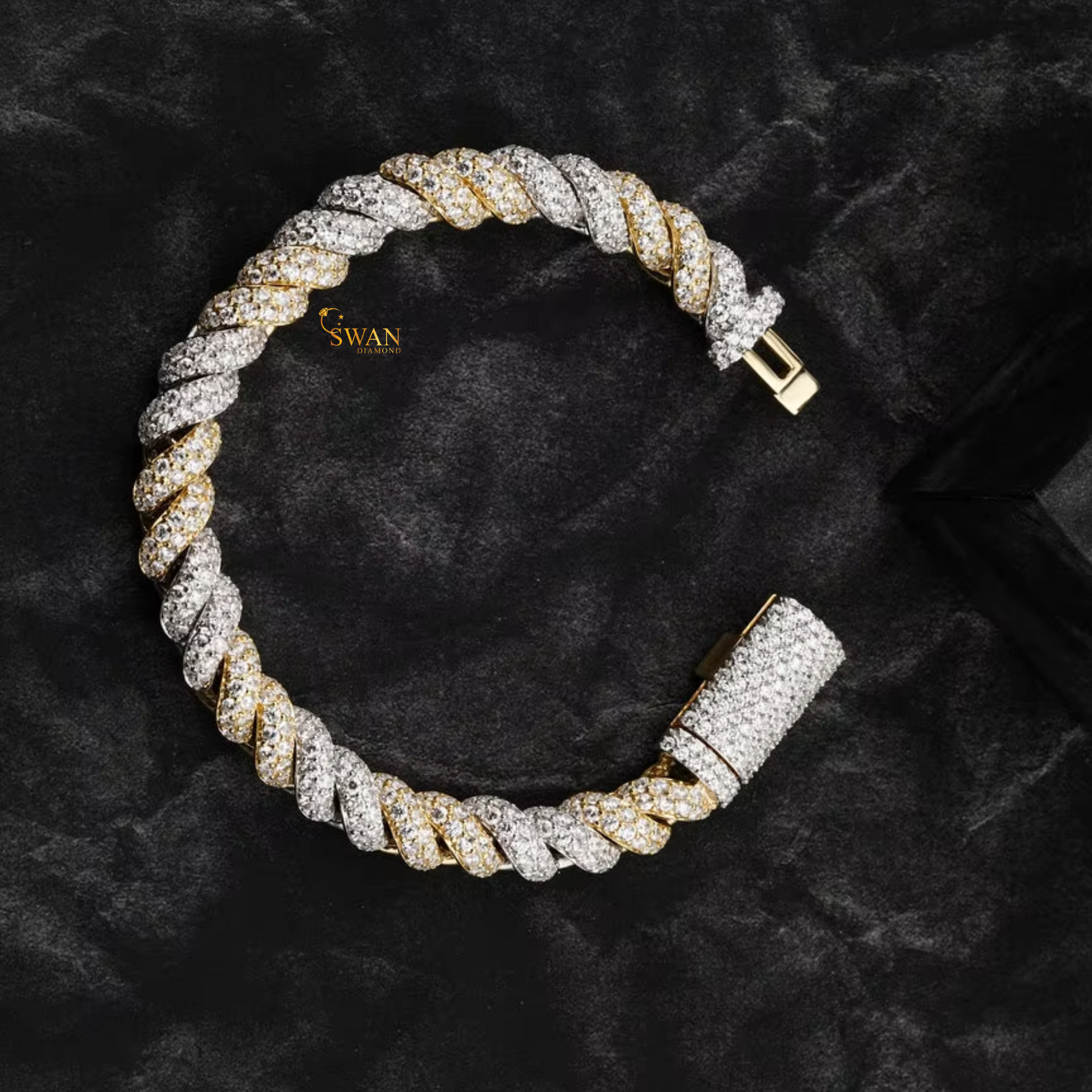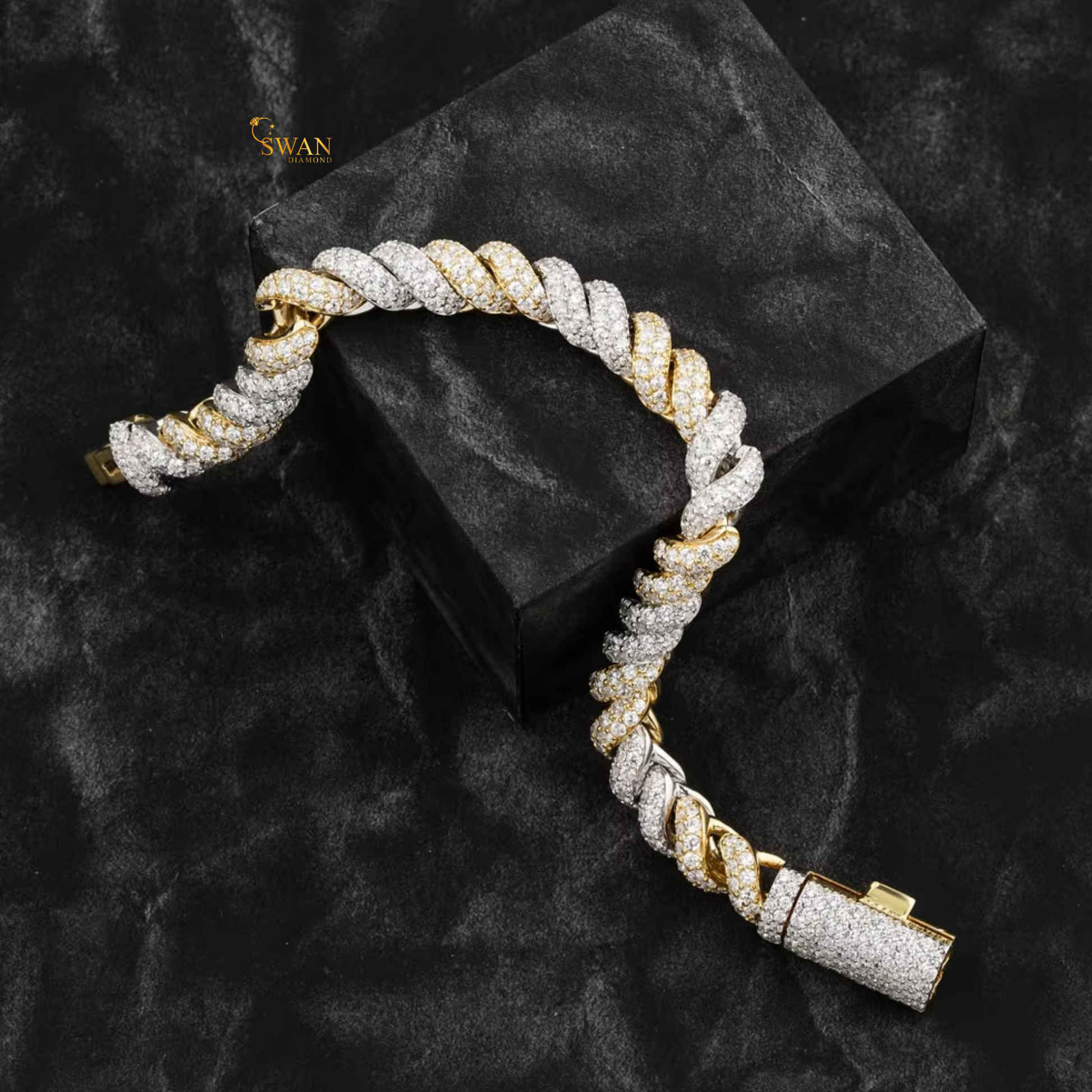 Luxury Diamond Rope Bracelet Two Tone Iced Out Link Jewelry Crafted with White and Yellow Gold Natural Diamonds for Men and Women swandiamond