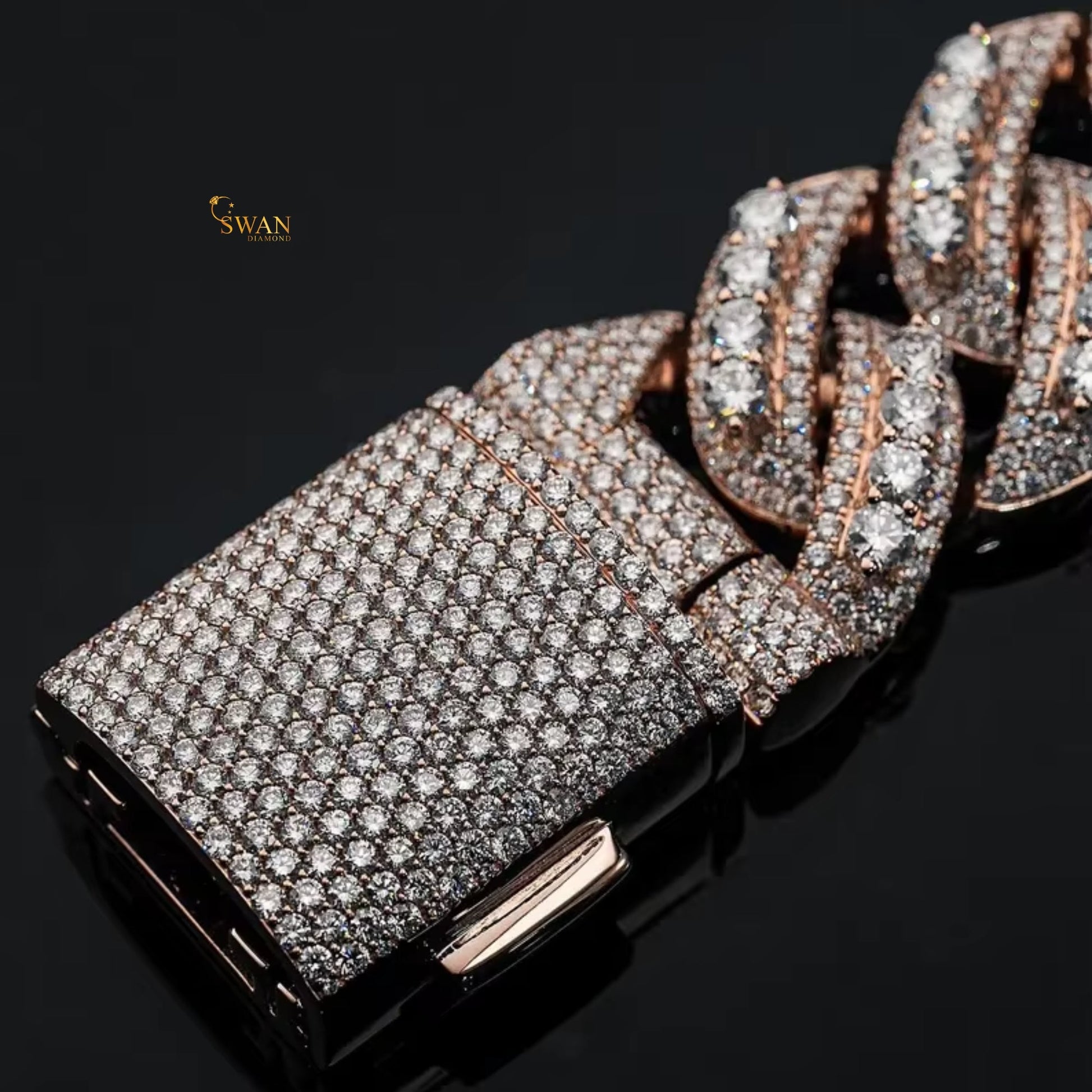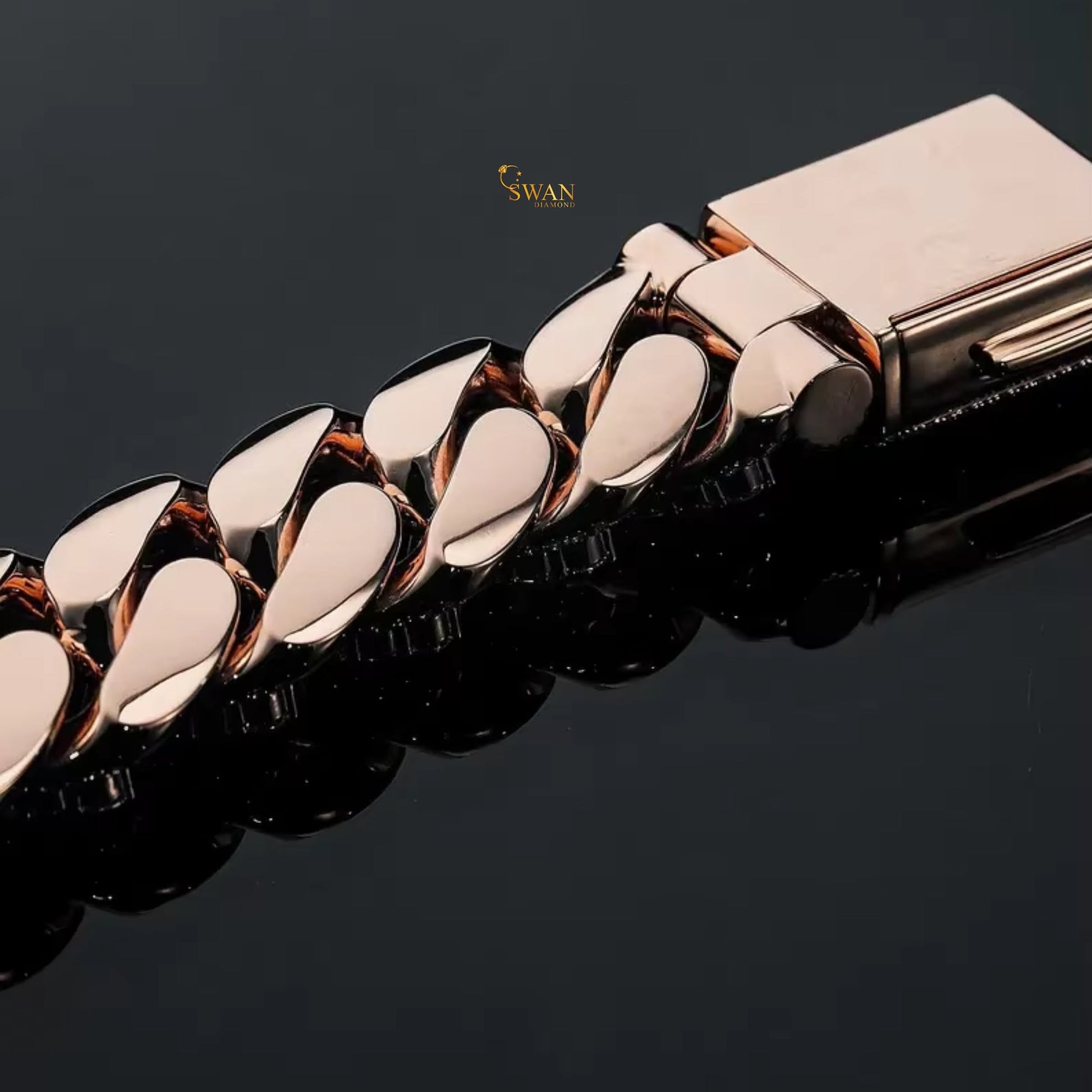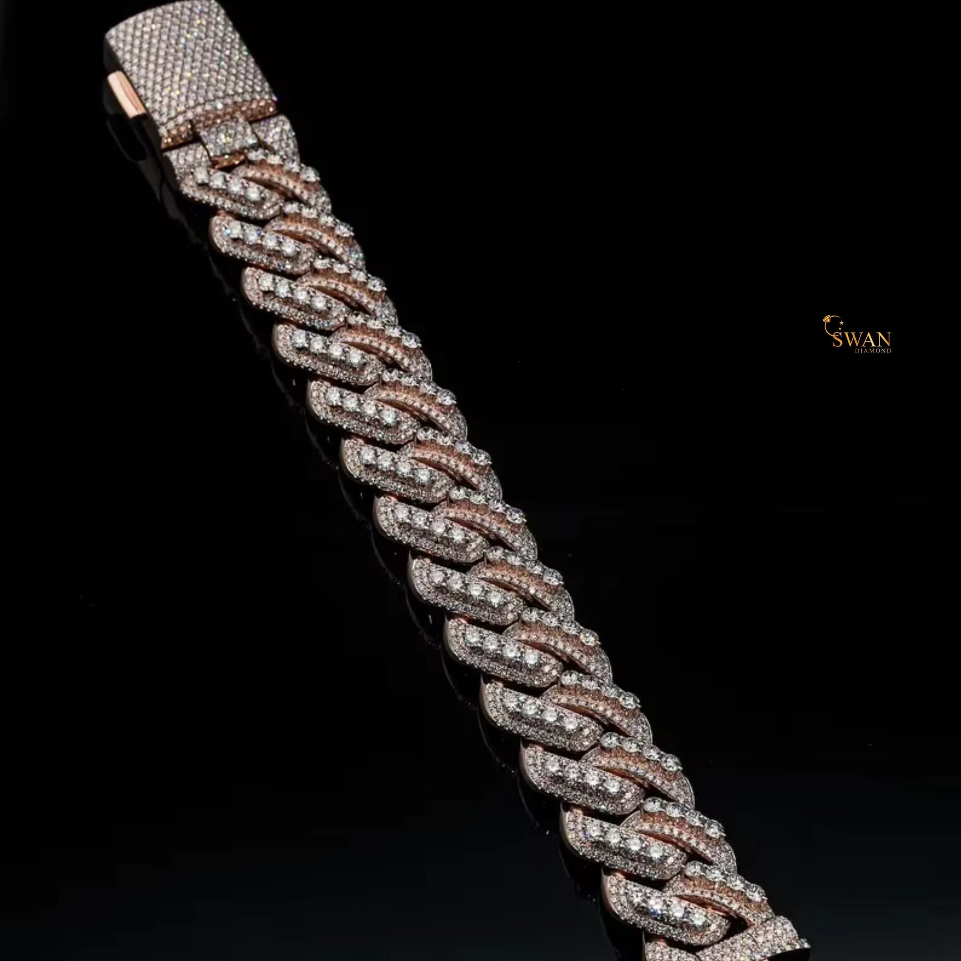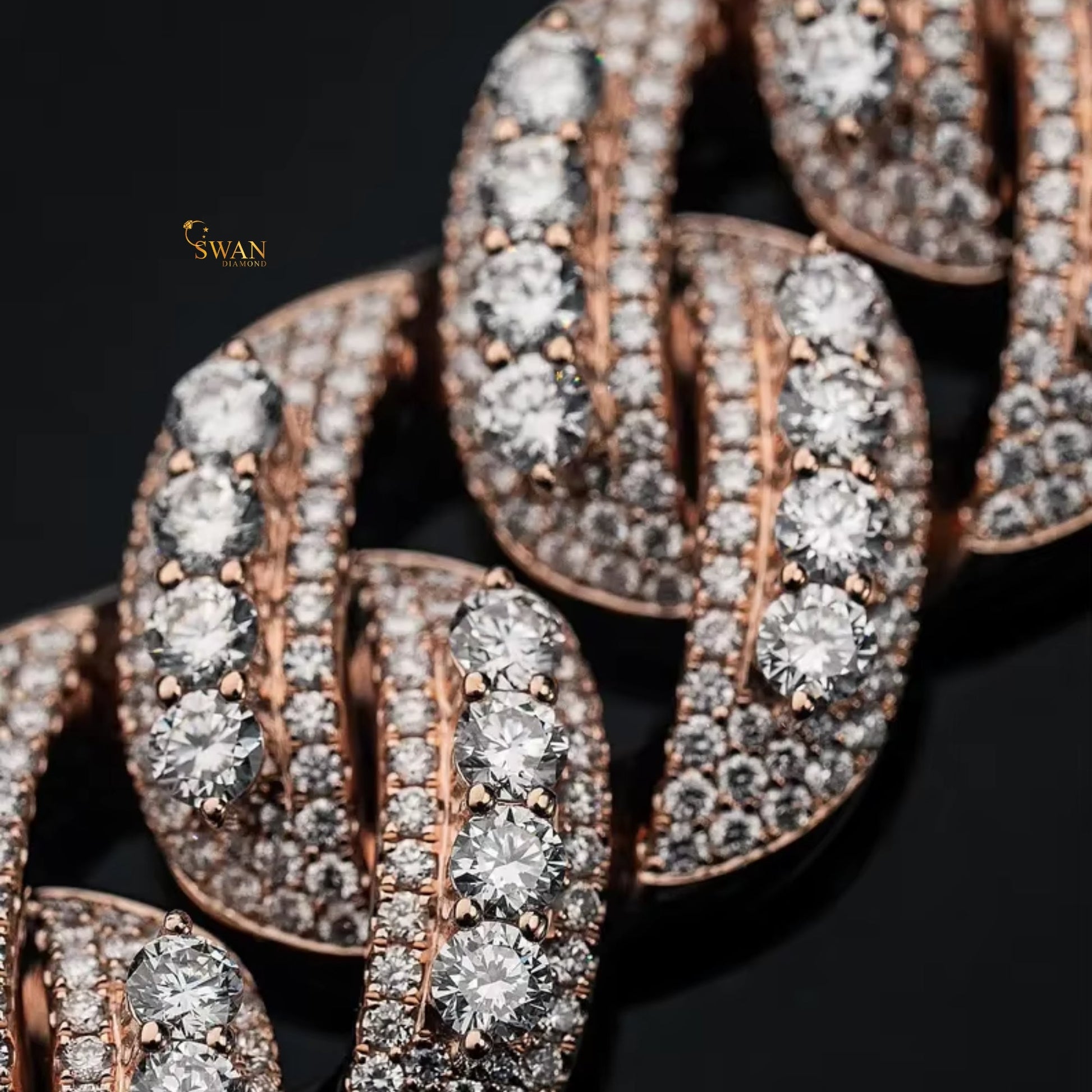 Luxury Rose Gold Cuban Link Bracelet Natural Diamonds Icy Pave Setting Hip Hop Statement Jewelry for Men and Women swandiamond