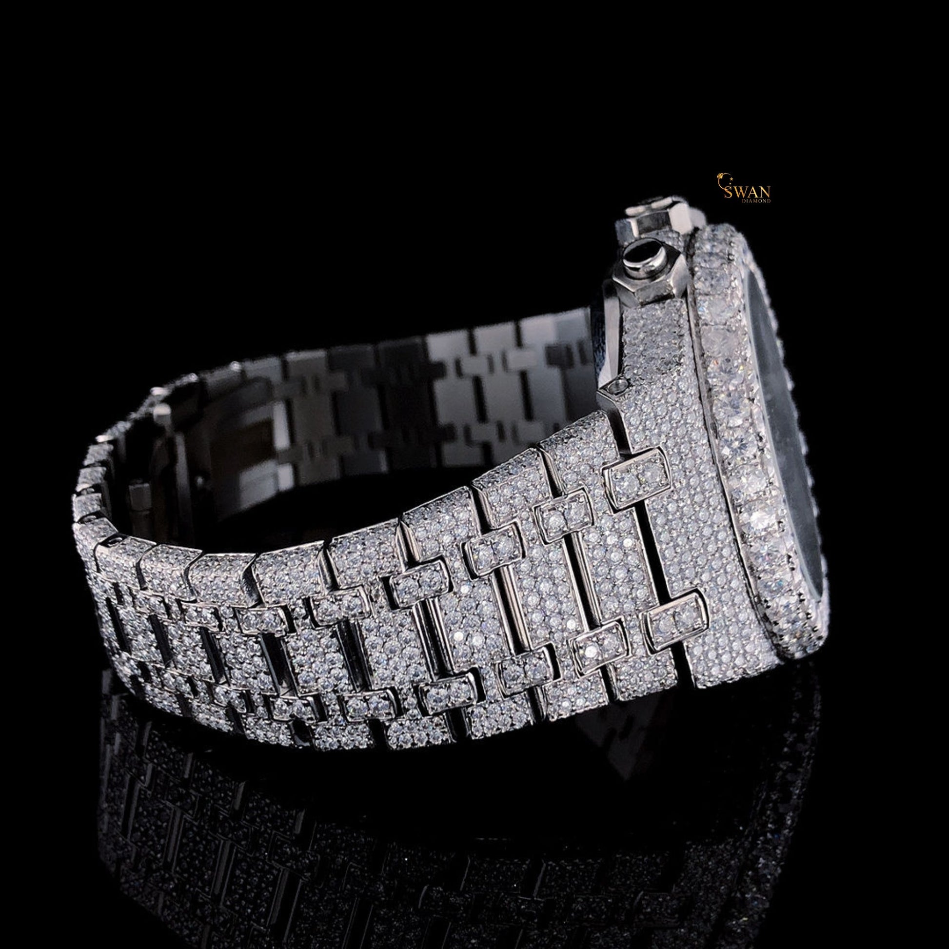 At SwanDiamond, we specialize in custom diamond studding to transform your watch into a luxury timepiece. Personalize your product with high-quality Moissanite diamonds for a bold and elegant look.