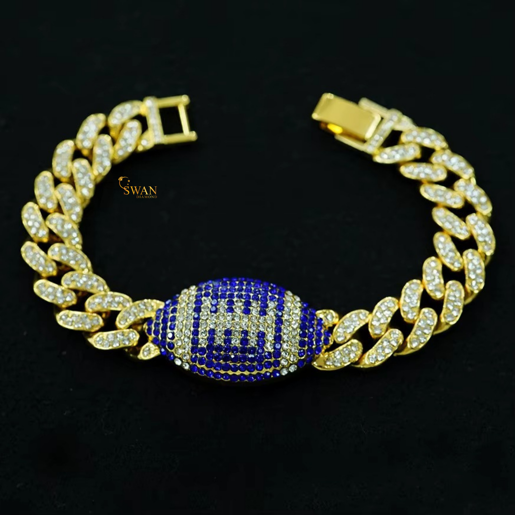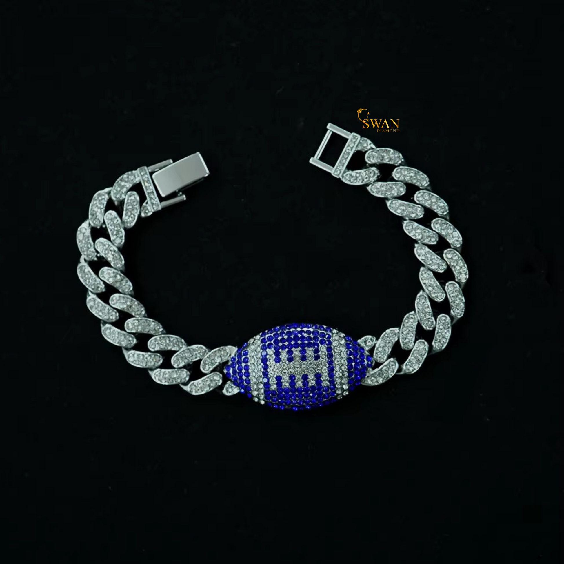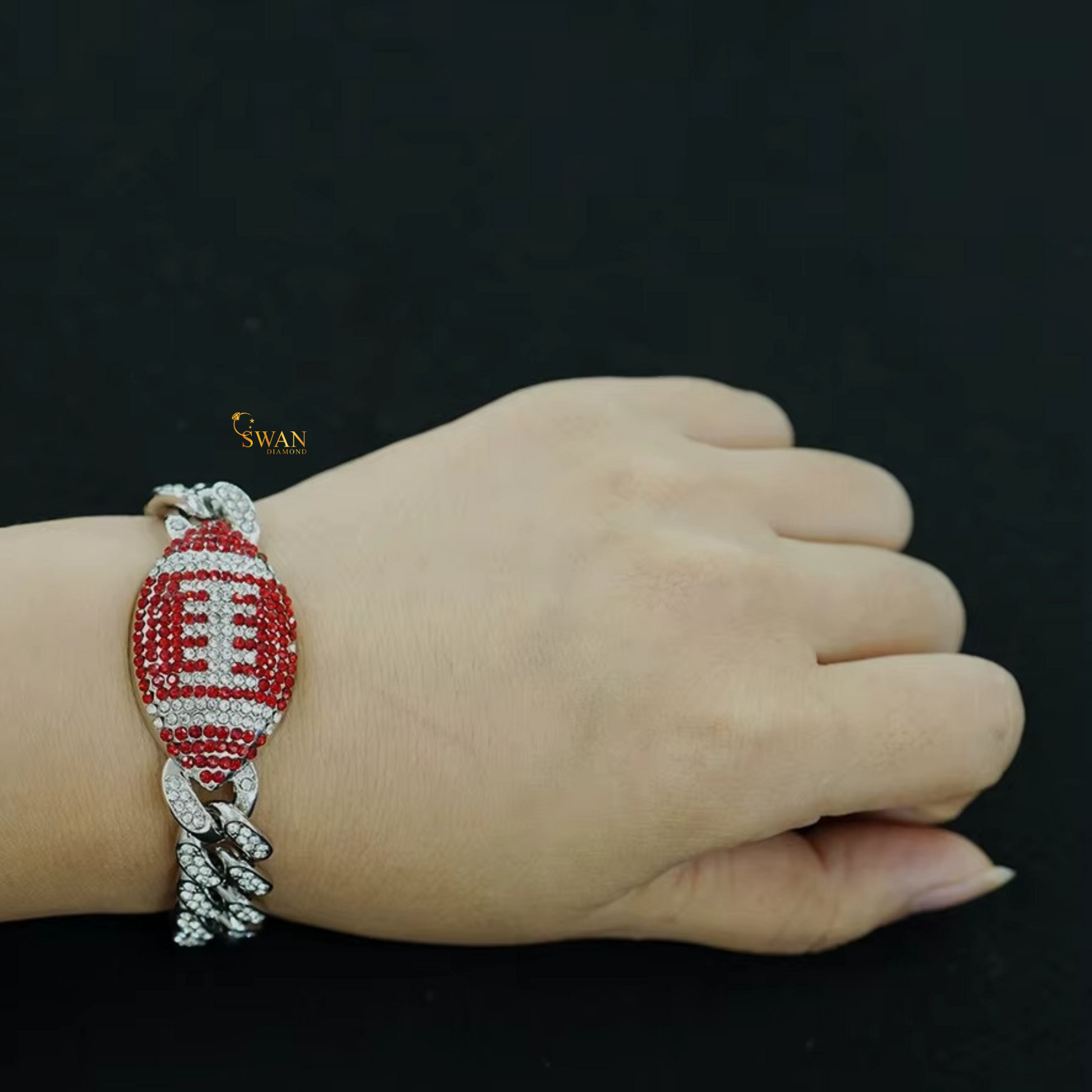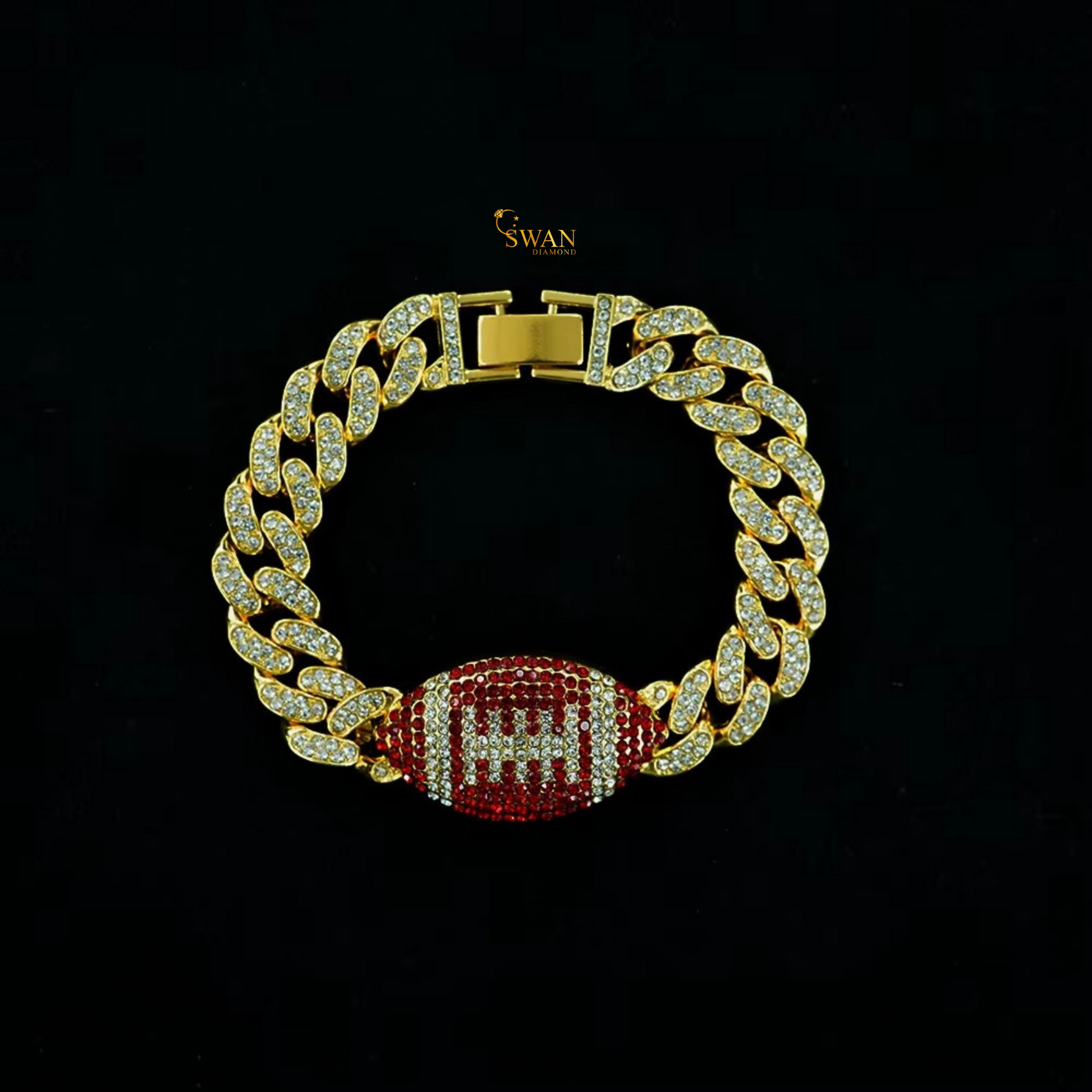 Stylish Diamond Football Bracelet Luxury Iced Out Jewelry with Red and White Pave Natural Diamonds for Men and Women swandiamond
