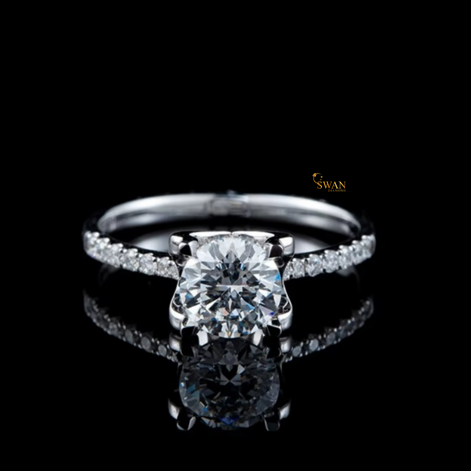 925 Silver Cushion Cut Diamond Engagement Ring with Pavé Band Elegant Classic Solitaire Bridal Jewelry Gift for Her swandiamond