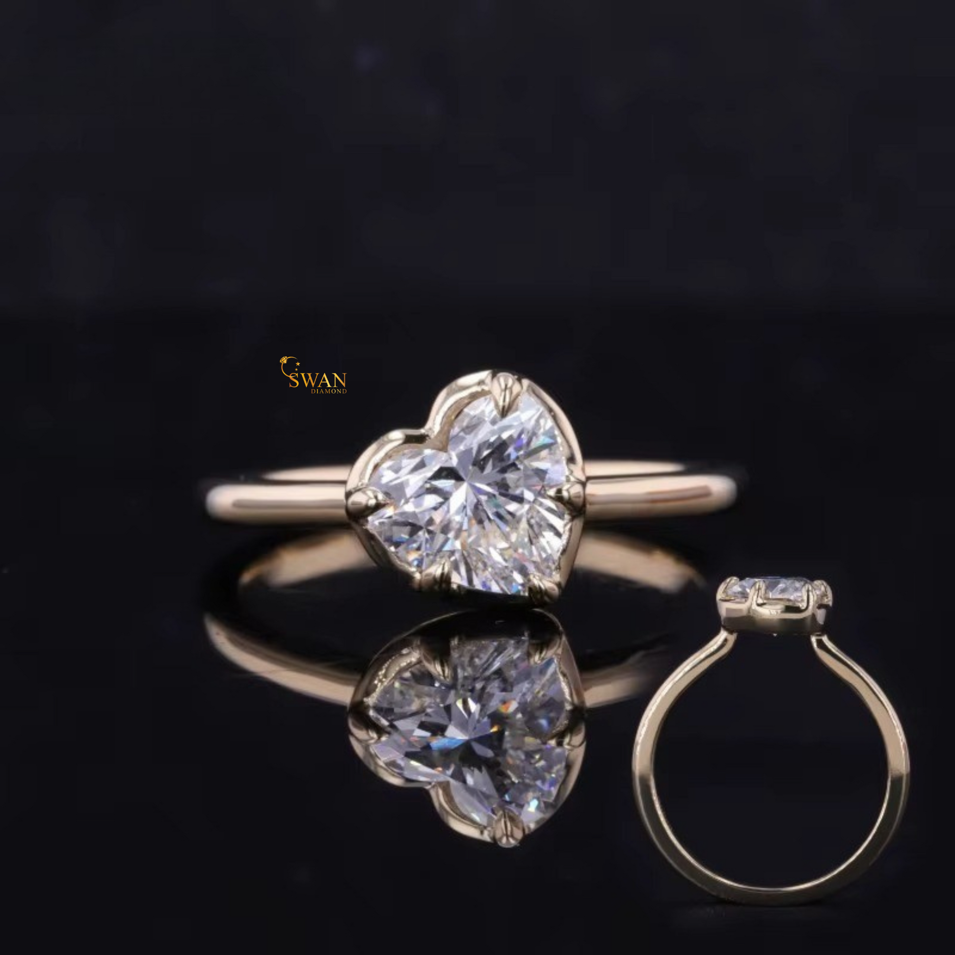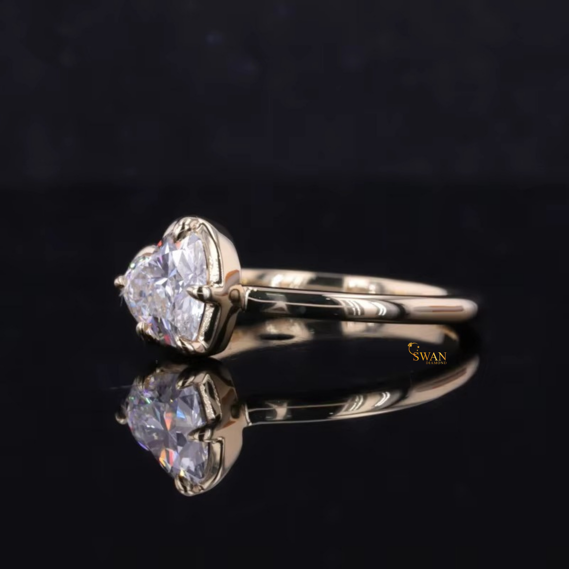 925 Silver Handcrafted Heart Cut Diamond Ring in Gold Plated Classic Solitaire Romantic Engagement Bridal Jewelry Gift swandiamond
