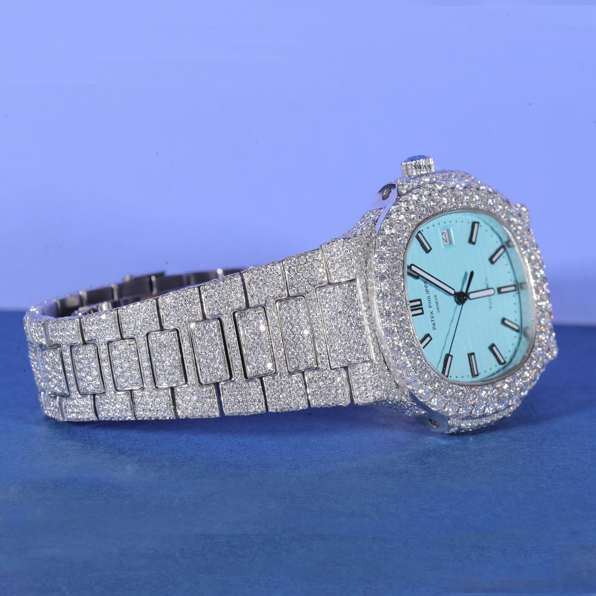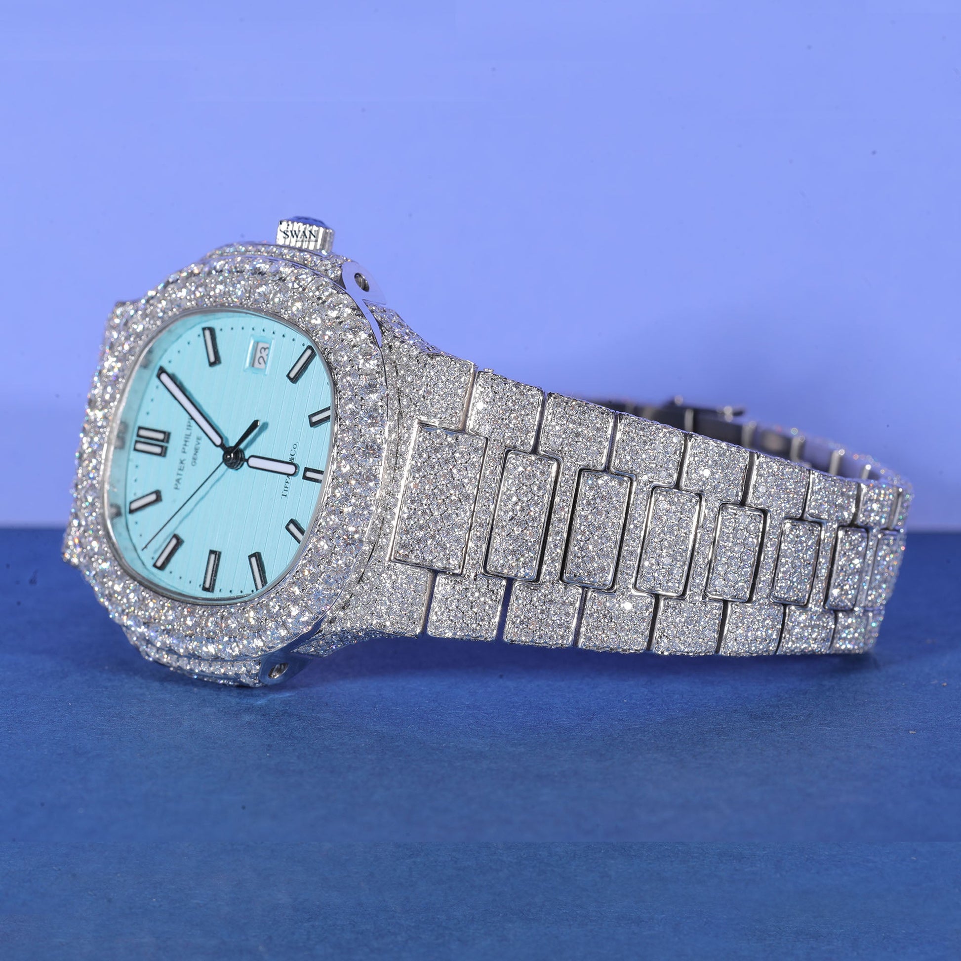 Custom Style Iced Out Watch with Tiffany Blue Dial – Luxury Diamond Timepiece for Bold Style SwanDiamond