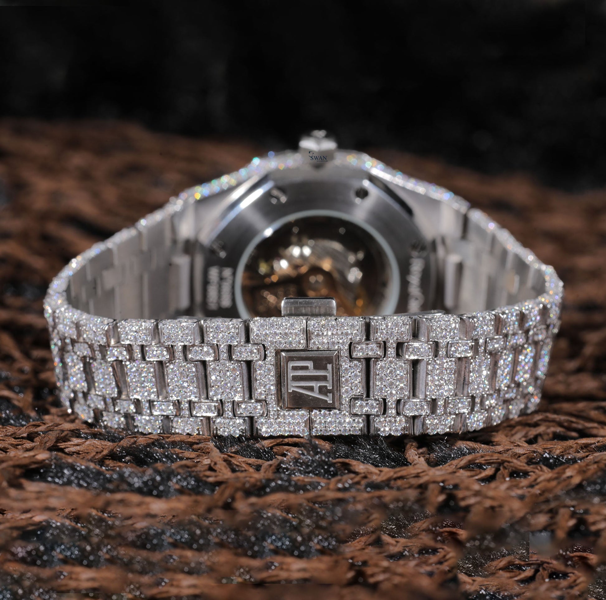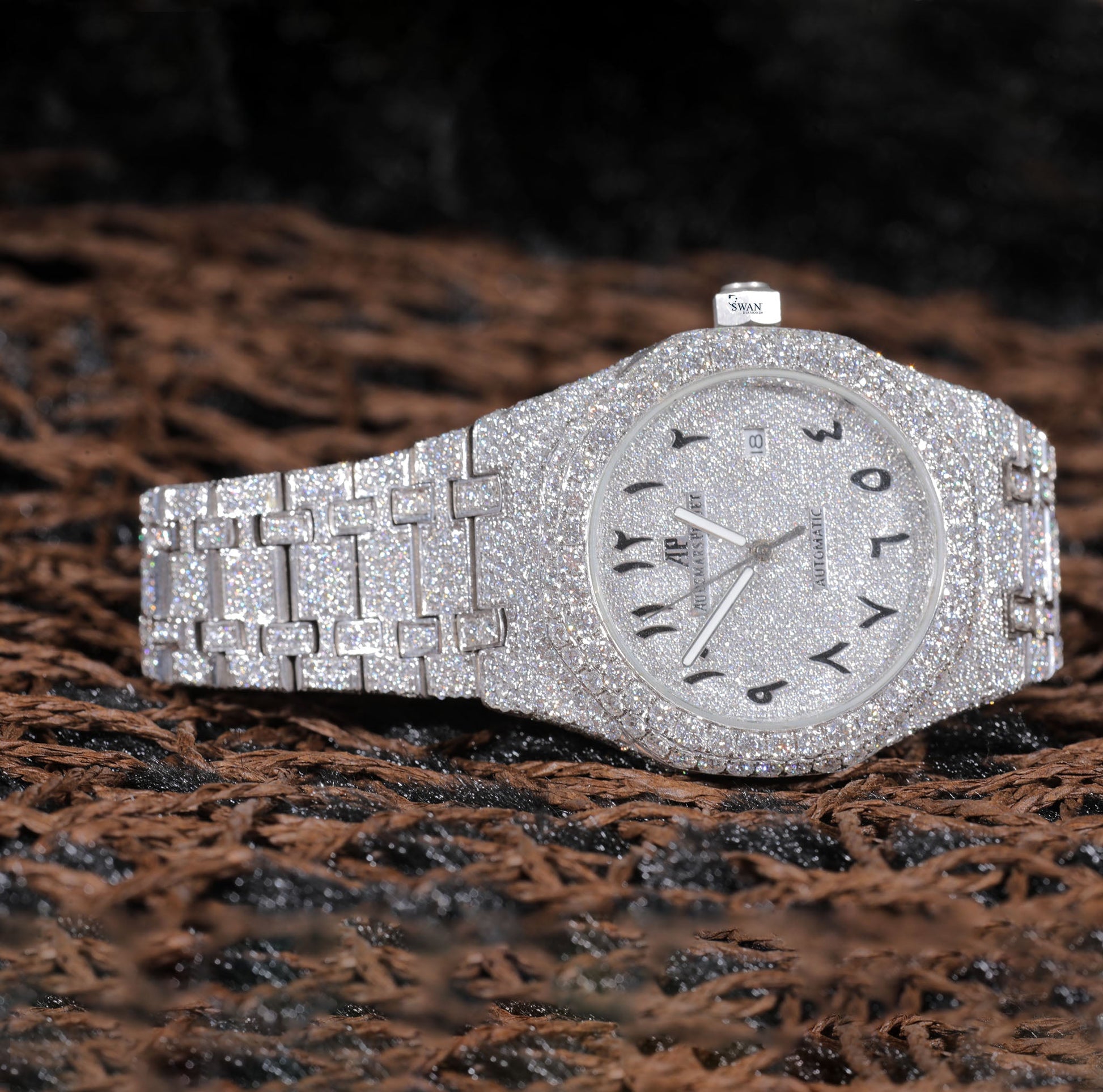 Fully Iced Out Arabic Dial Moissanite Watch in Silver Tone – Luxury Men's Custom TimepieceSwanDiamond
