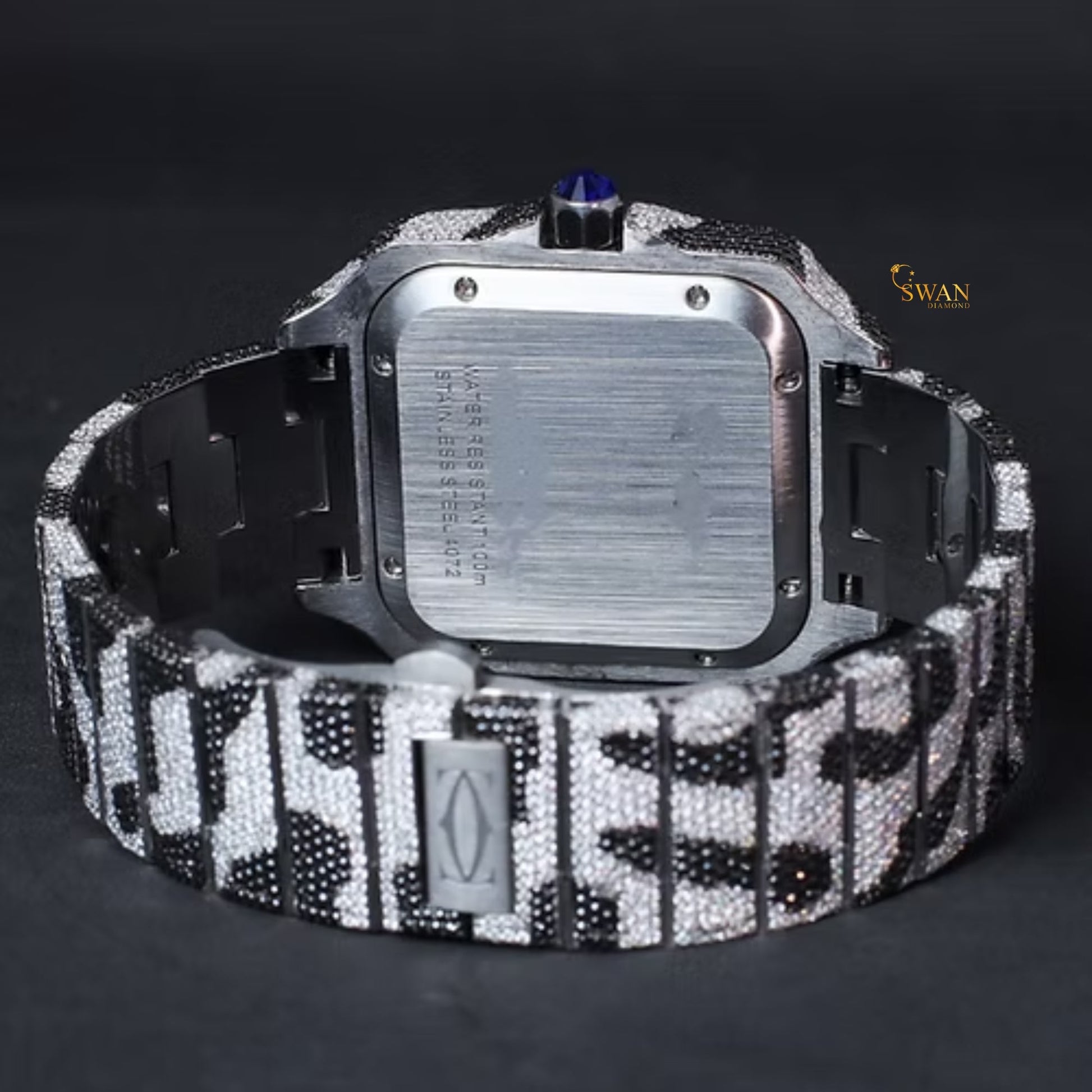 Luxury Iced Out Diamond Watch Black and White Camouflage Design Square Dial Automatic Custom Hip Hop Jewelry Statement Timepiece swan diamond