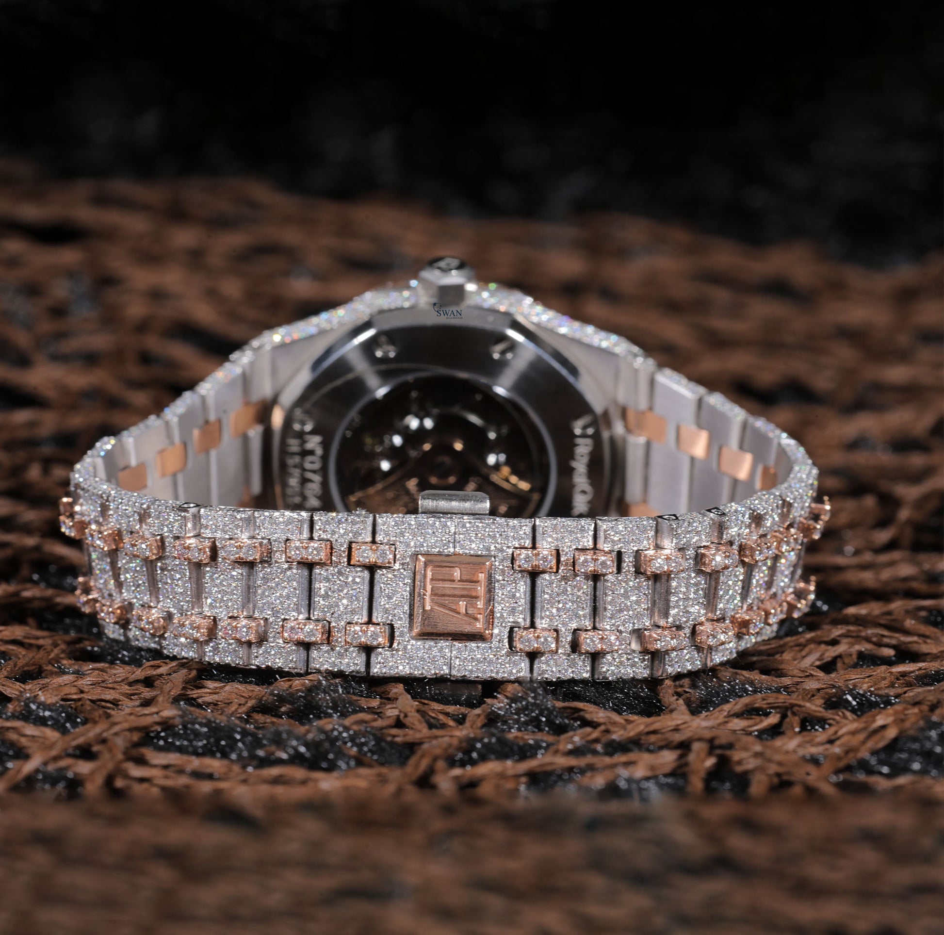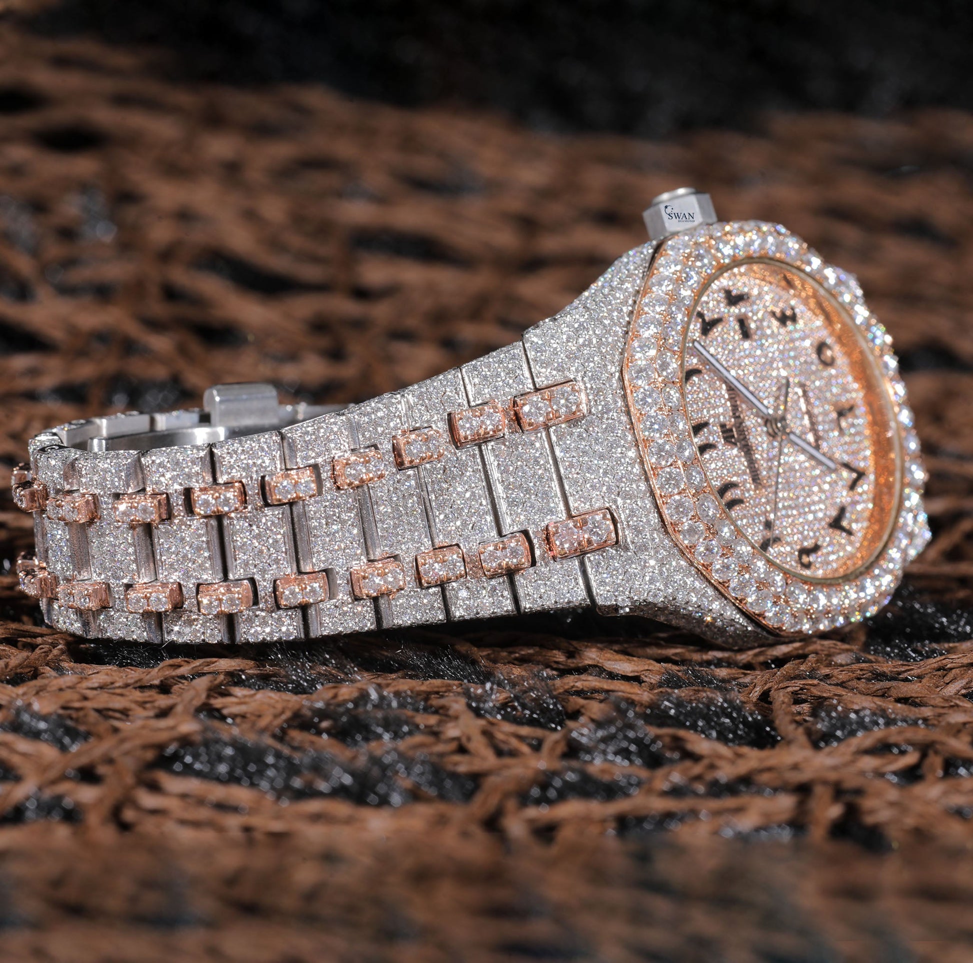 Luxury SwanDiamond Arabic Dial Iced Out Watch with Rose Gold Accents and Full Moissanite Pave Design for Men