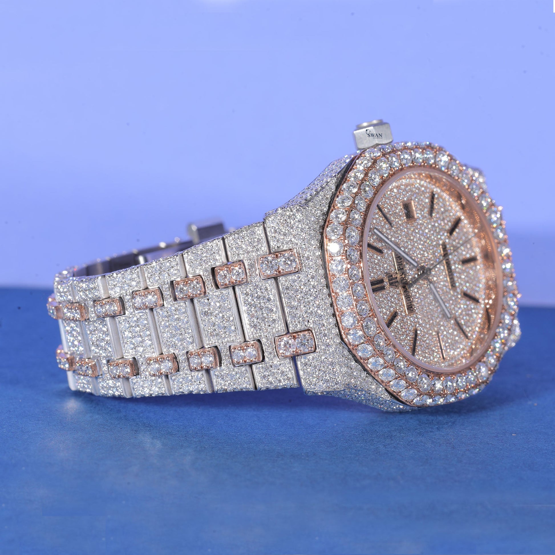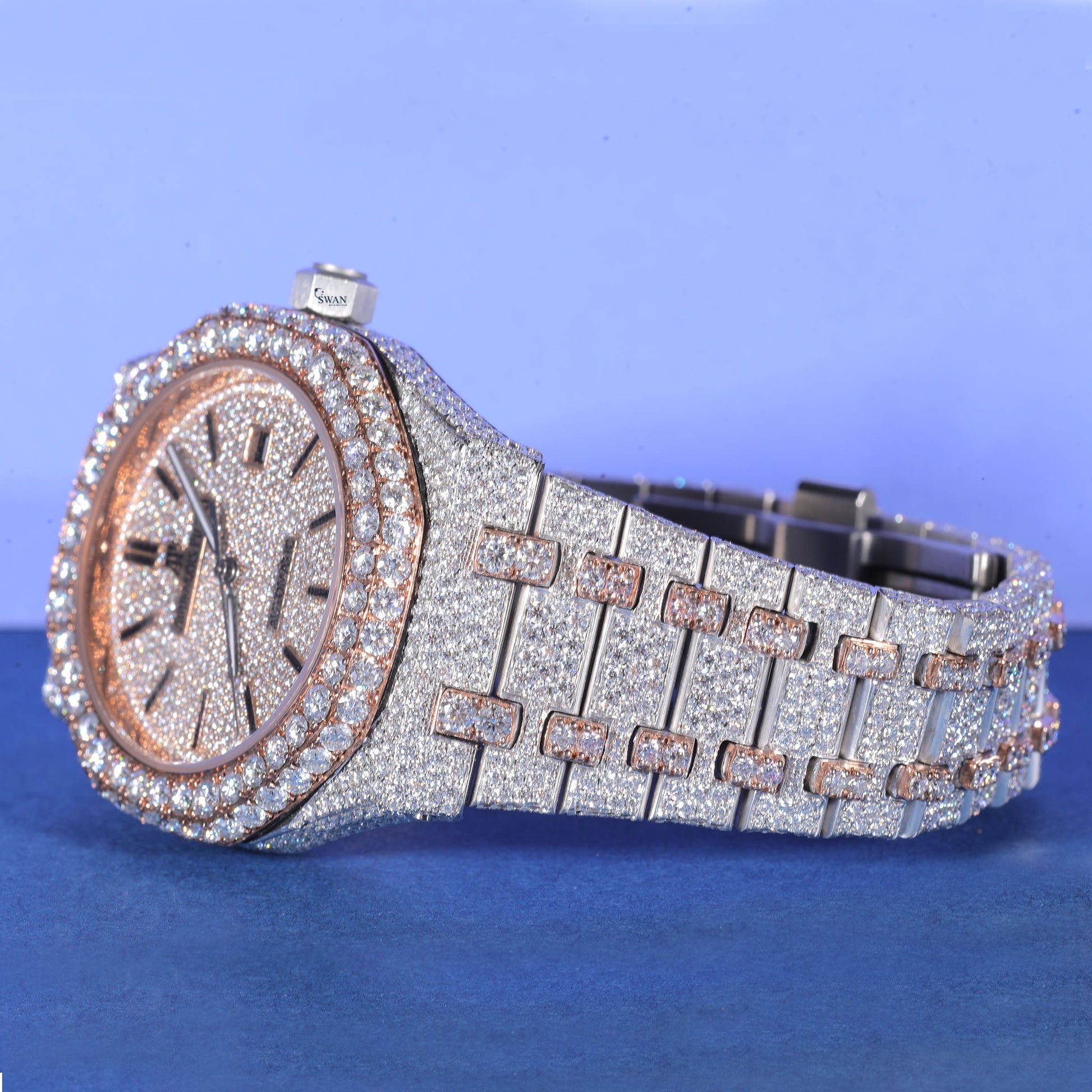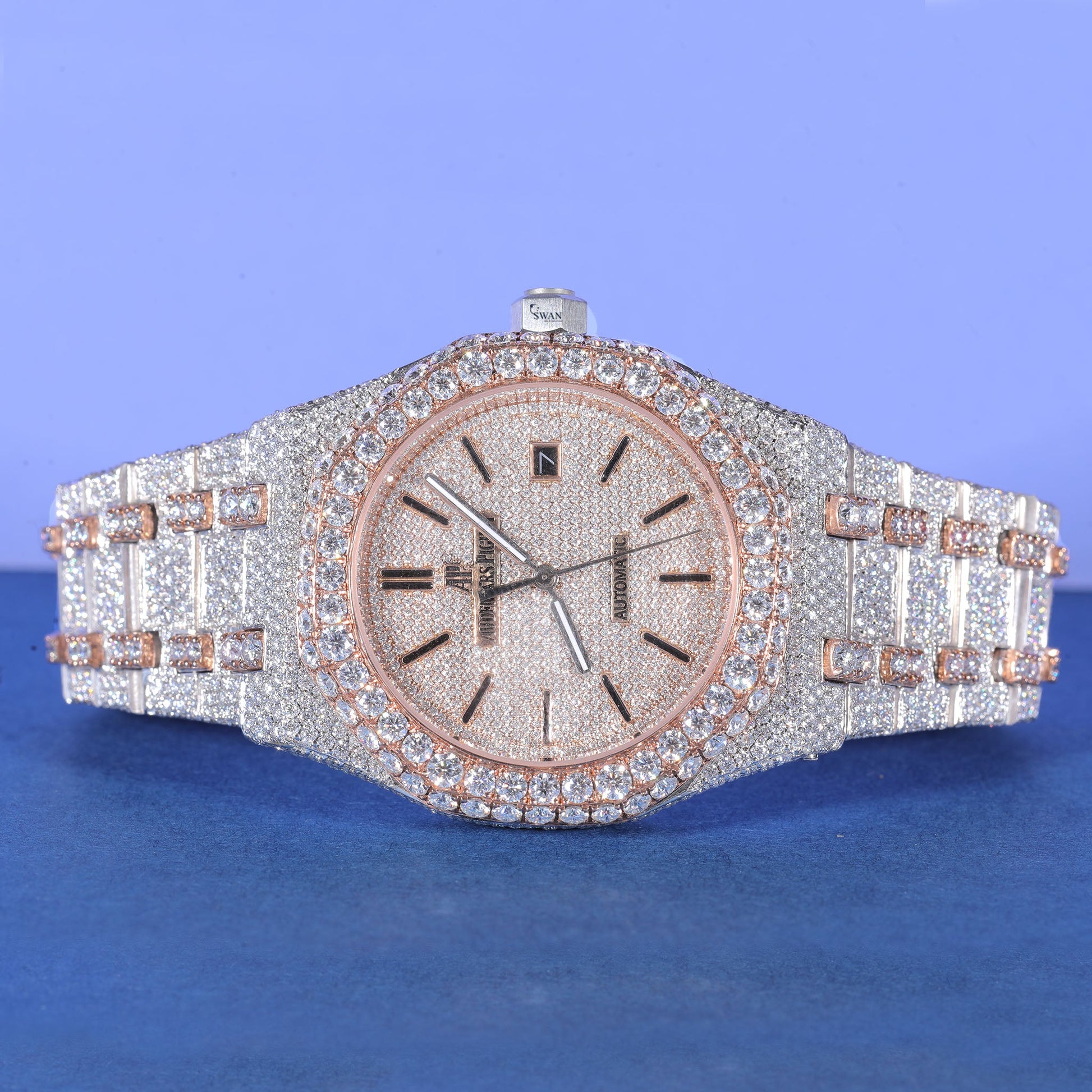 Two Tone Iced Out Watch VVS Moissanite Custom Rose Gold and Silver Men’s Luxury Timepiece Hip Hop Designer Style SwanDiamond