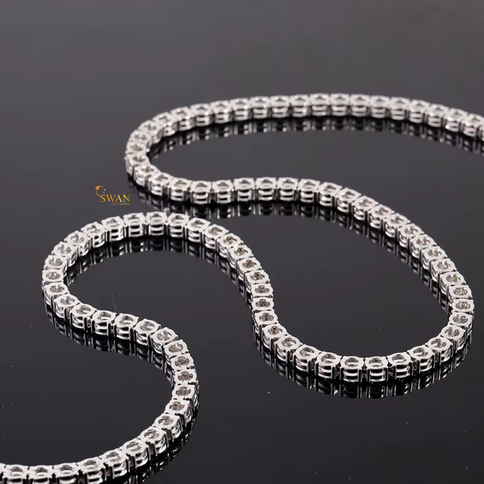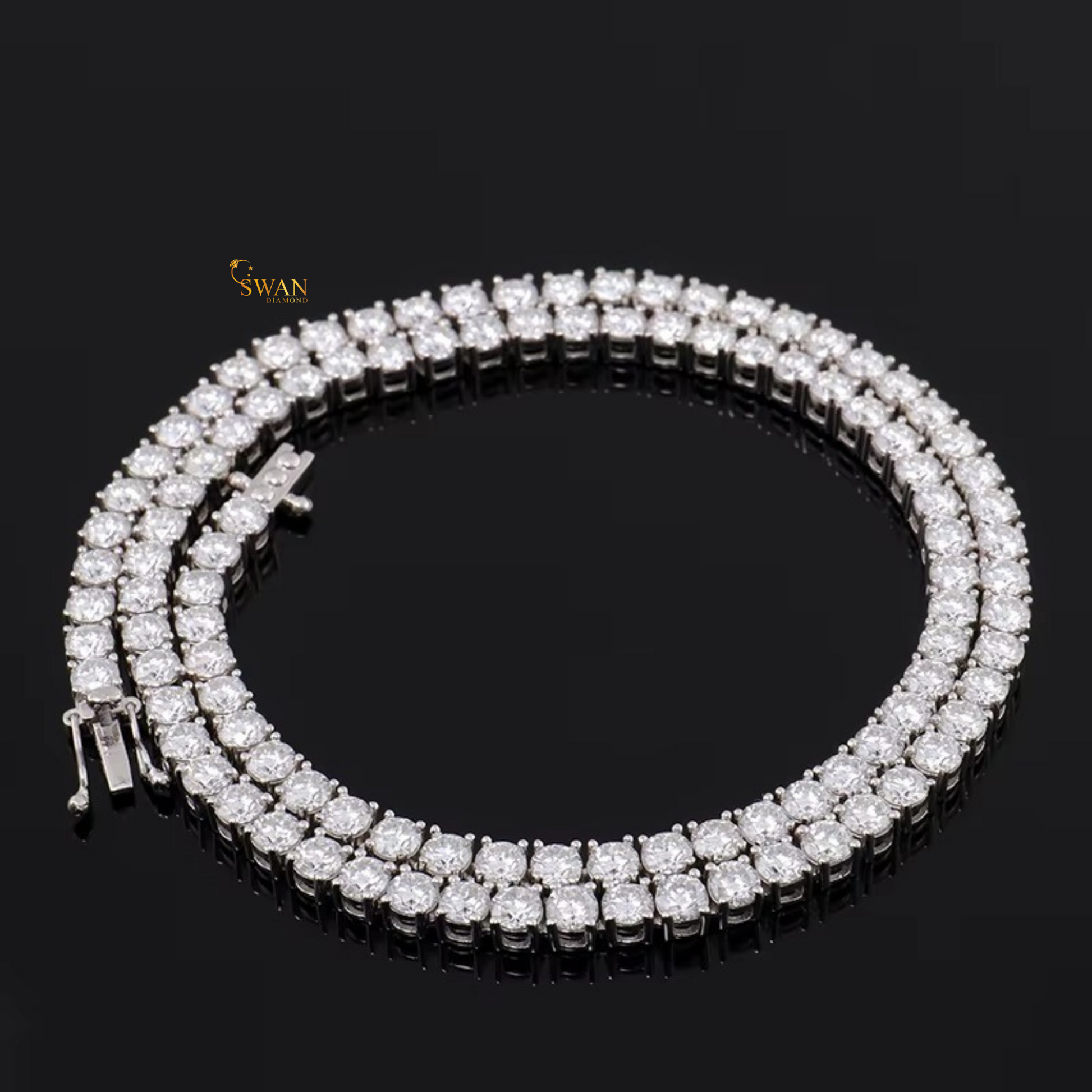 Classic Diamond Tennis Necklace in White Gold Round Cut Stones Iced Out Luxury Jewelry Gift for Men and Women swandiamond