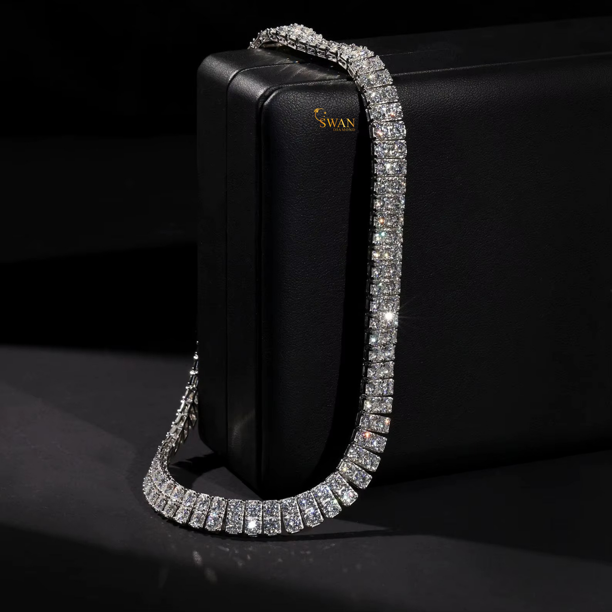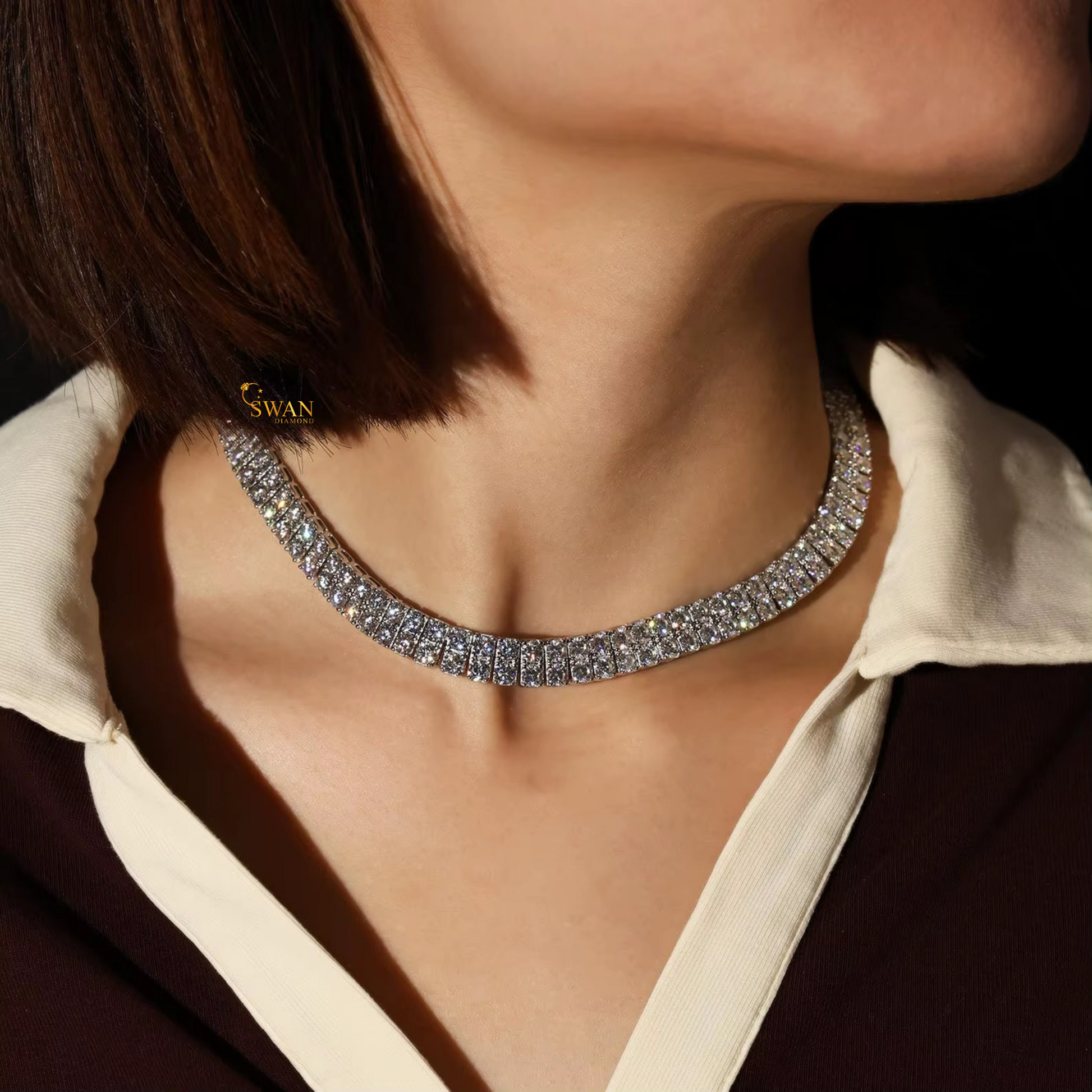 Classic Single Row Natural Diamond Tennis Necklace in White Gold Sparkling Prong Set Luxury Statement Jewelry Gift swandiamond