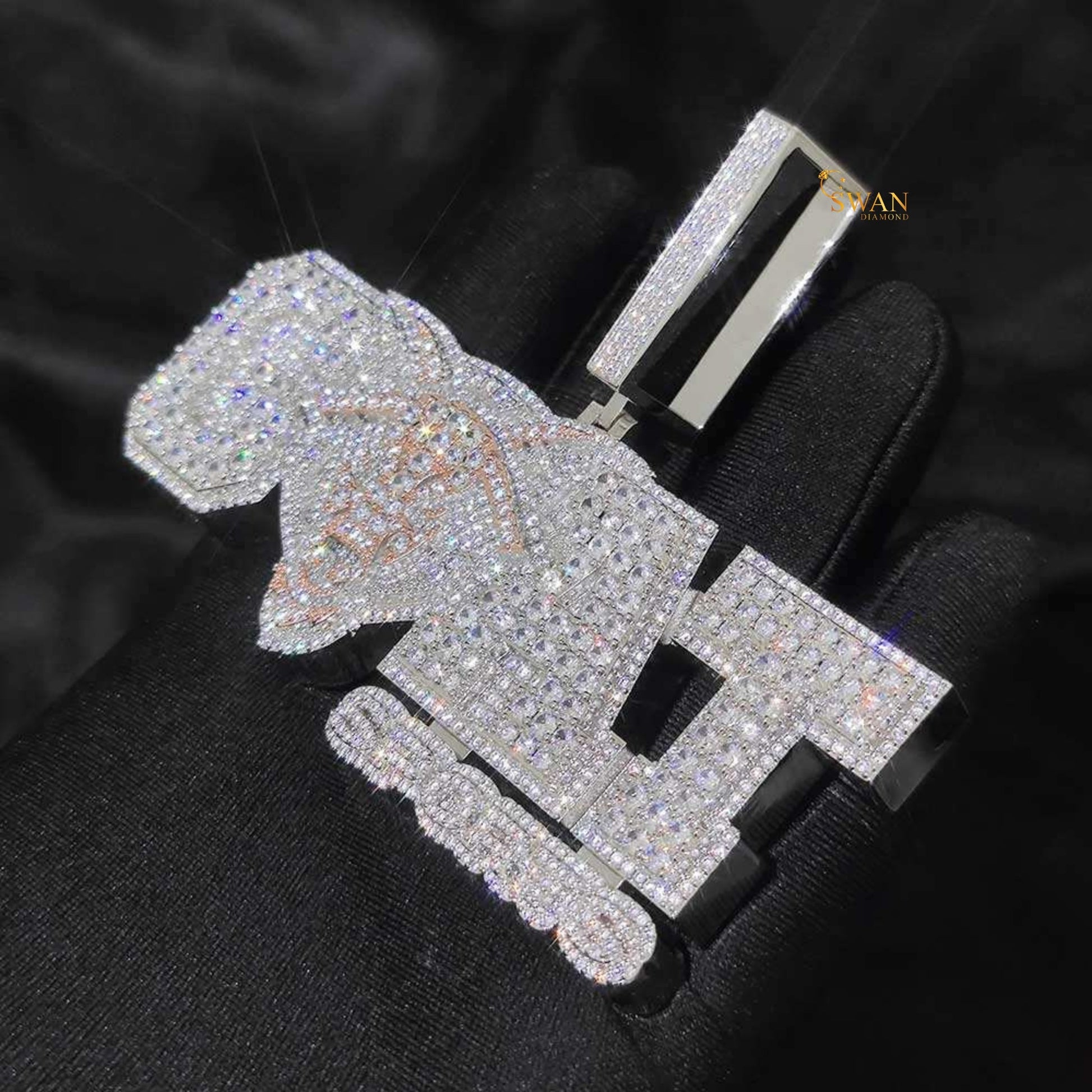 Custom Horse Logo Pendant Fully Iced Out in Silver with VVS Moissanite Diamonds Luxury Hip Hop Jewelry Statement Necklace for Men swandiamond