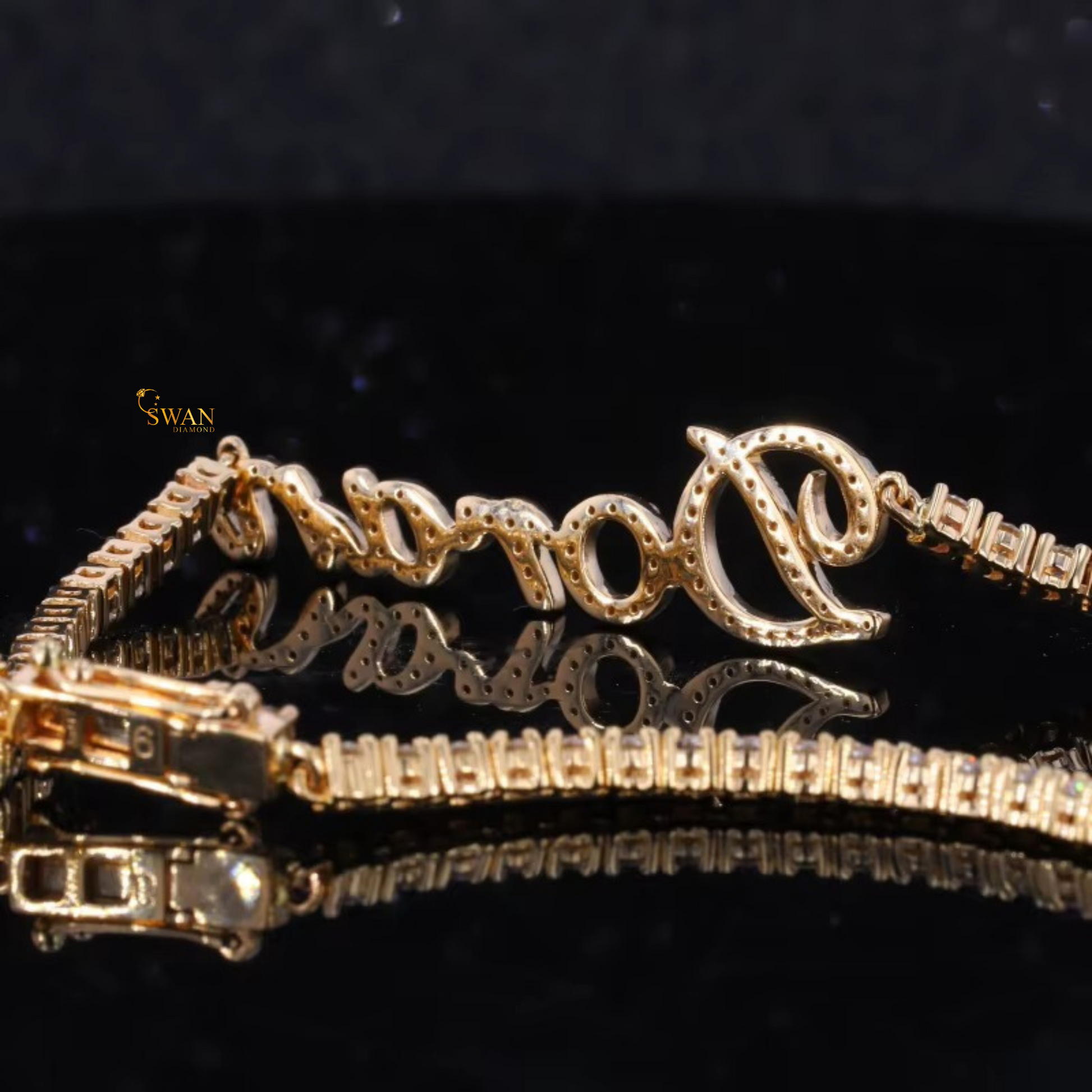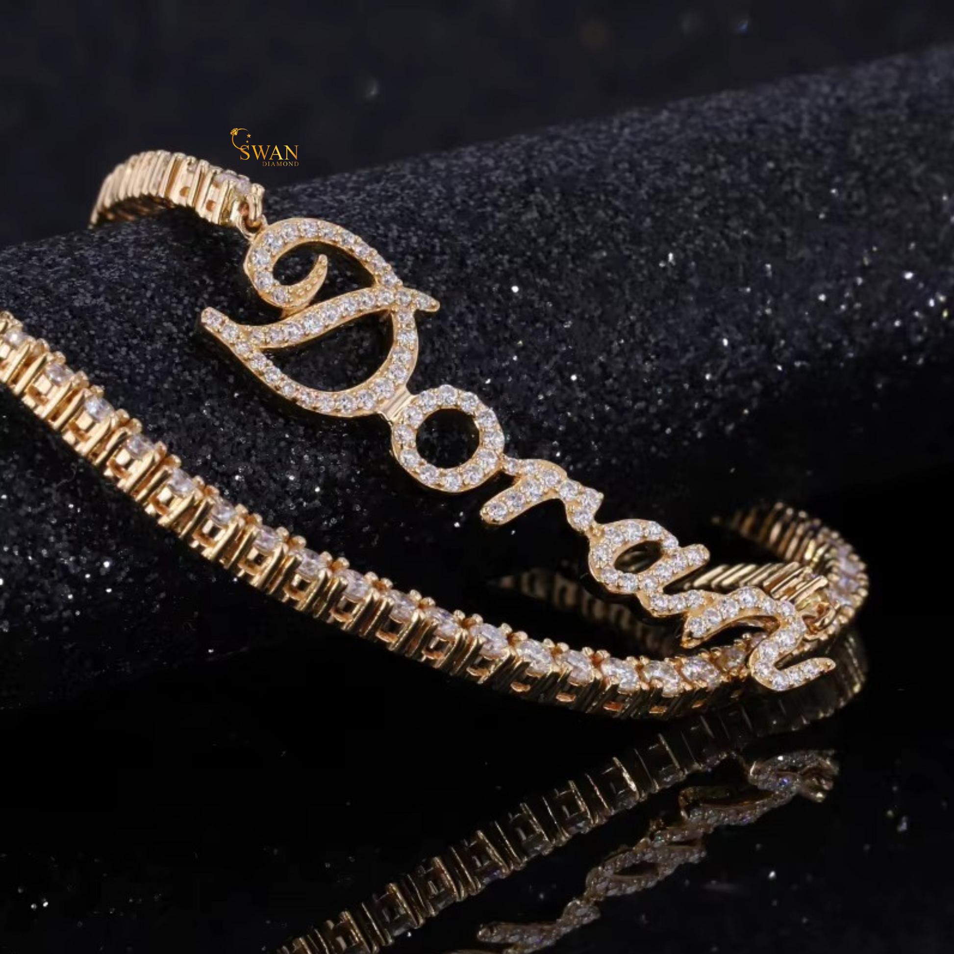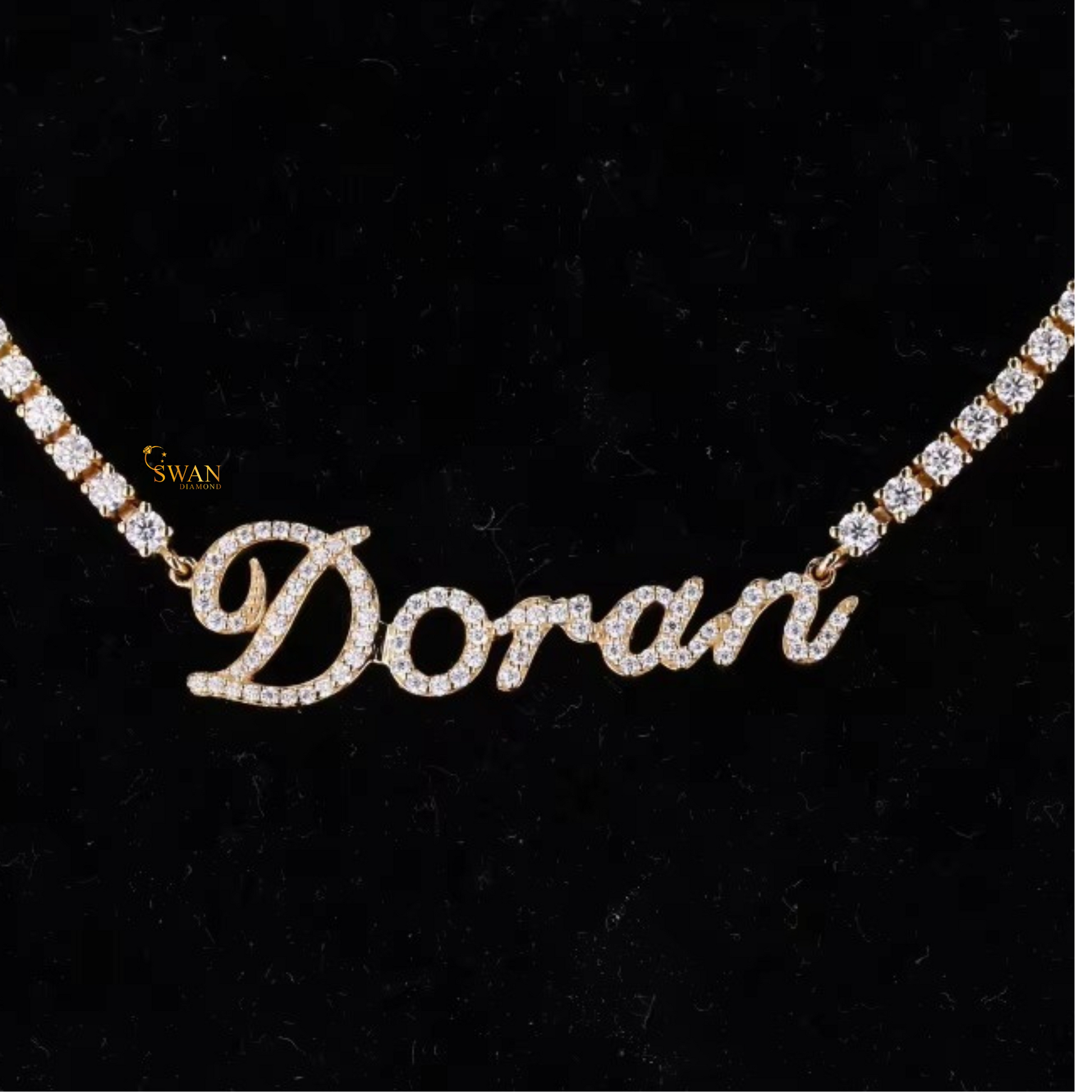 Custom Name Diamond Tennis Chain Necklace in Yellow Gold Personalized Script Pendant with Iced Out Jewelry Gift for Men and Women swandiamond