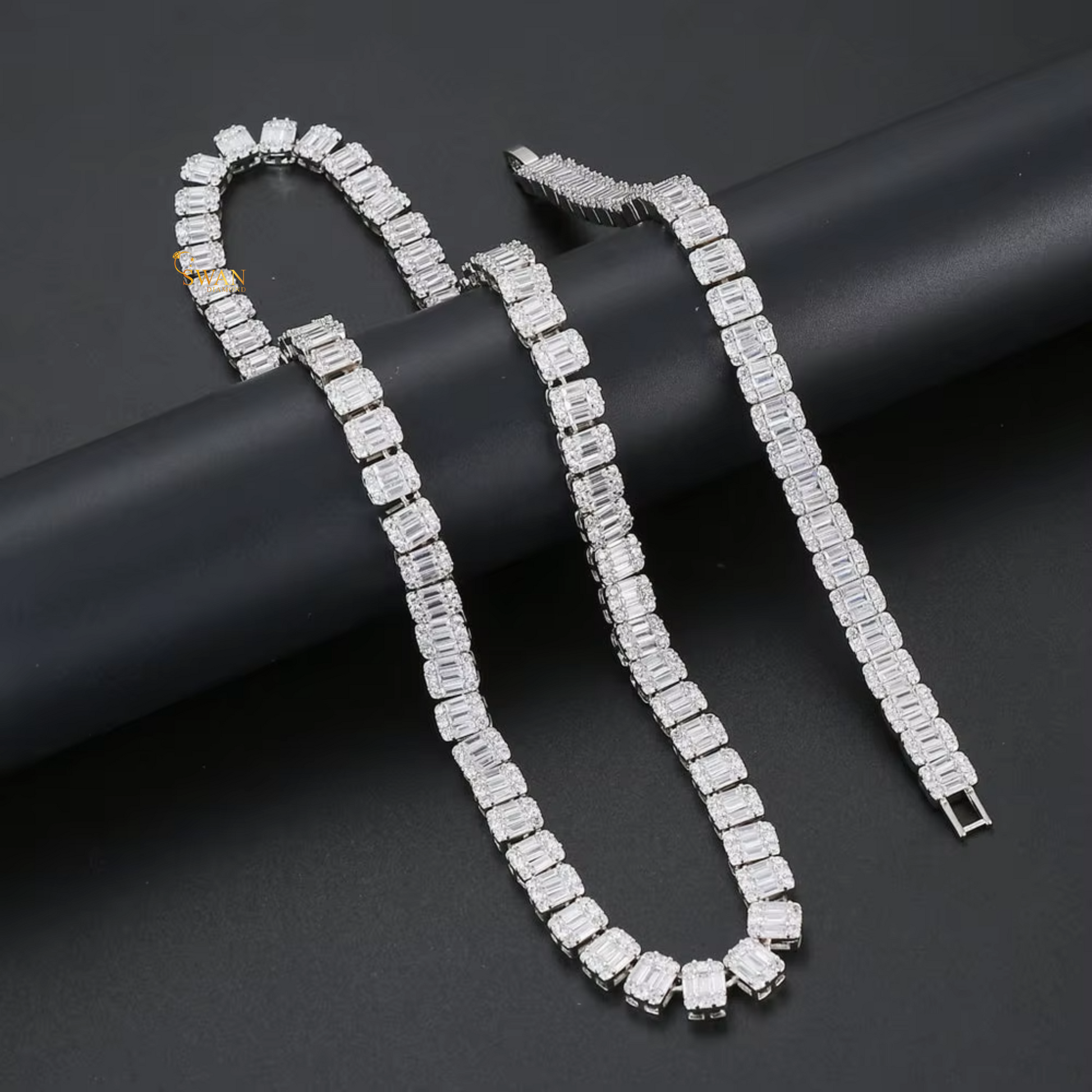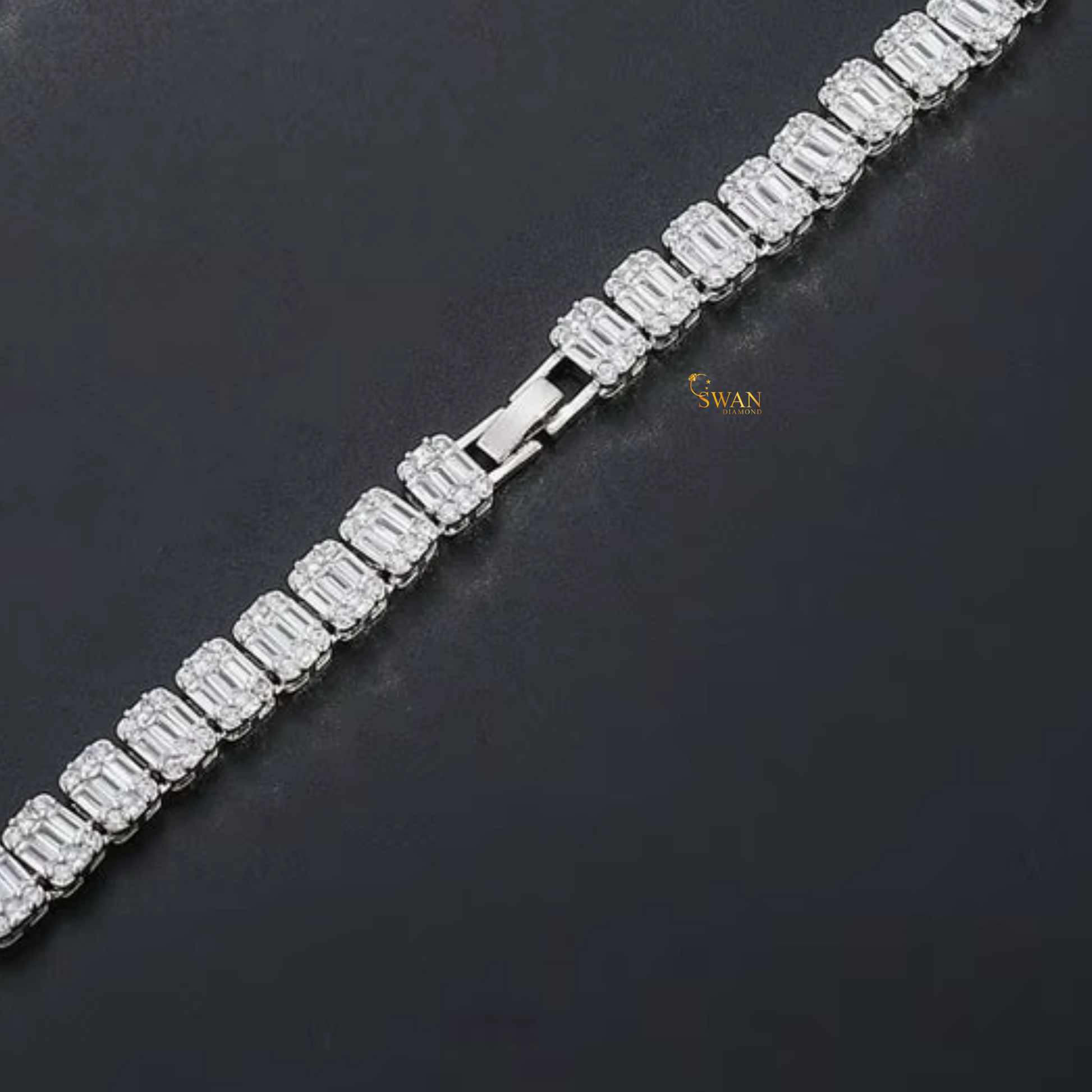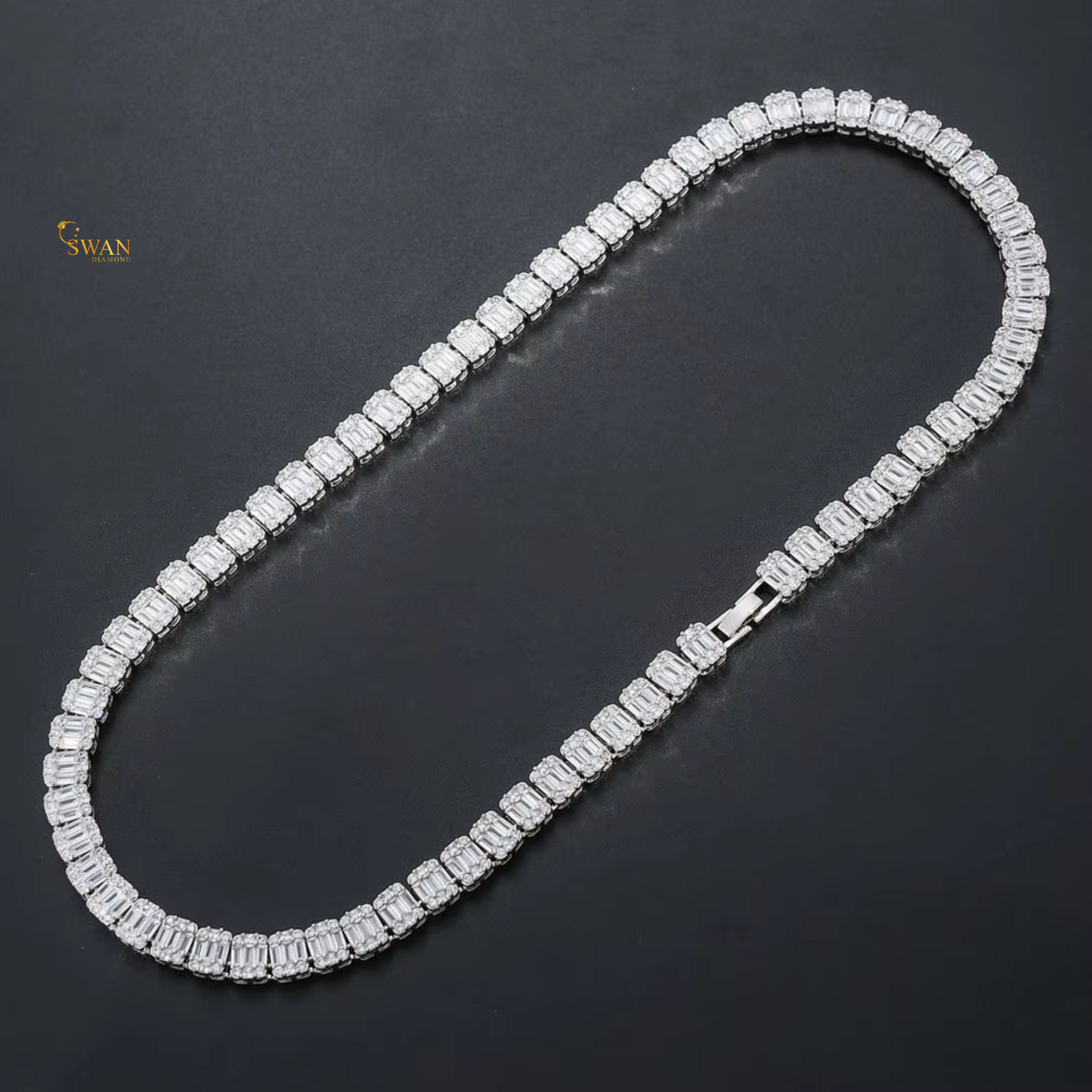 Emerald Cut & Baguette Cut Diamond Tennis Necklace in White Gold Classic Statement Jewelry for Men and Women Luxury Gift Timeless Elegant Design swandiamond