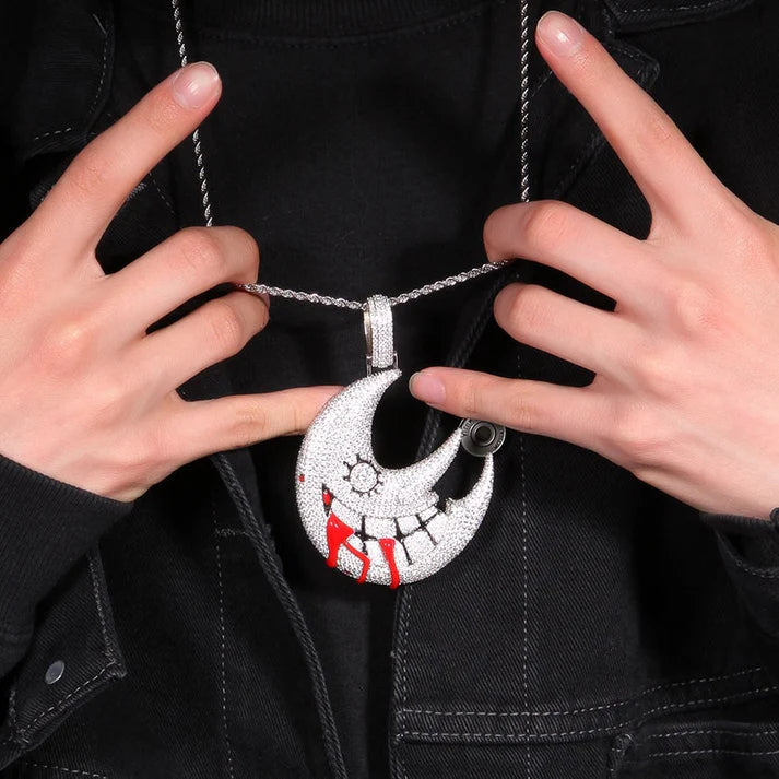 Fully Studded Moon Moissanite Pendant Necklace Trippie Redd Moon Bling Hip Hop Pendant