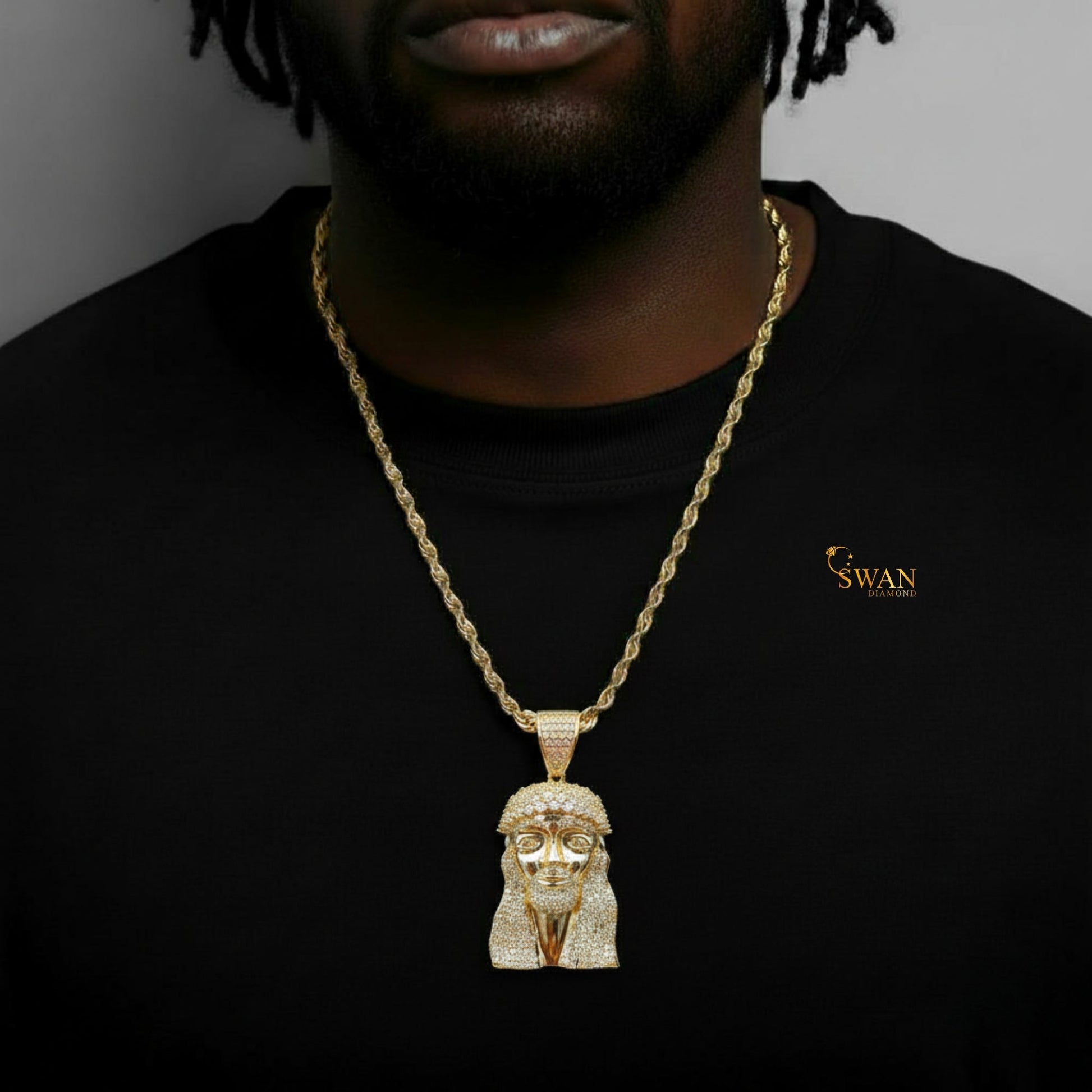Gold Hip Hop Jesus Piece Pendant with Crown of Thorns Iced Out Jewelry Religious Bling Necklace Custom Statement Chain for Men