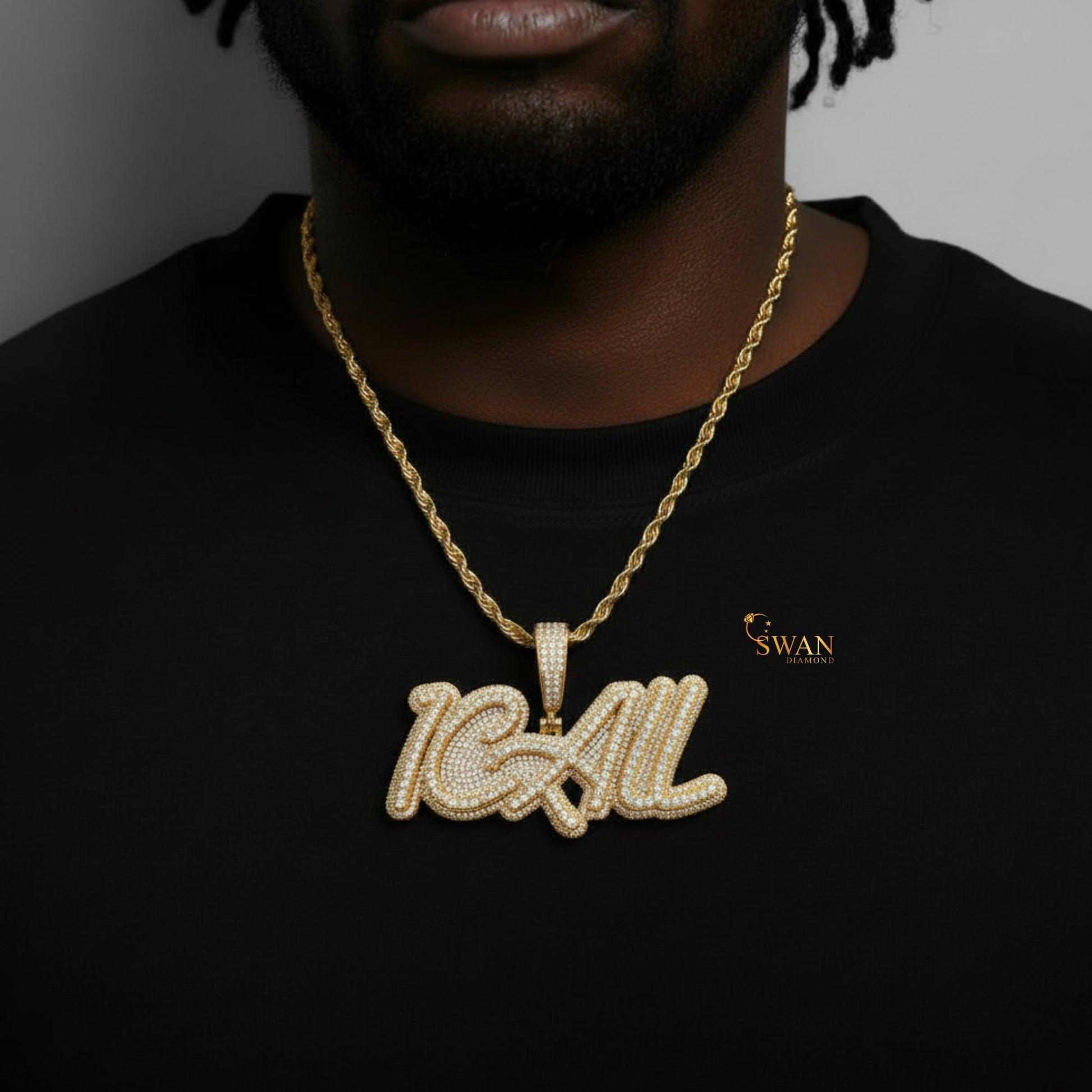 Hip Hop Custom CAL Name Pendant in Gold Fully Iced Out with VVS Moissanite Diamonds Luxury Personalized Jewelry Necklace for Men swandiamond