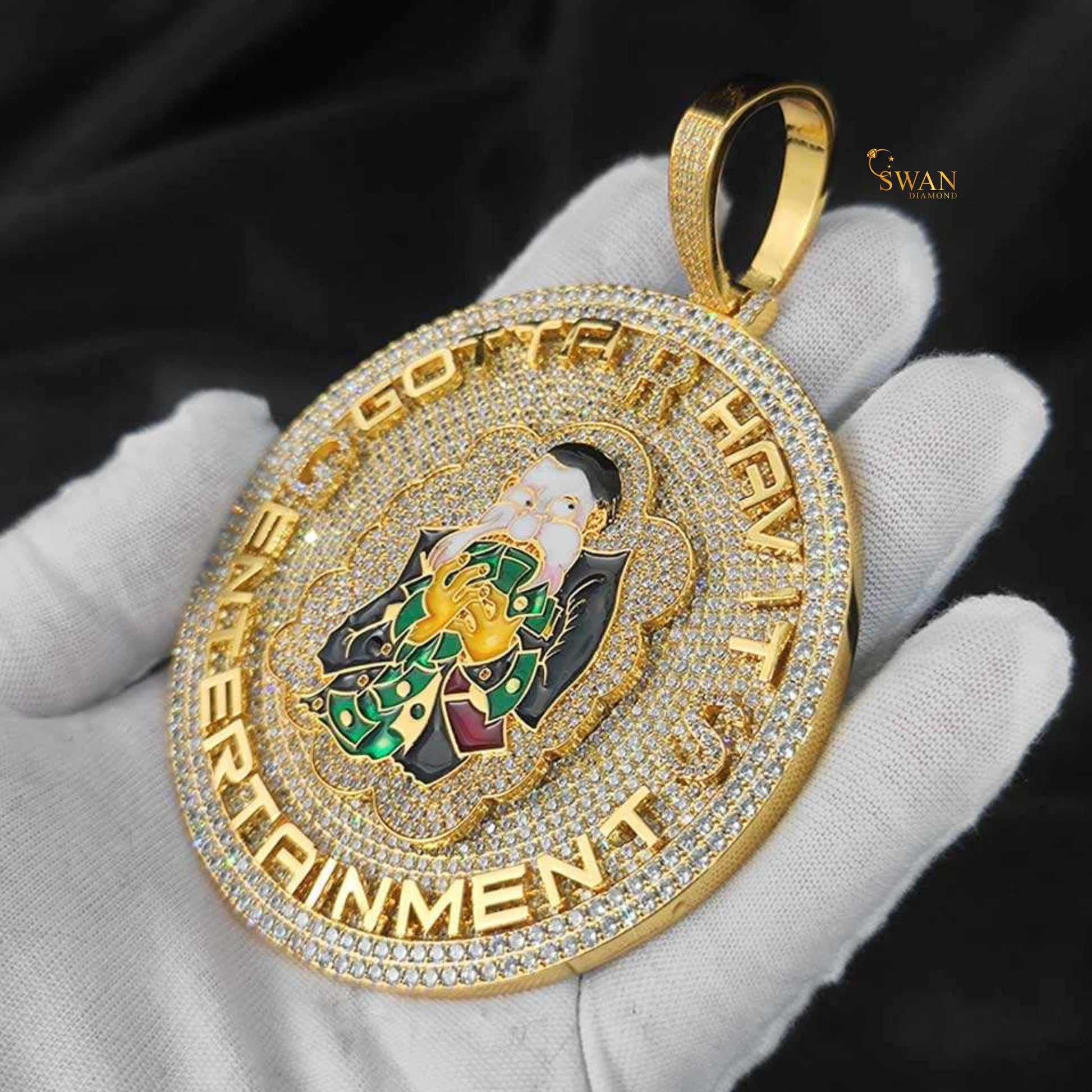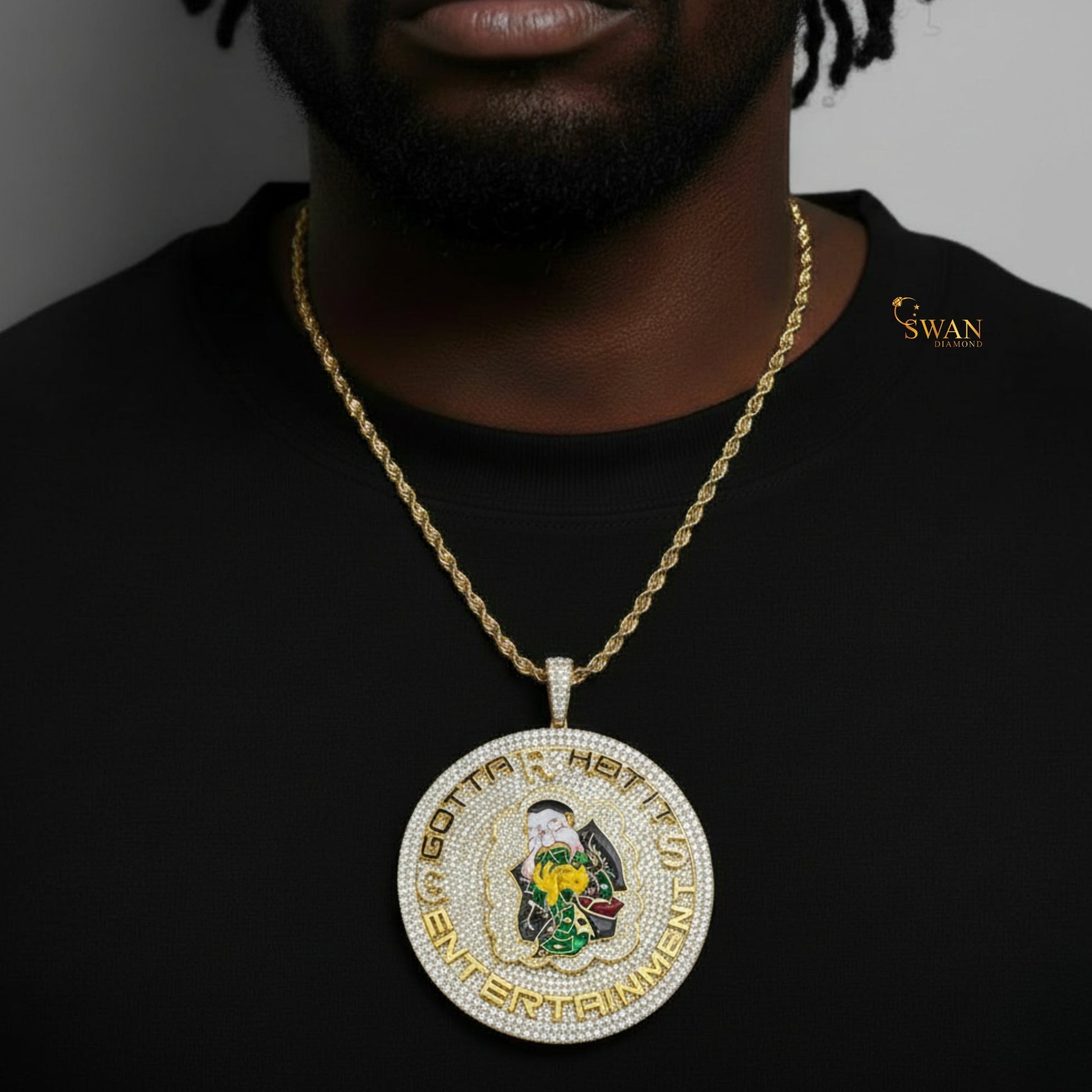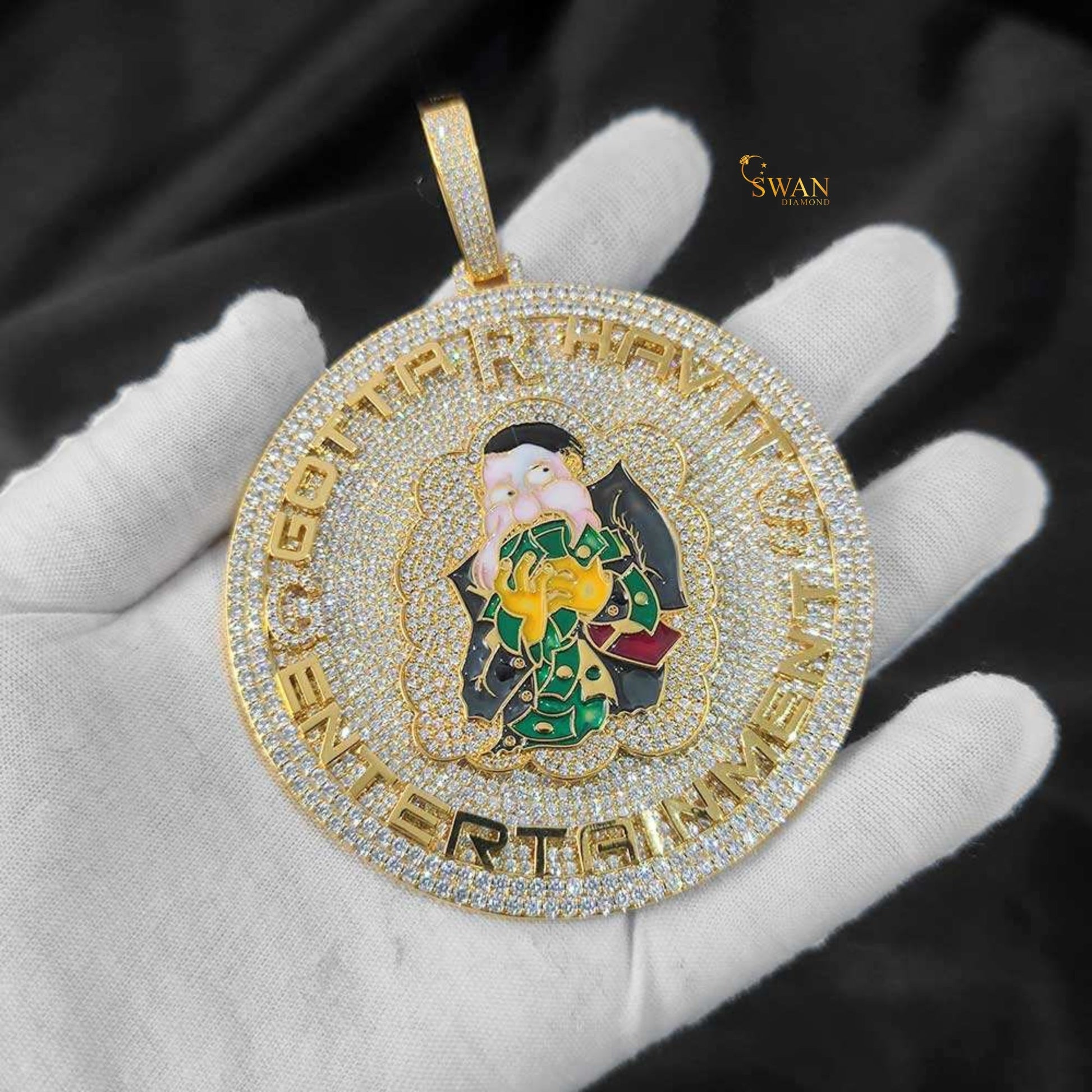 Hip Hop Necklace Custom Gotta Havitt Entertainment Medallion Pendant Iced Out in Gold with VVS Moissanite Diamonds Luxury for Men swandiamond