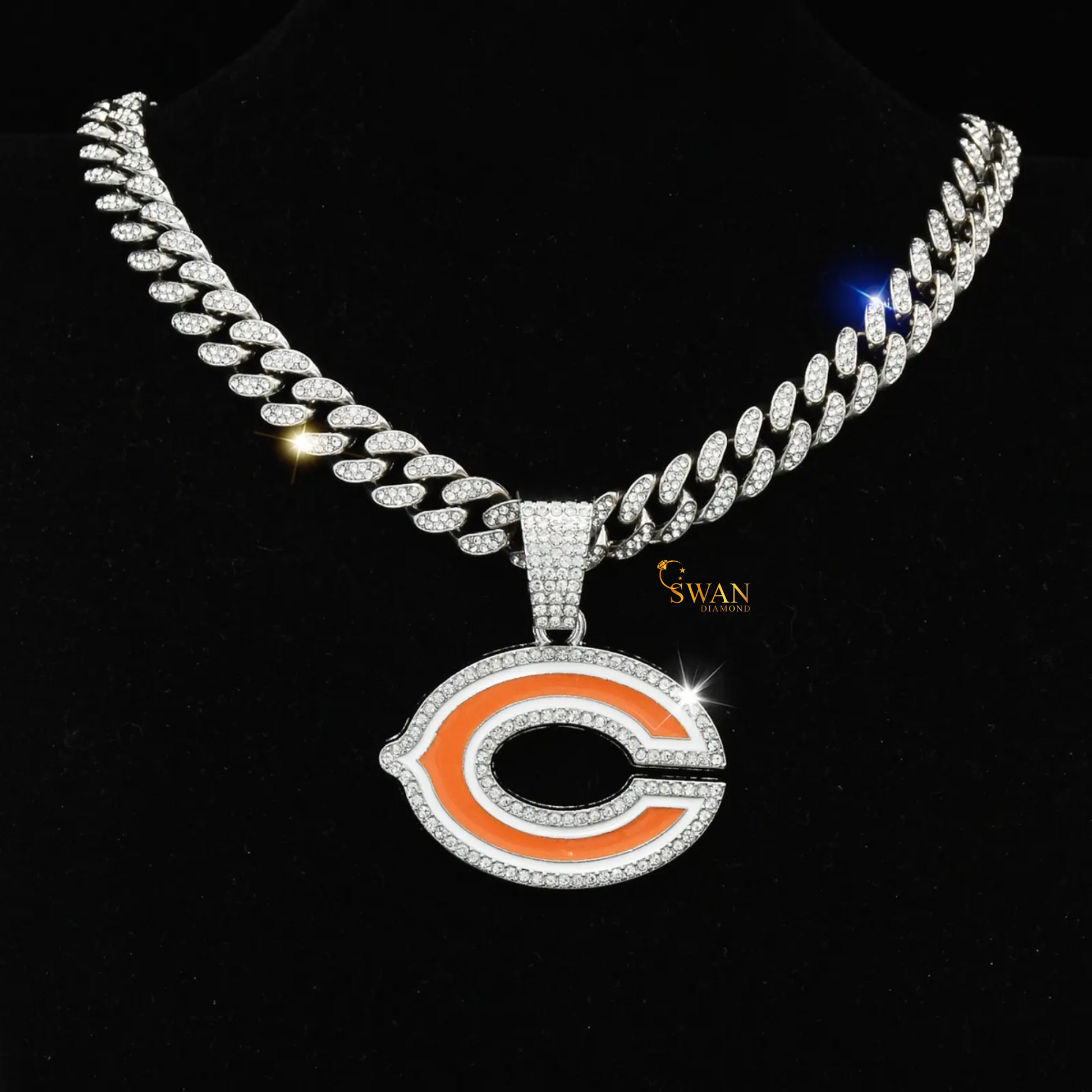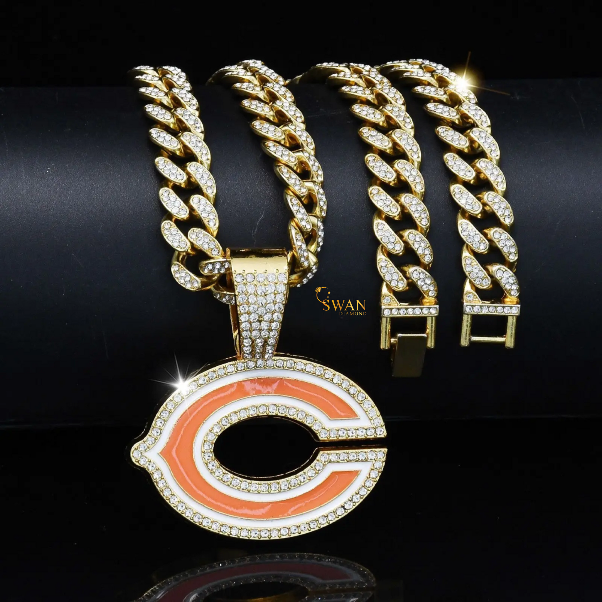 Luxury Hip Hop Jewelry Chicago Bears Diamond Pendant with Iced Out Cuban Link Chain for Men Custom Team Bling Necklace swandiamond