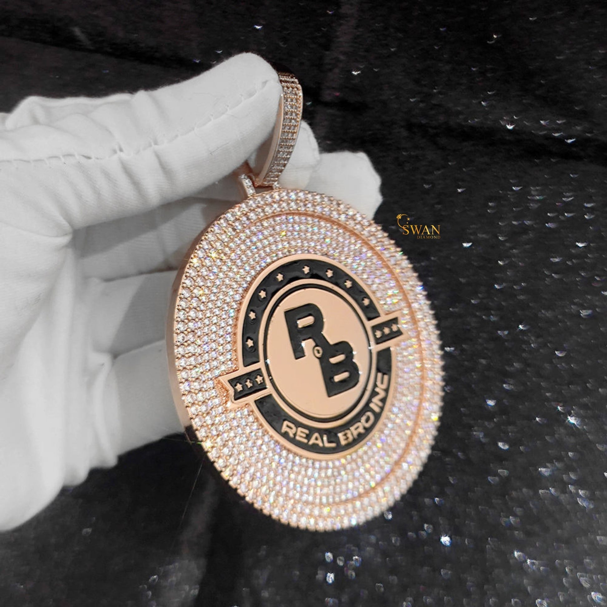 Luxury Hip Hop Rose Gold Real Bro Inc Medallion Pendant Custom Design Iced Out with VVS Moissanite Diamonds Necklace for Men swandiamondd
