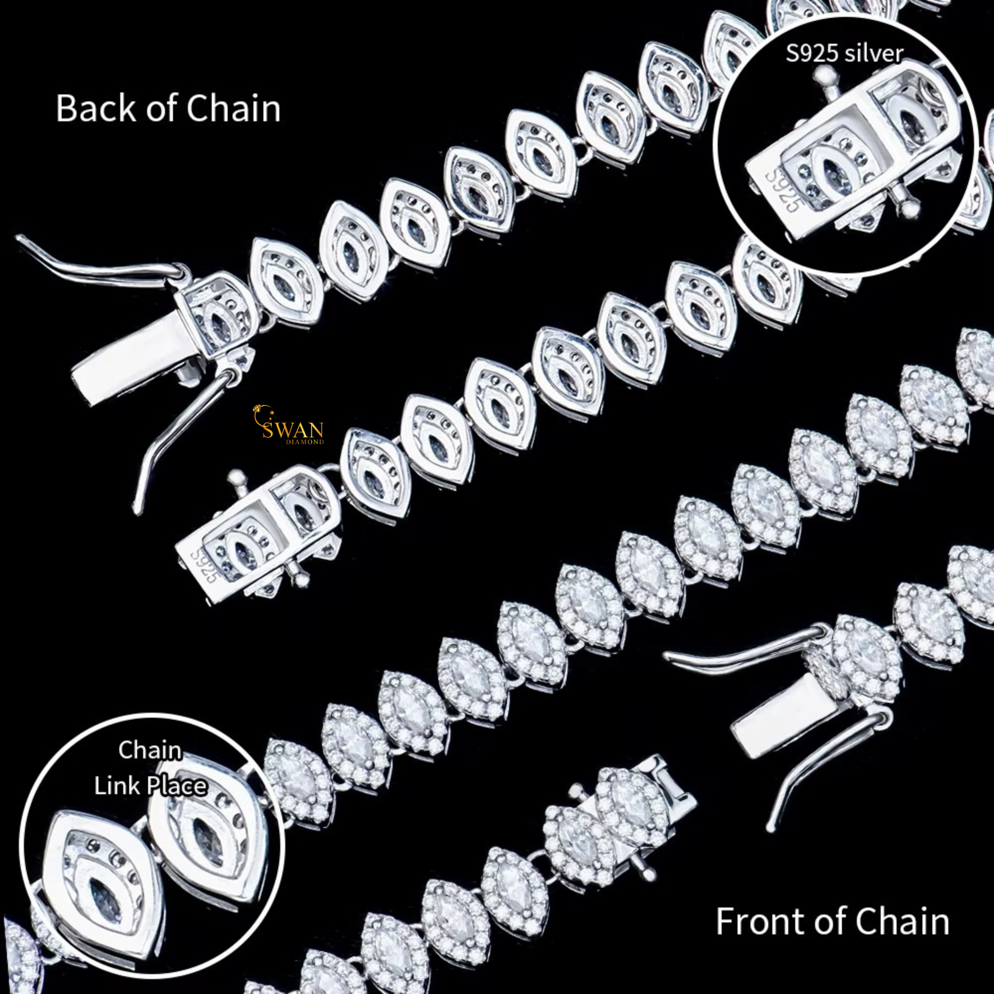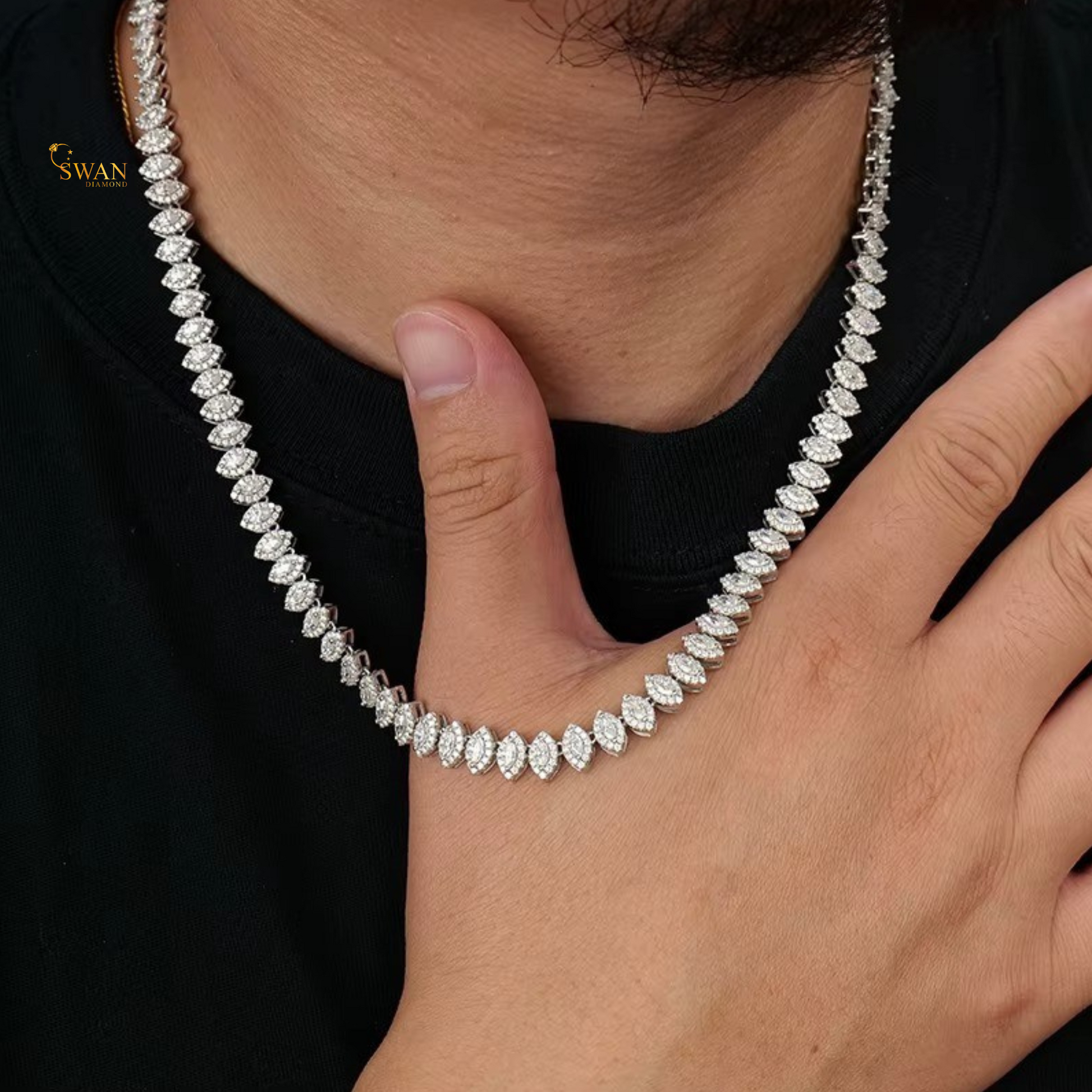 Marquise Cut Natural Diamond Tennis Necklace in White Gold Diamond Choker Elegant Statement Necklace Luxury Fine Jewelry Gift for Men and Women swandiamond