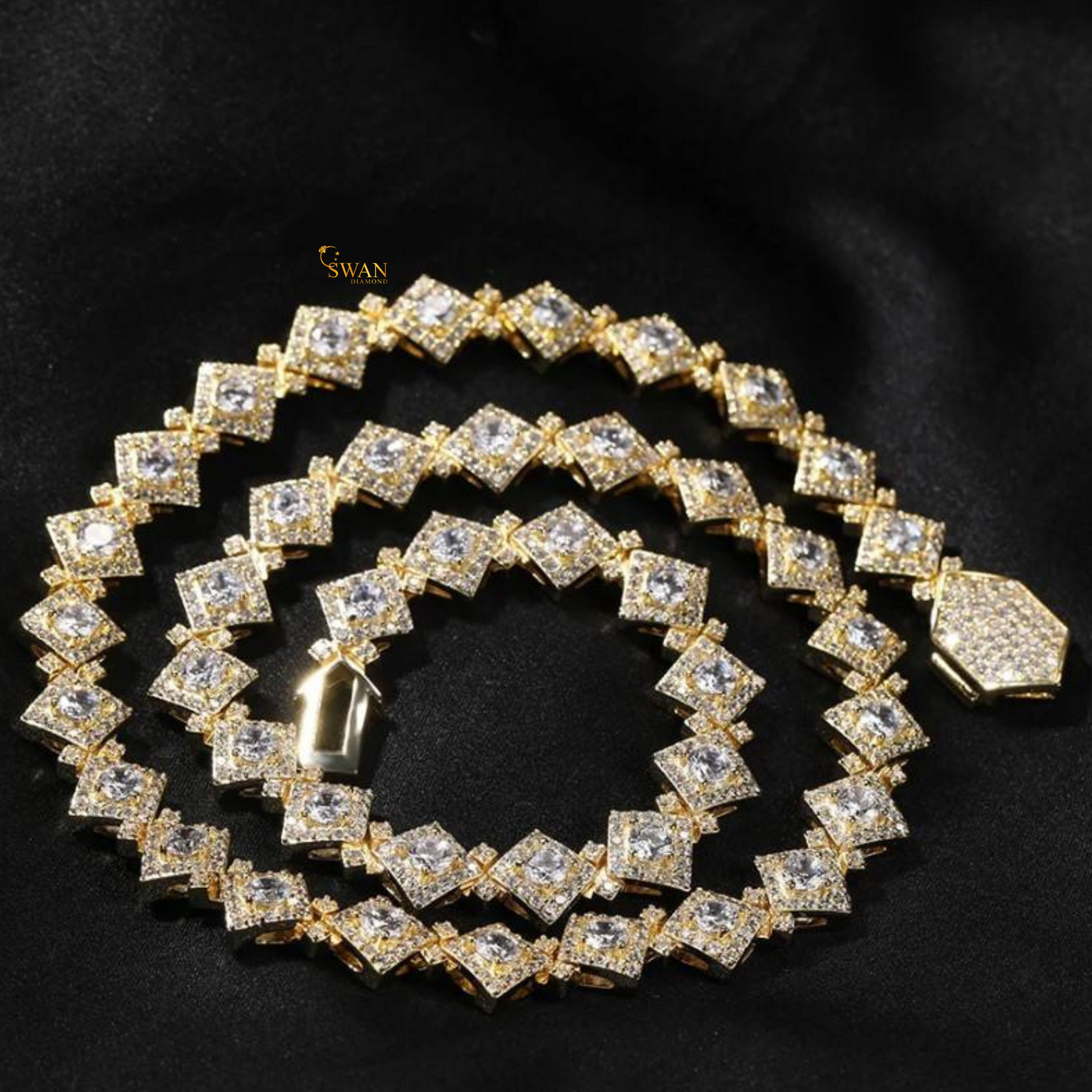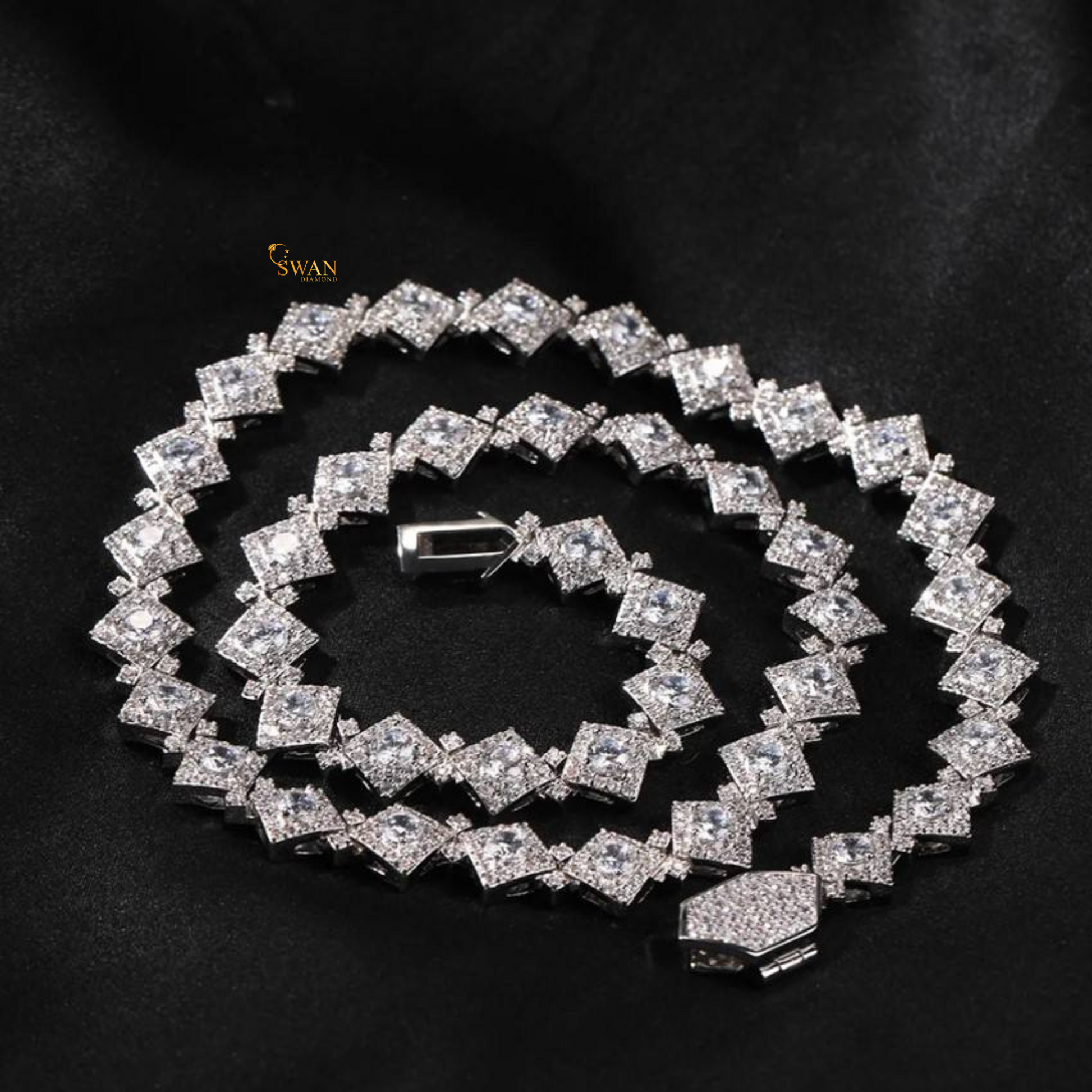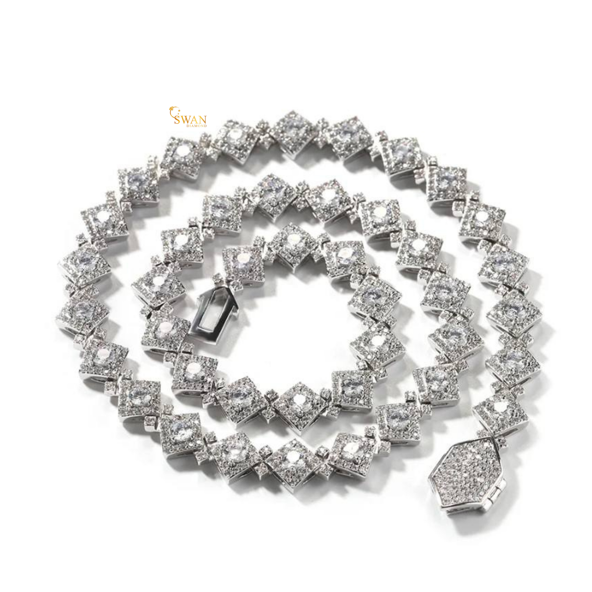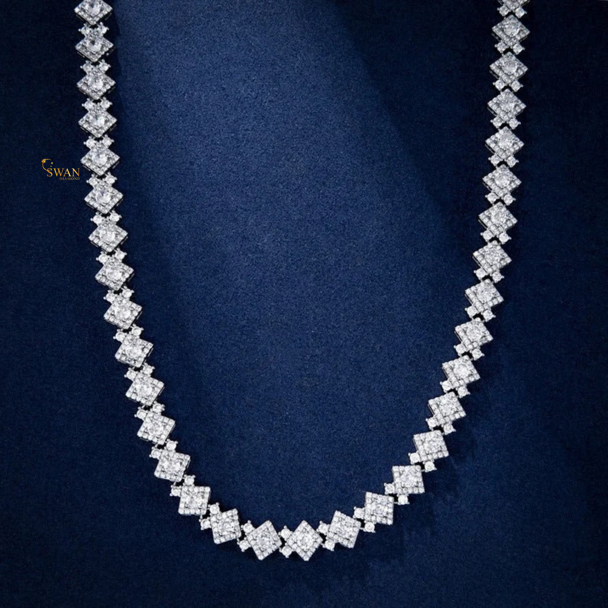 Princess Cut Diamond Cluster Tennis Necklace in White Gold Unique Geometric Statement Jewelry for Men and Women swandiamond