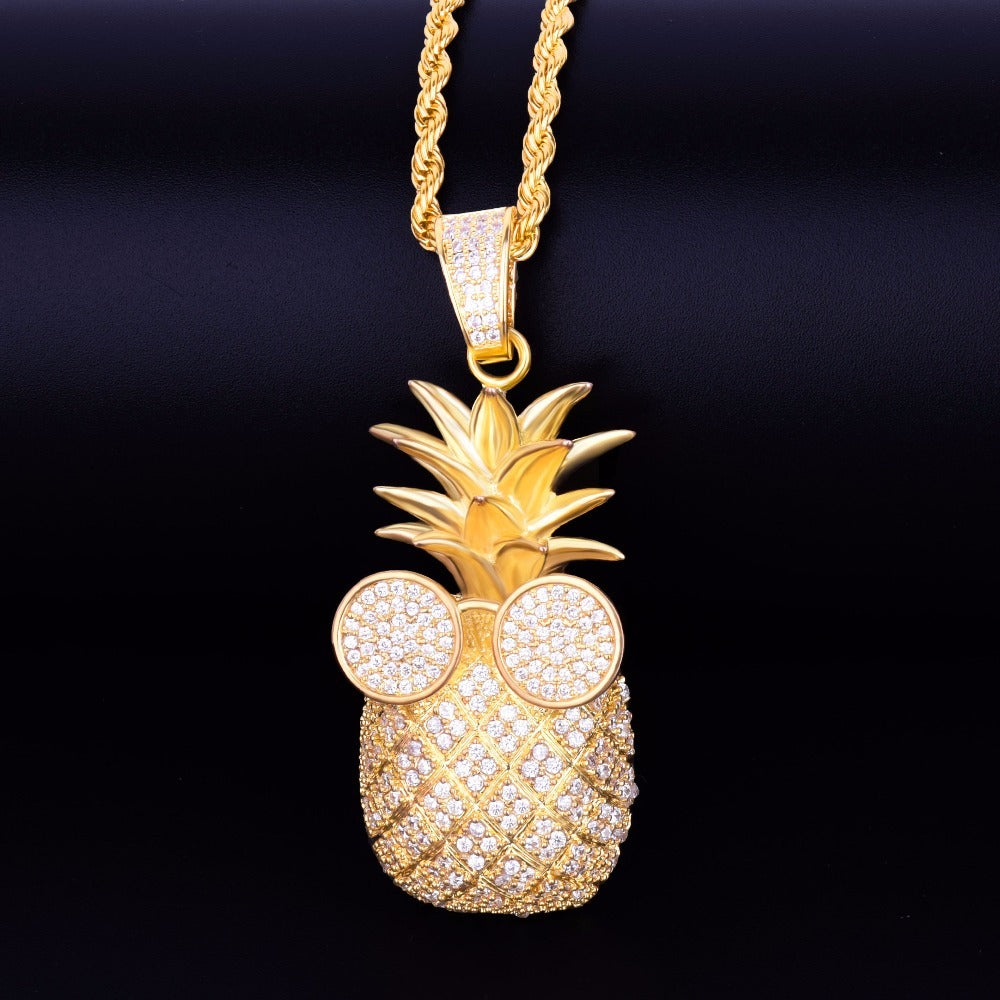 Rose Gold Silver Pineapple Hip Hop Pendant Chain Necklace by swandiamond