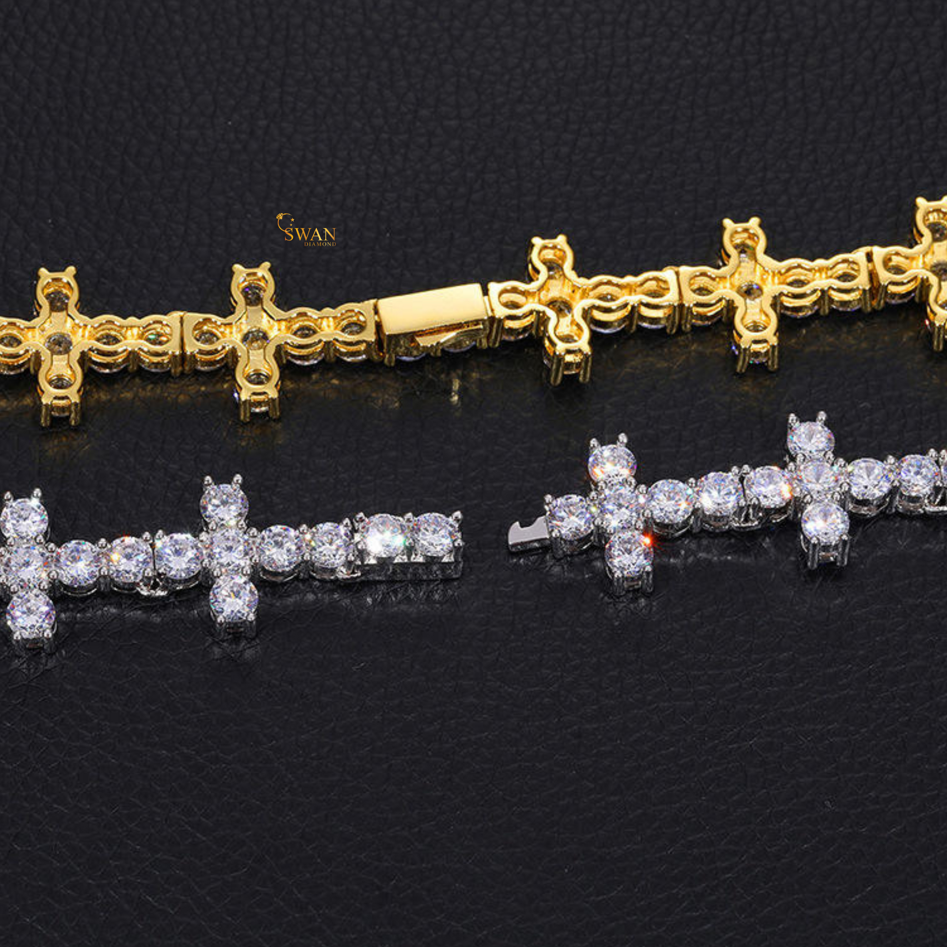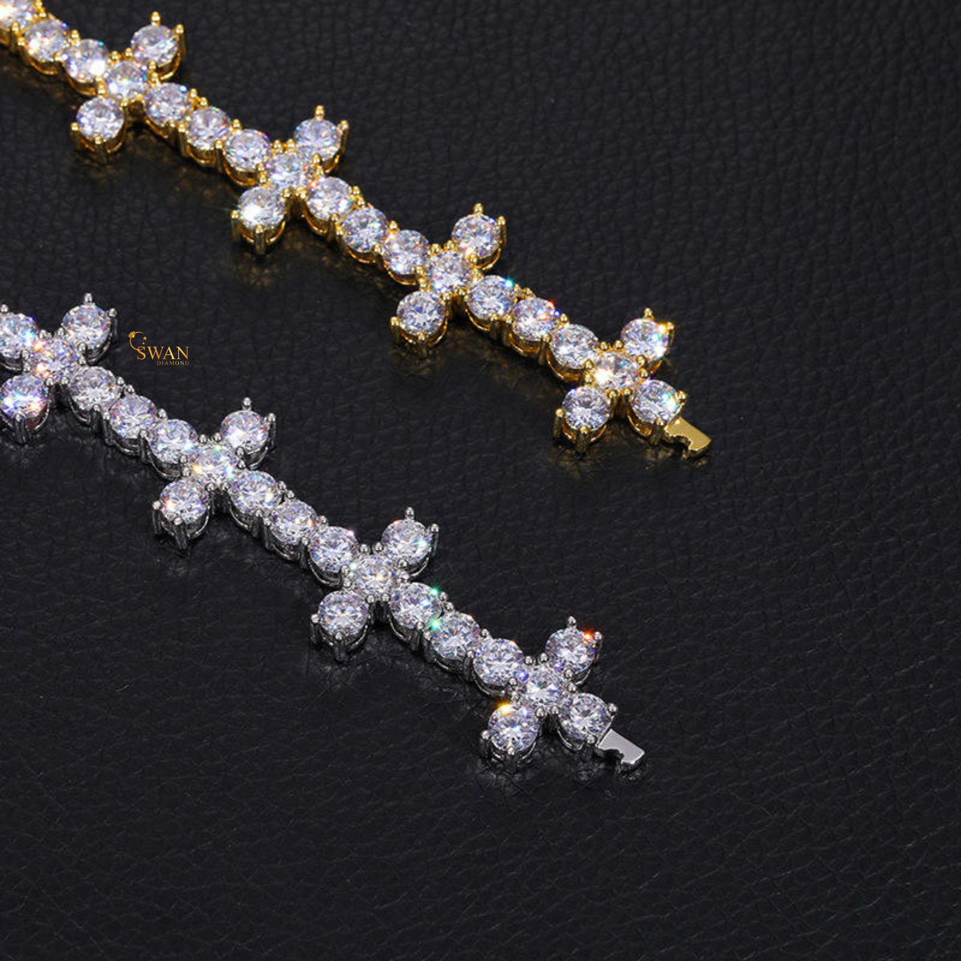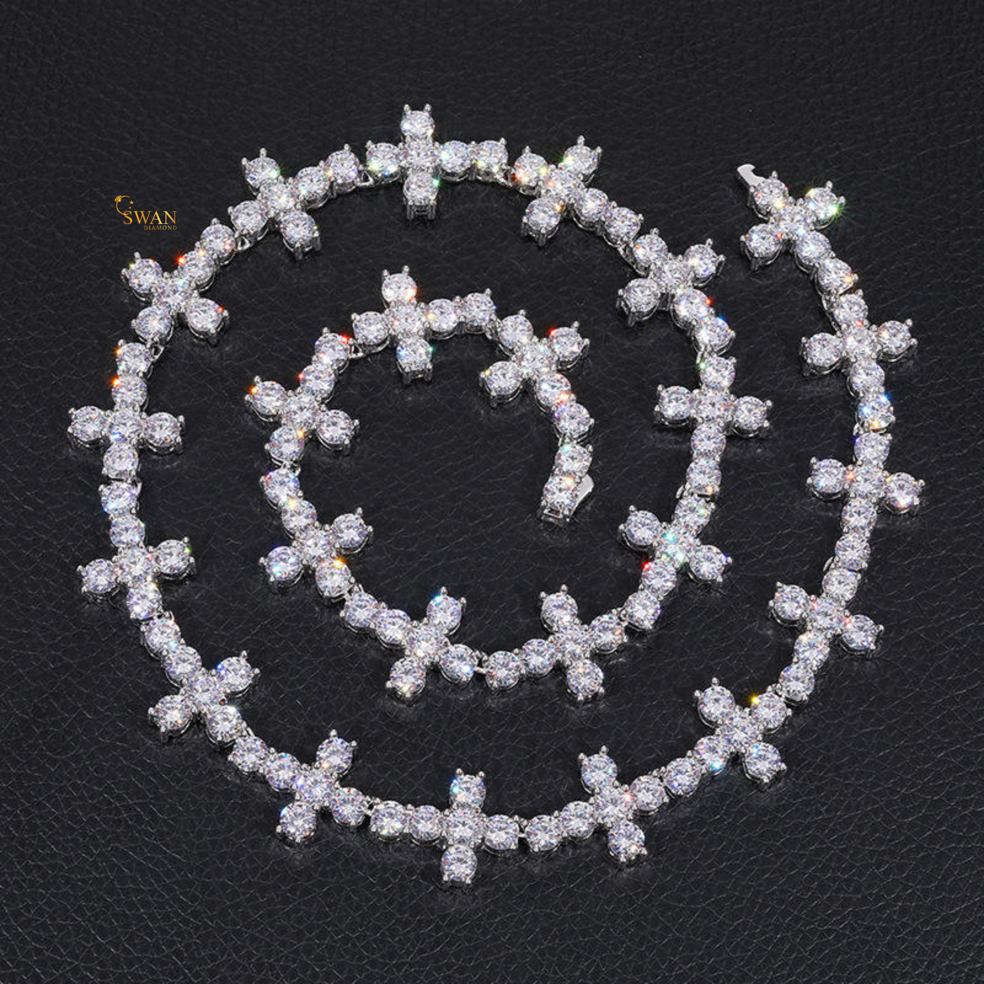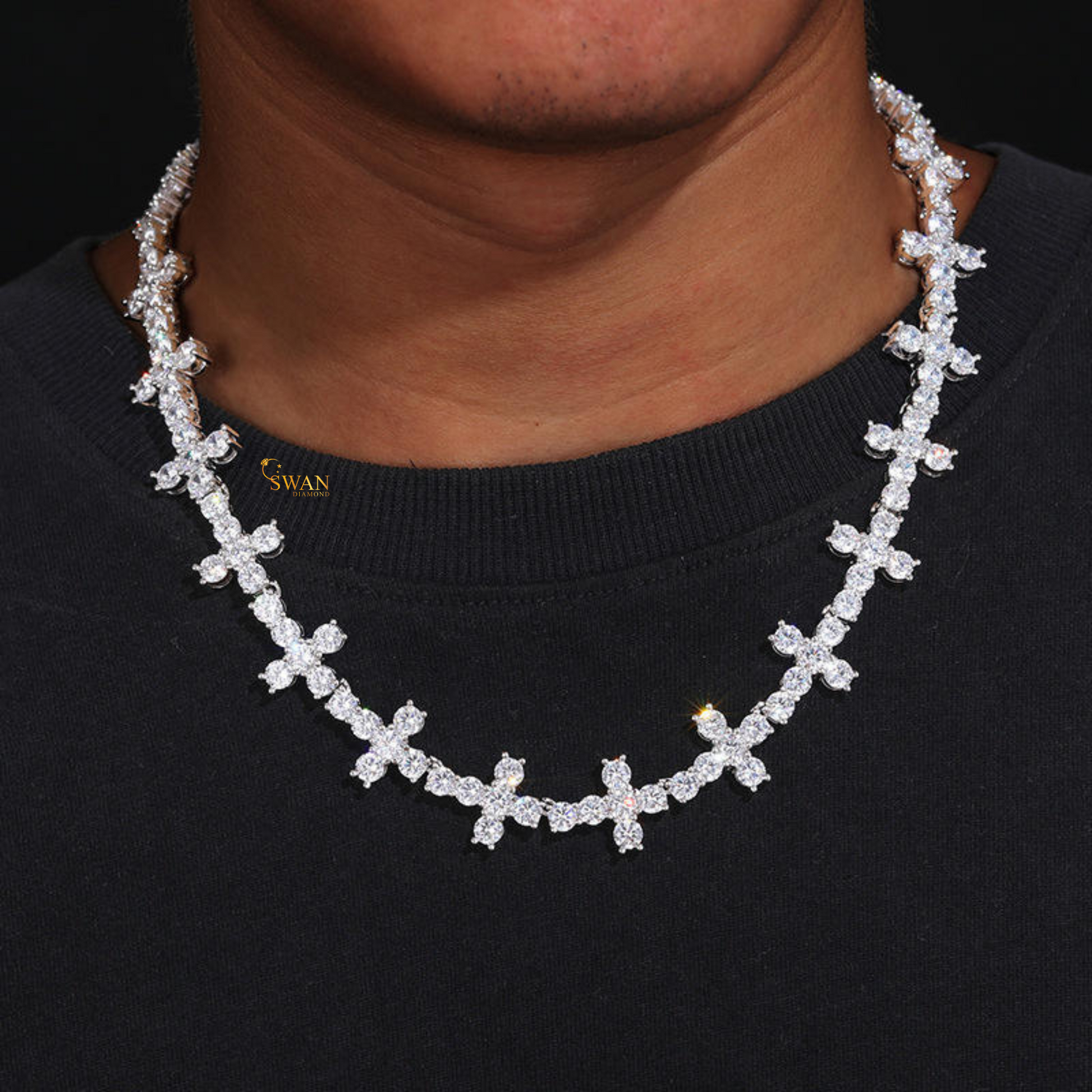 Unique Cross Cluster Diamond Luxury Tennis Necklace in White Gold Modern Statement Jewelry for Men and Women swandiamond