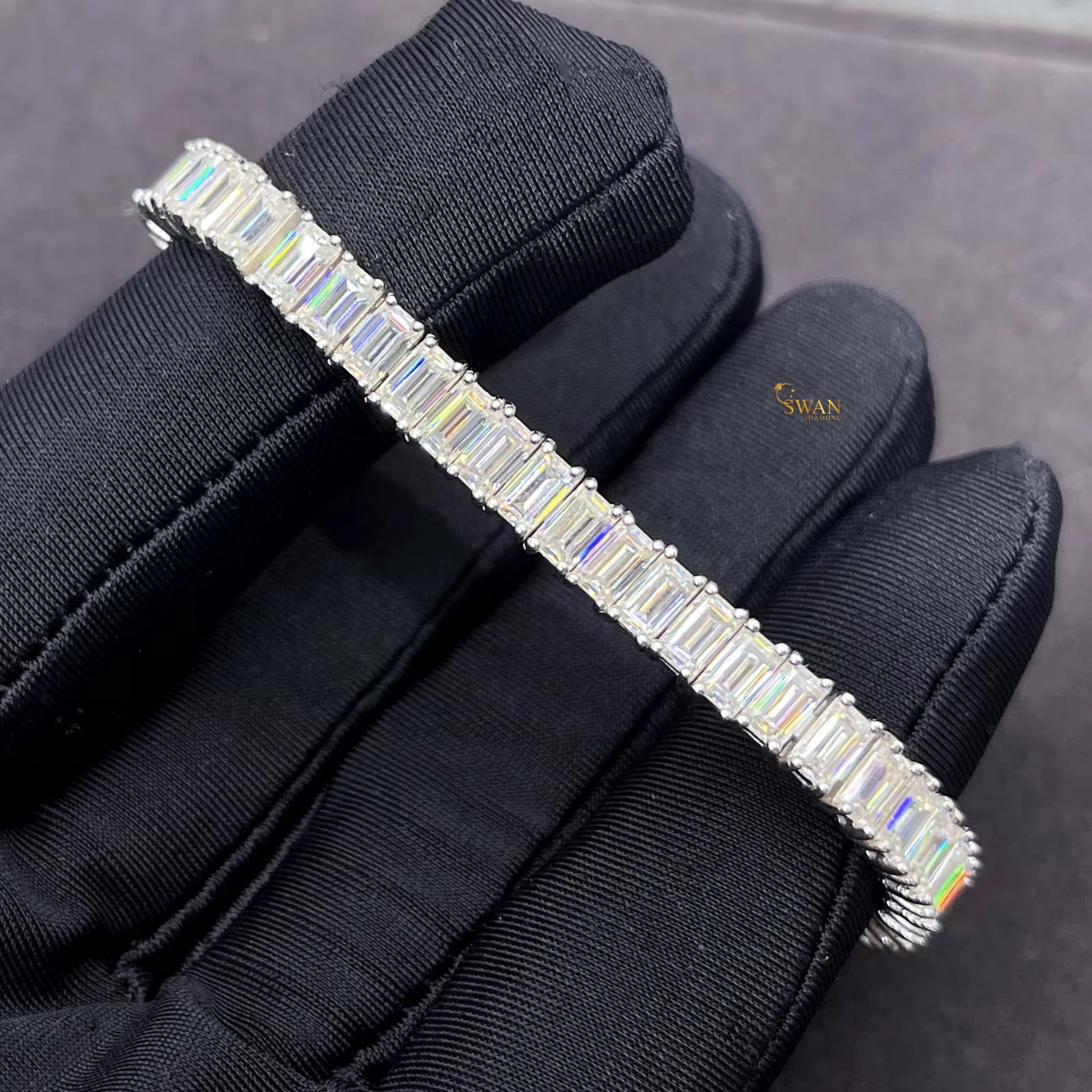 Elegant Baguette Cut Diamond Tennis Bracelet in White Gold Sparkling Natural Diamond Jewelry Timeless Luxury Statement Gift for Her swandiamond