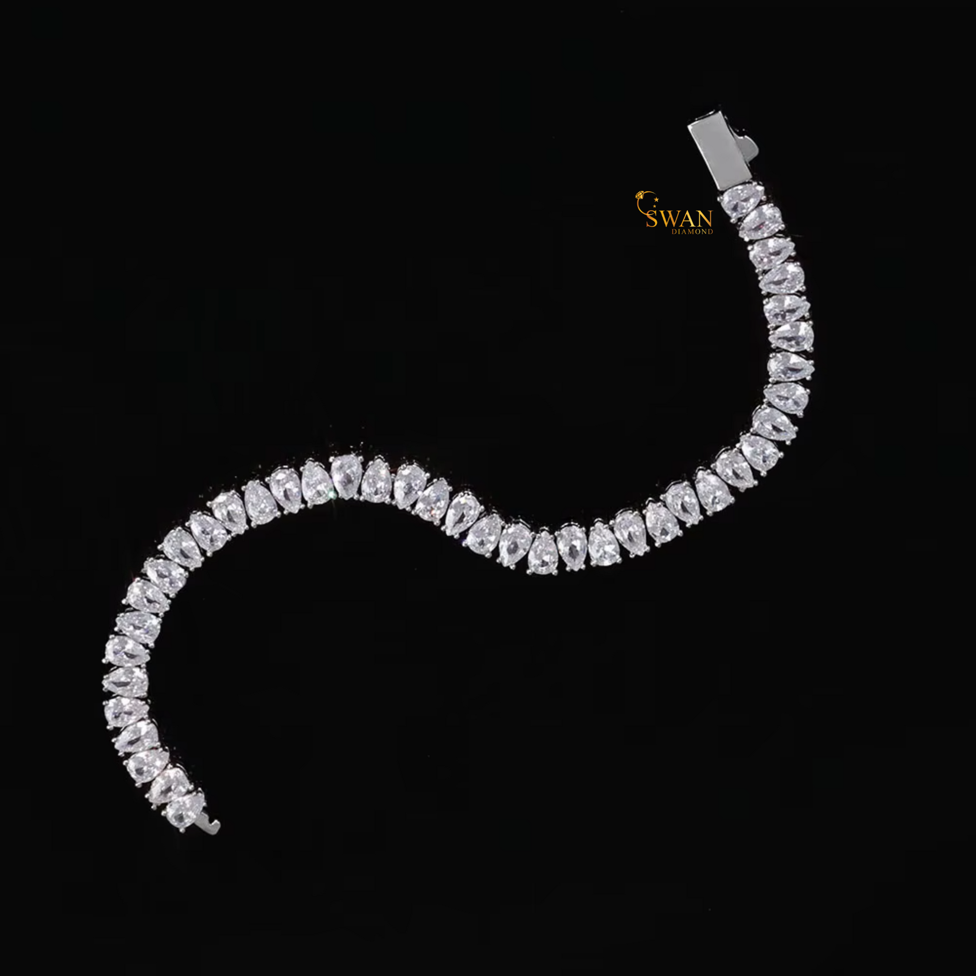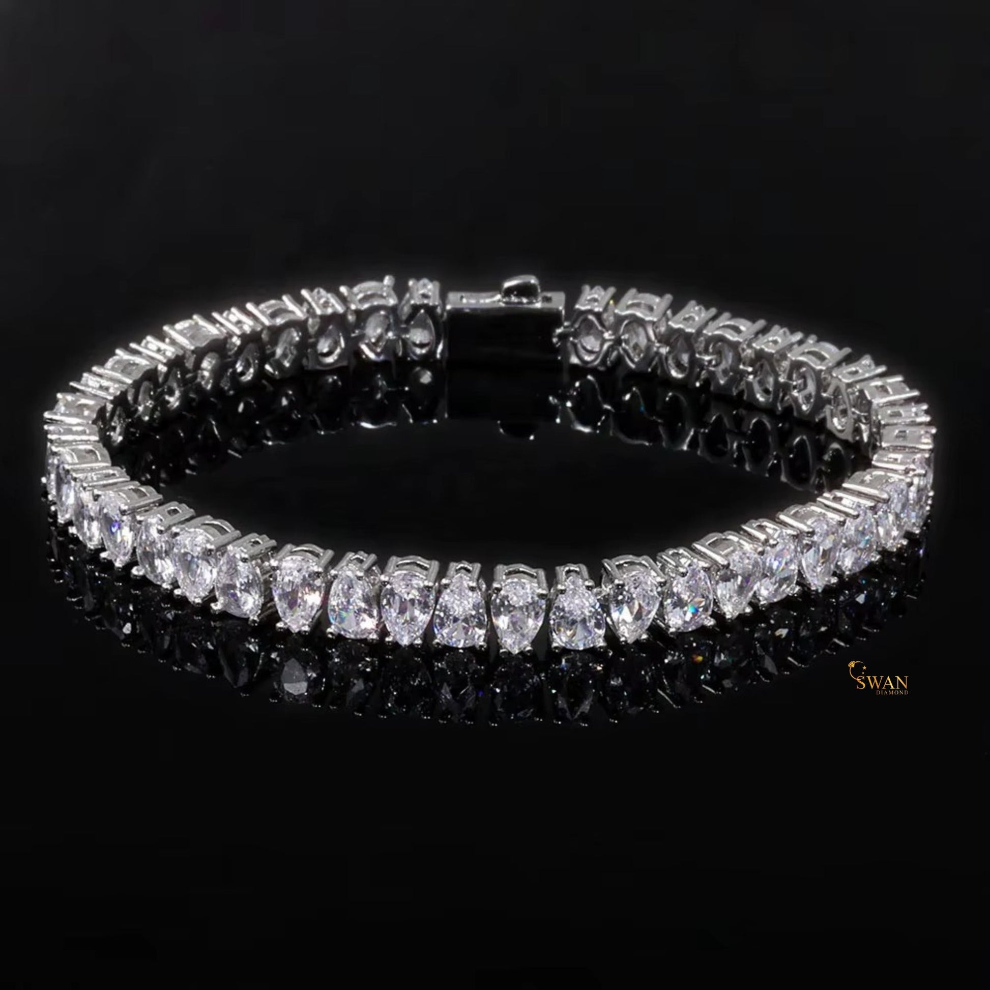 Elegant Pear Cut Diamond Tennis Bracelet in White Gold Sparkling Natural Diamond Jewelry Timeless Luxury Statement Gift for Her swandiamond