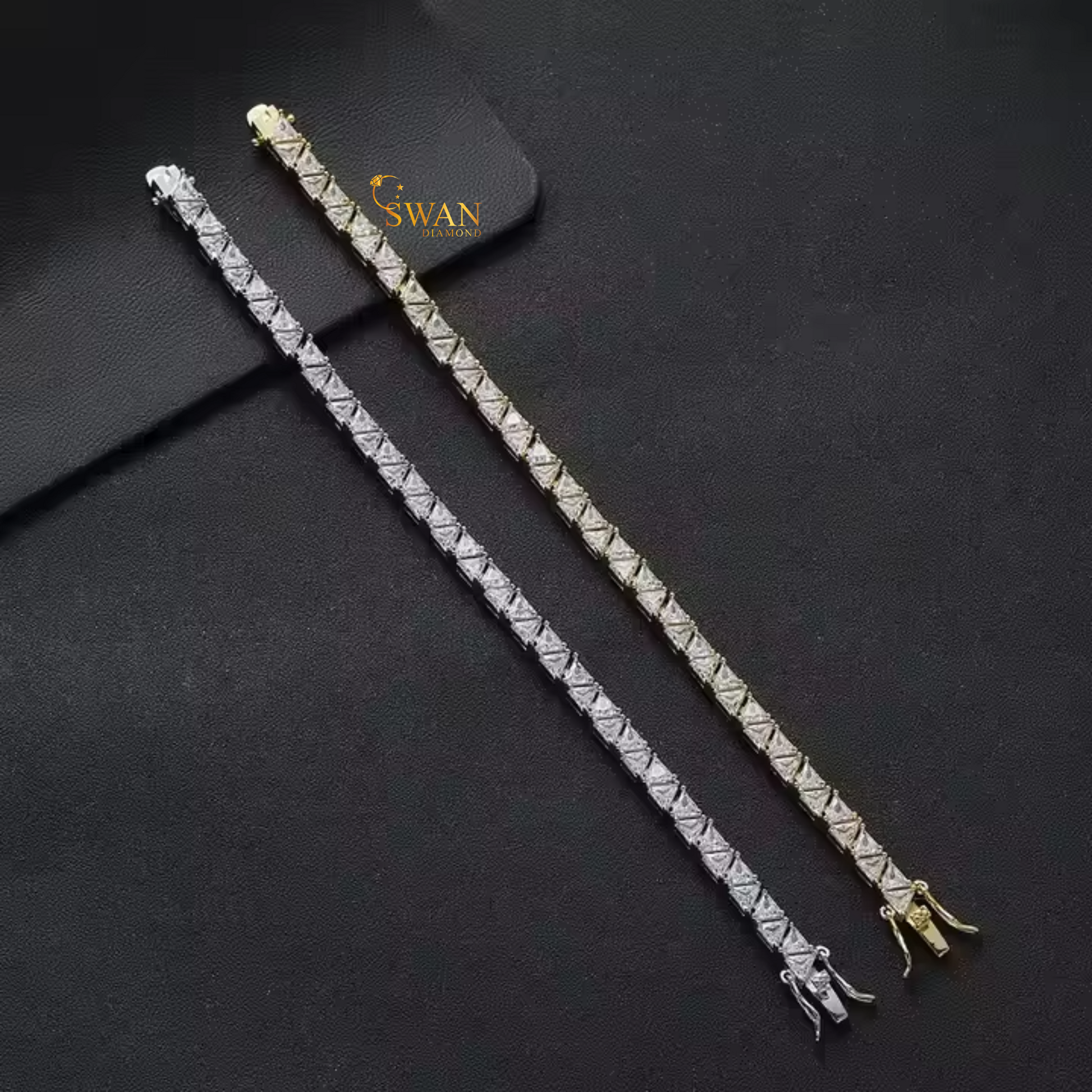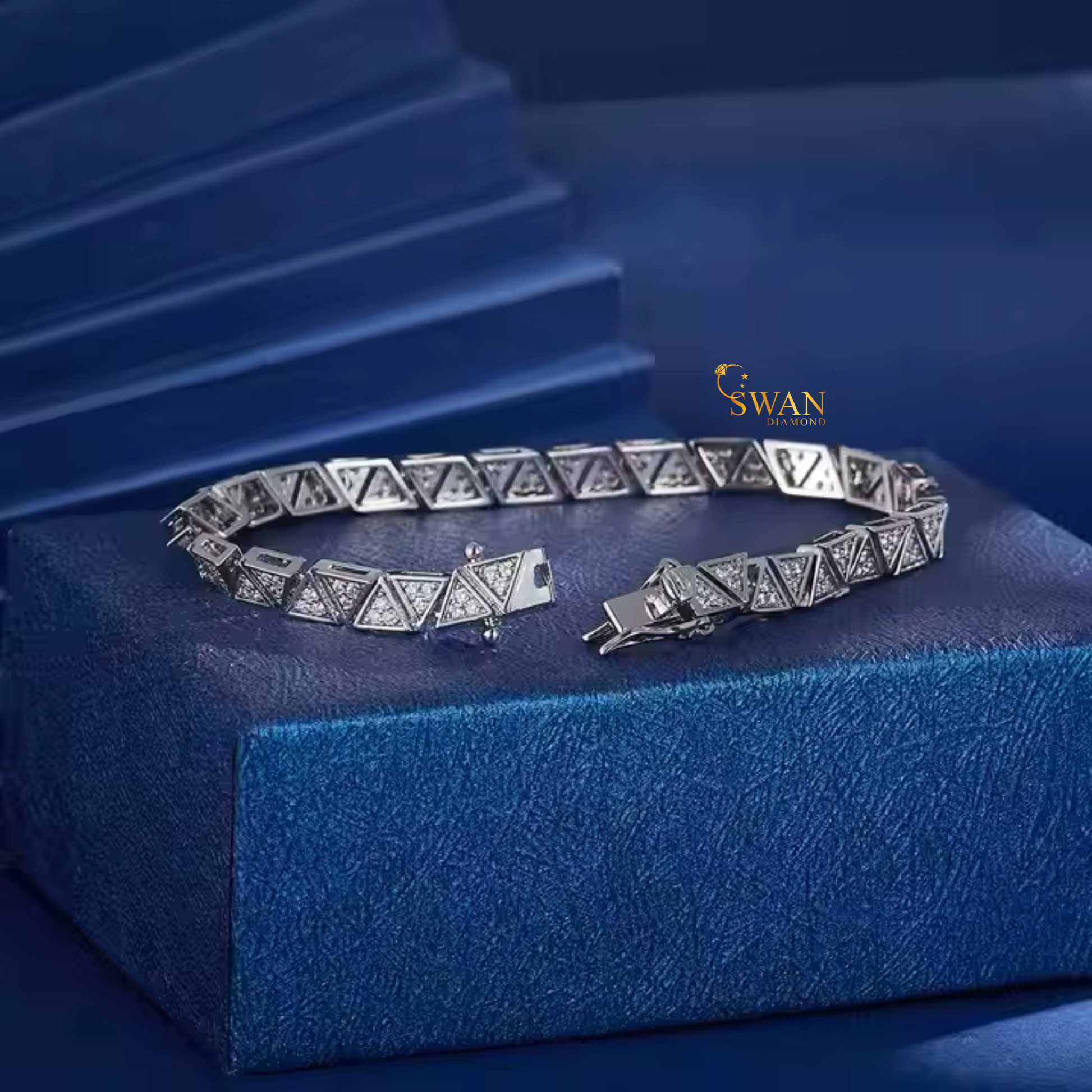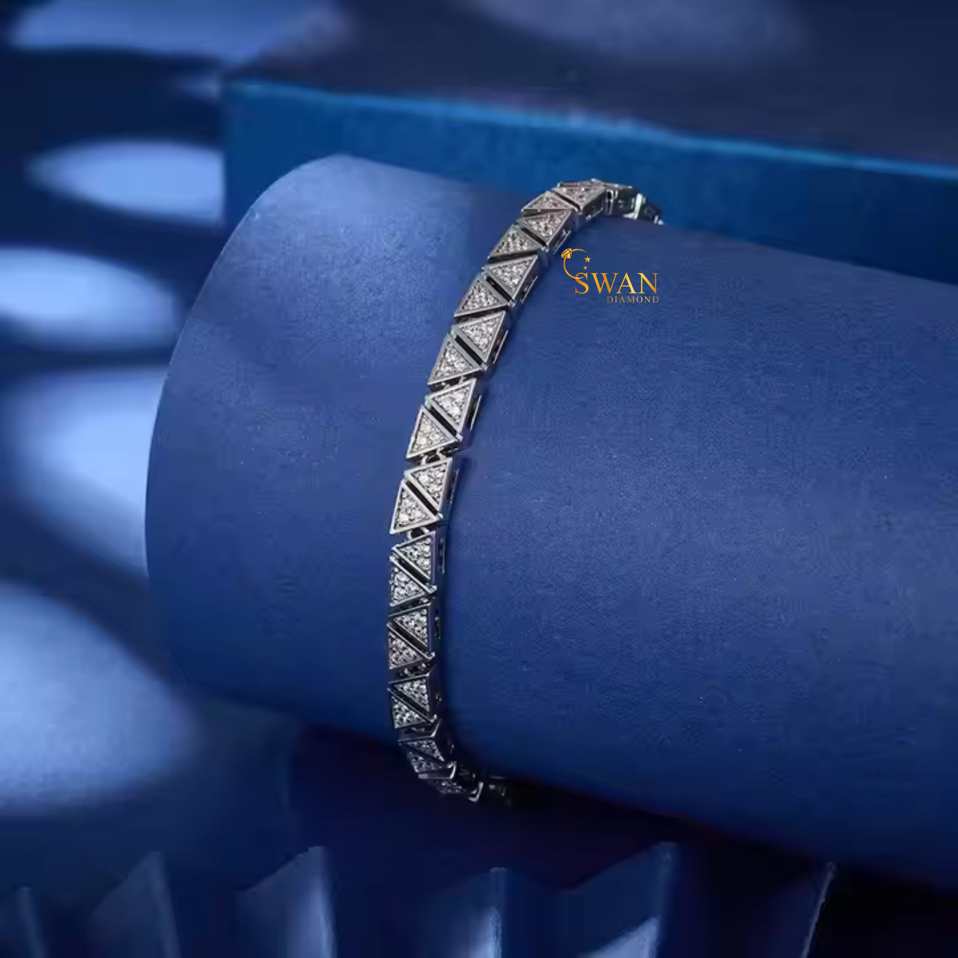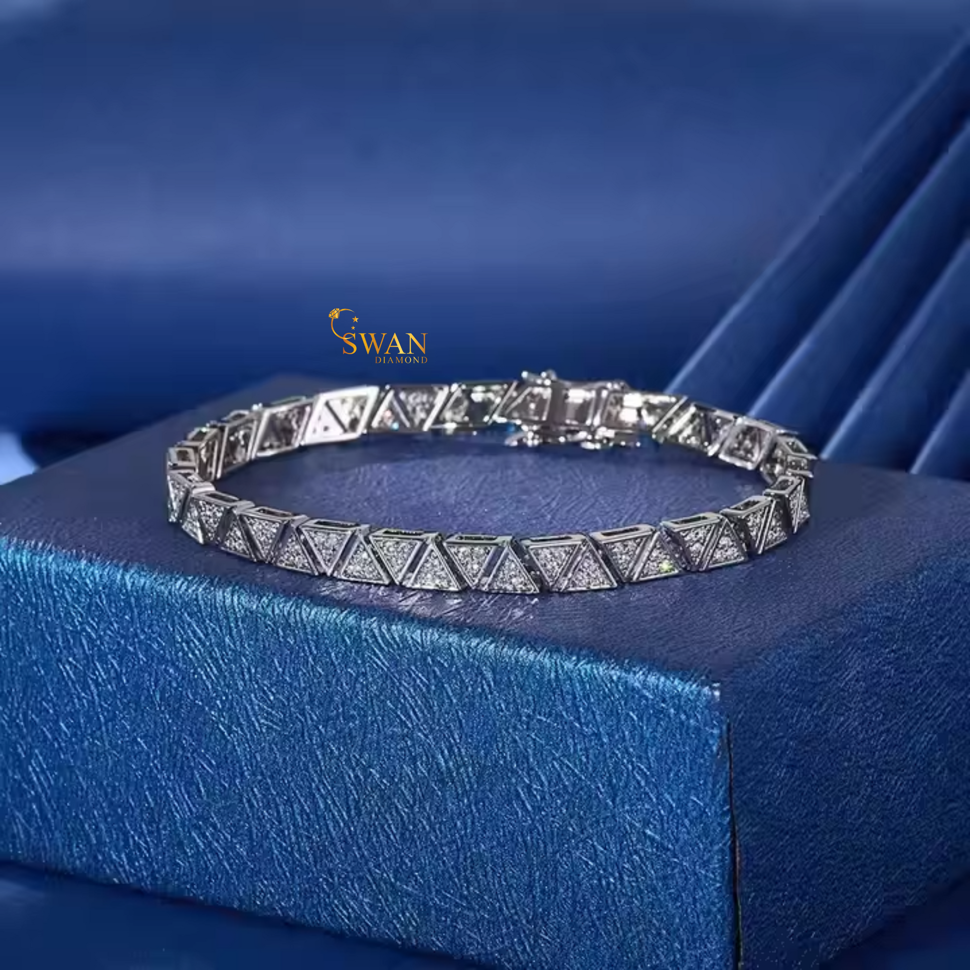 Geometric Triangle Diamond Tennis Bracelet in White Gold Modern Sparkling Natural Diamond Jewelry Unique Luxury Gift for Her swandiamond