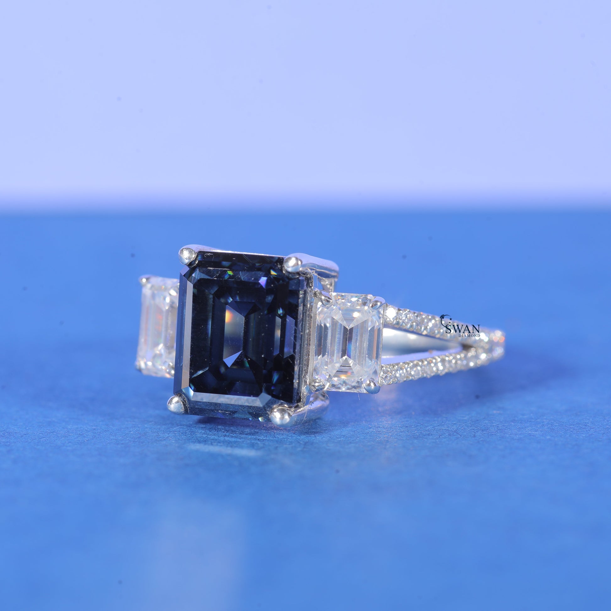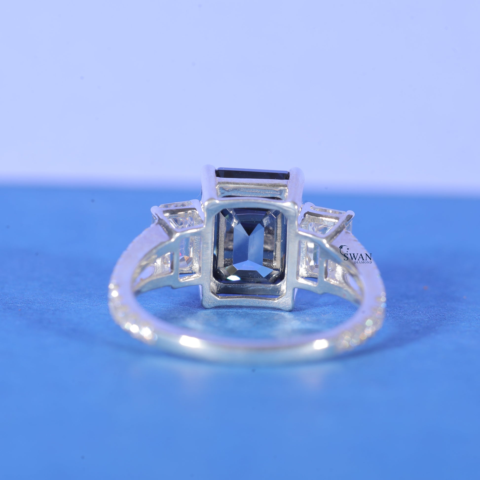 2CT Emerald Cut Blue Color Lab Grown Diamond Engagement Ring For Women