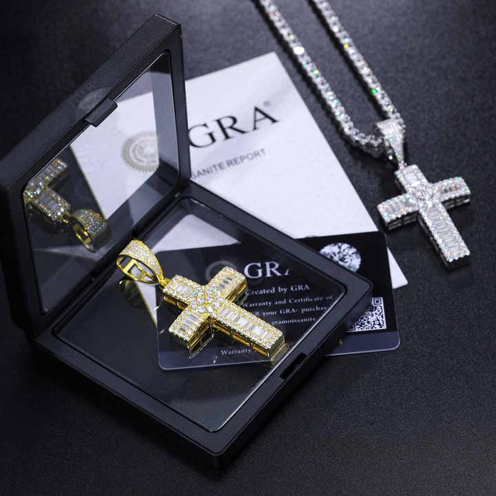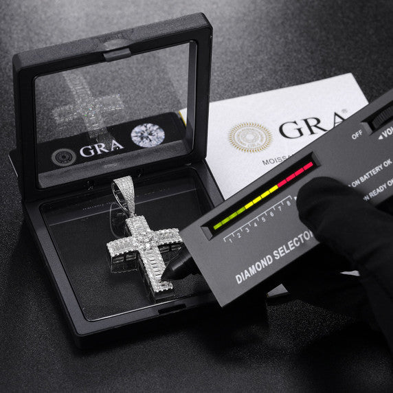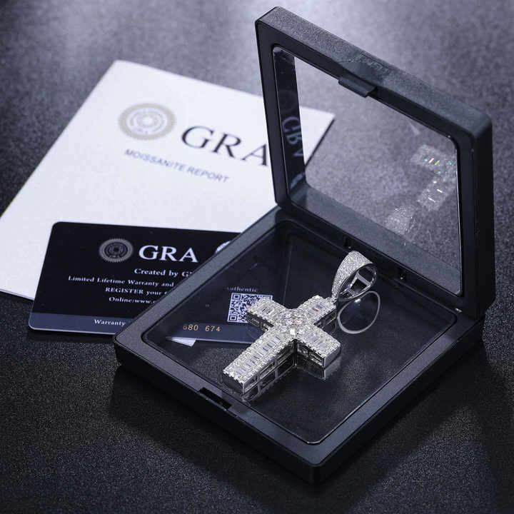 925 Sterling Silver Iced Out Moissanite Cross Pendant
