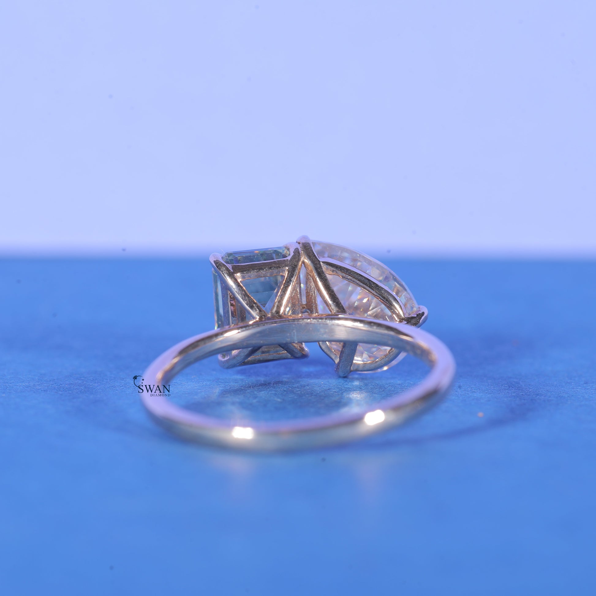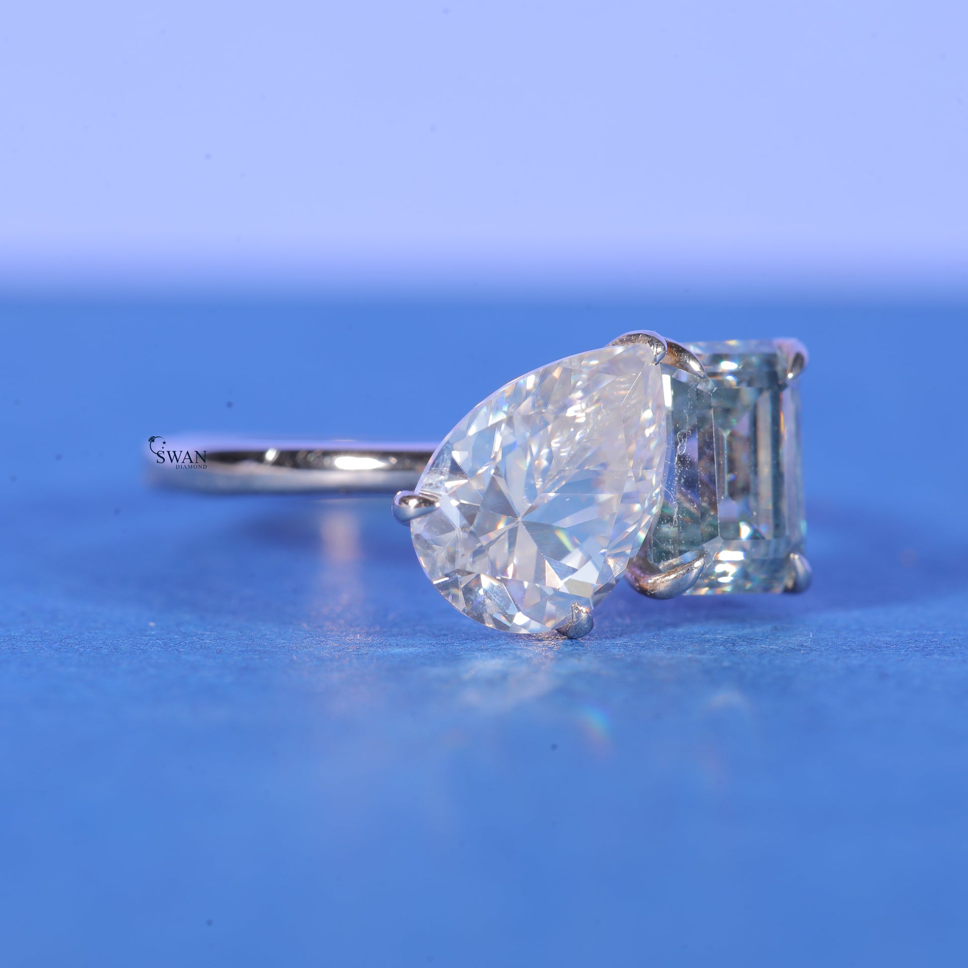 Emerald And Pear Cut Lab Grown VVS1 Diamond Engagement Rings