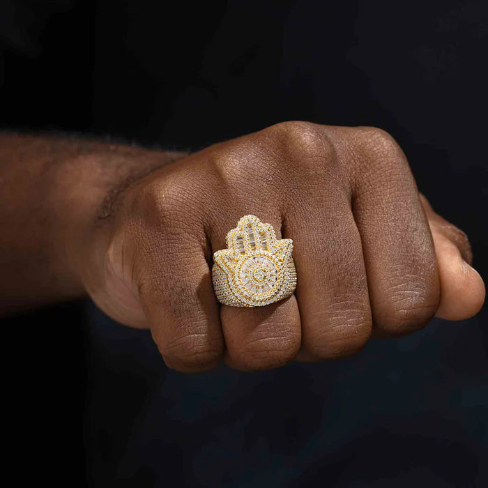 Fancy Hamsa Hand Men Rings 925 Silver Fully Iced Out Hip Hop Pass Diamond Tester Buss Down VVS Lab Grown Ring