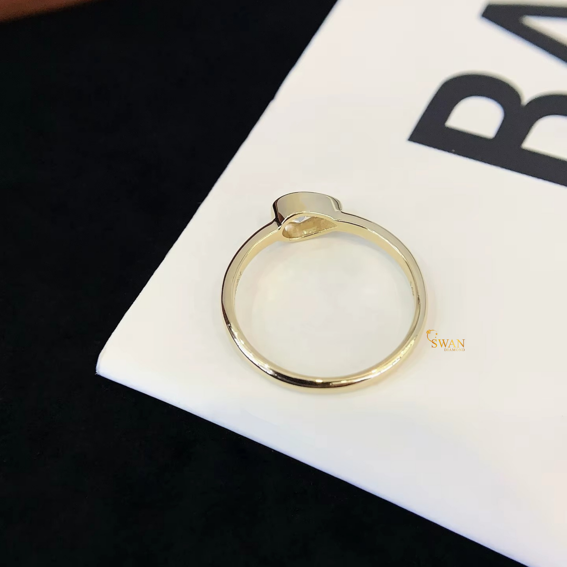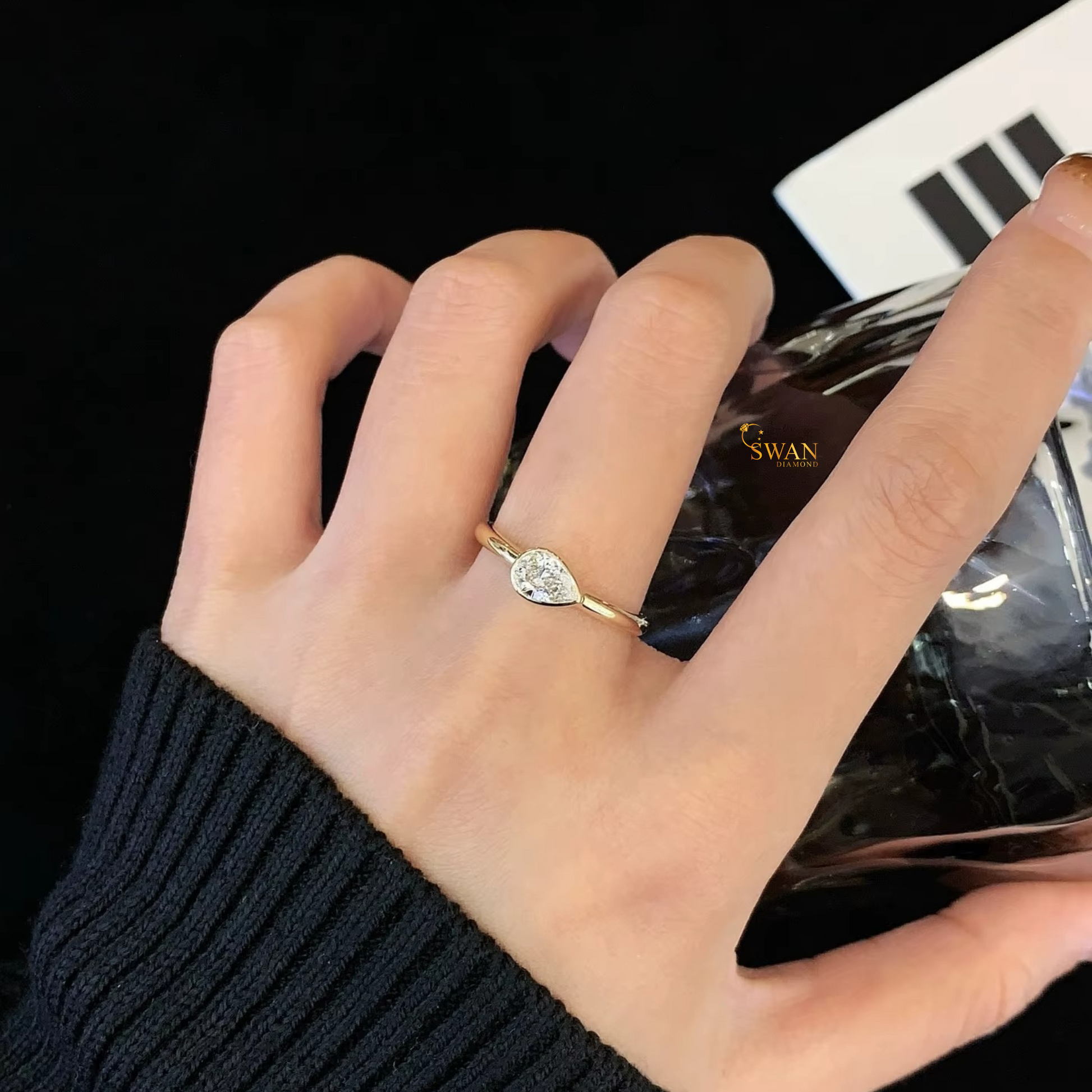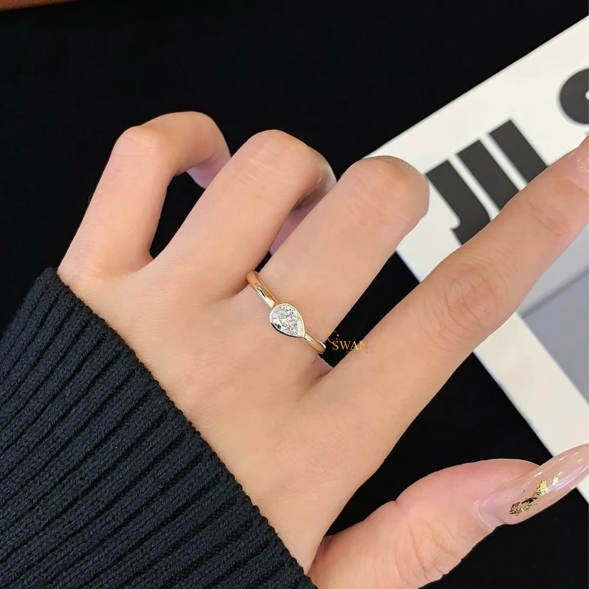 925 Silver Pear Cut Diamond Engagement Ring in Gold Plated Bezel Set Solitaire Modern Minimalist Jewelry Gift for Her swandiamond