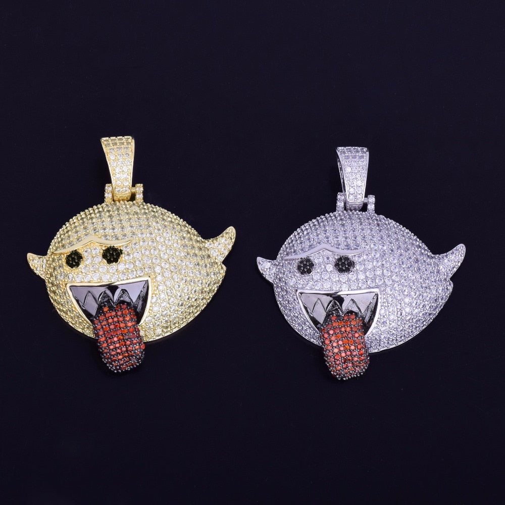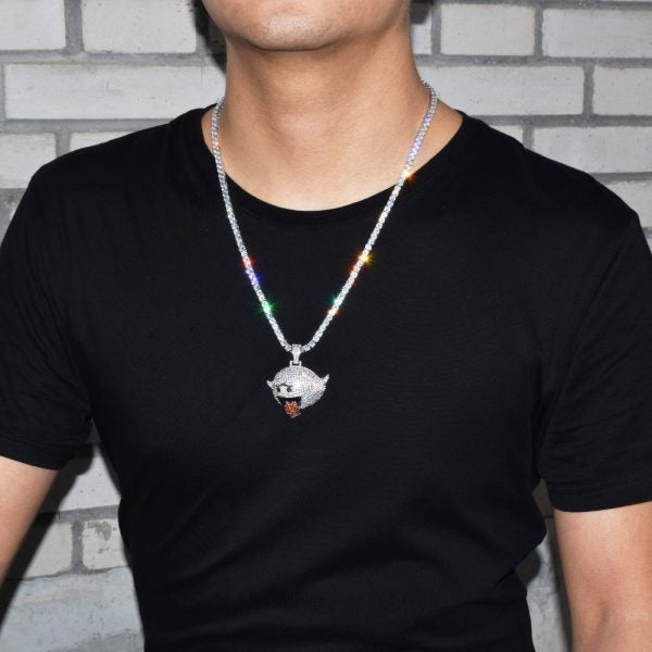 S925 Sterling Silver Moissanite Diamonds Iced Out Naughty Ghost Pendant Necklace