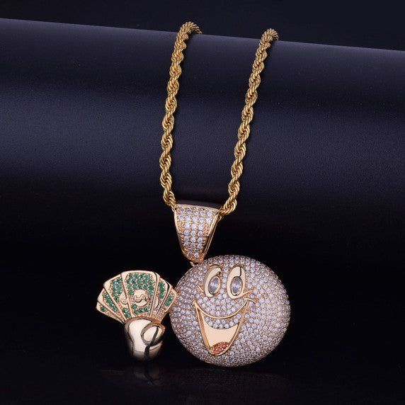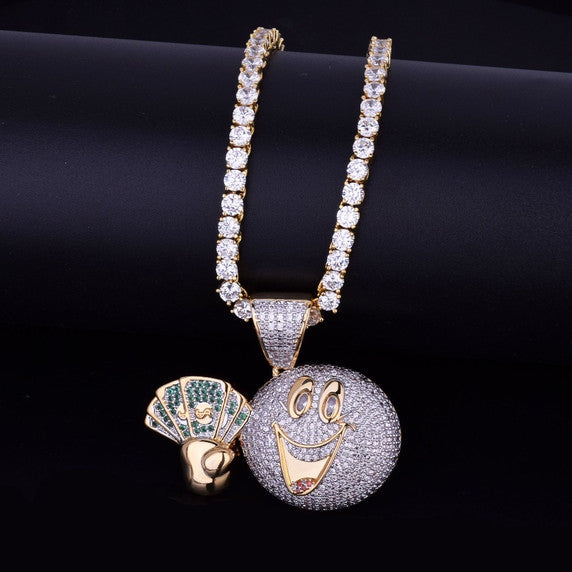 Smiling Hip Hop Cash Money Man Face Moissanite vvs Diamonds Pendant Chain Necklace
