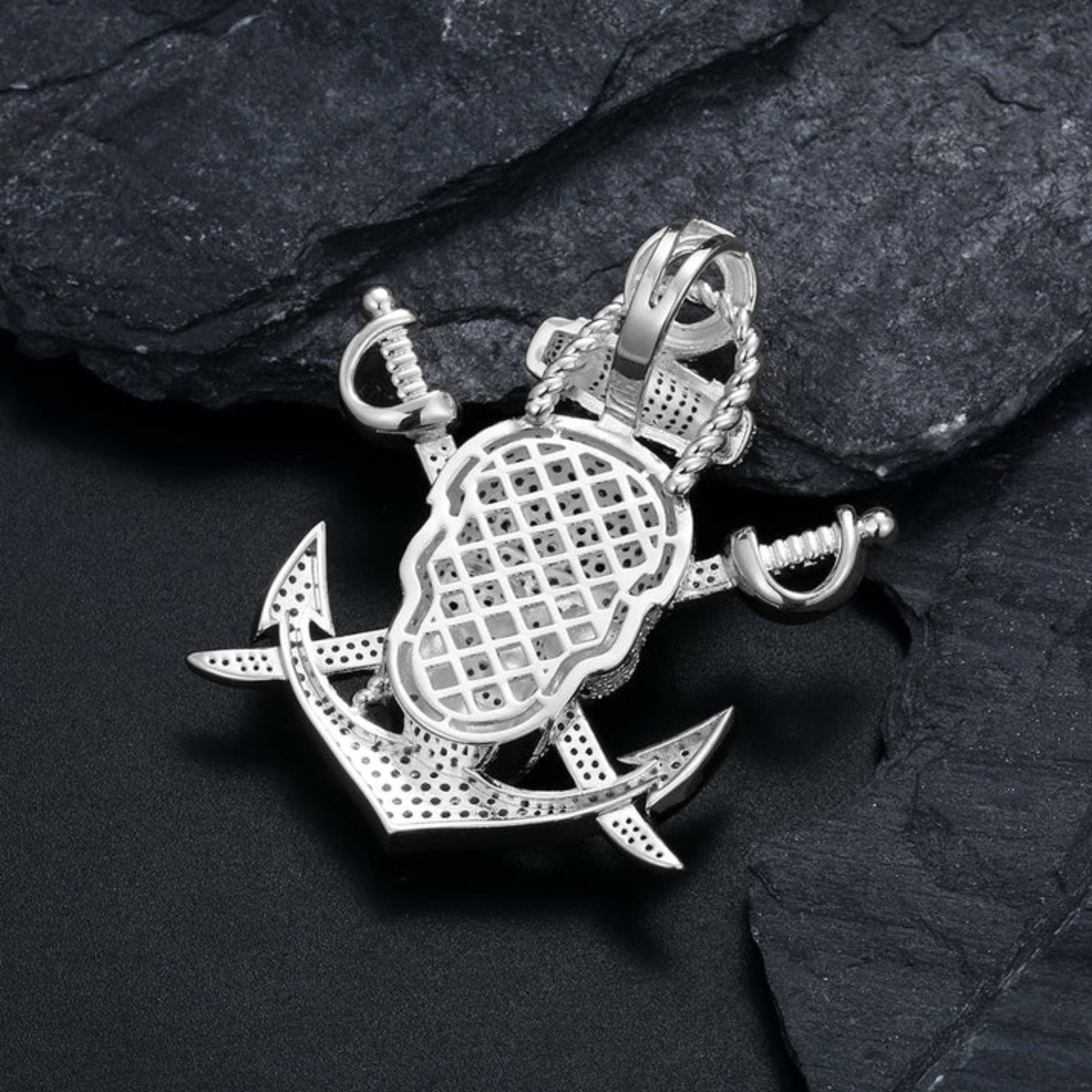 Vintage Skull Pendant Necklace for Halloween Party in 925 Sterling Silver Moissanite Diamond