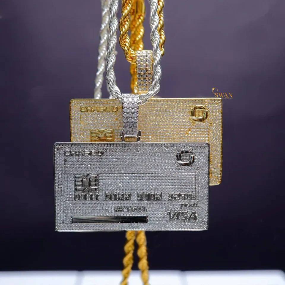 Visa Credit Card Hip Hop Pendant Fully Bust down In 925 Sterling Silver And Round Brilliant Cut Moissanite Diamonds